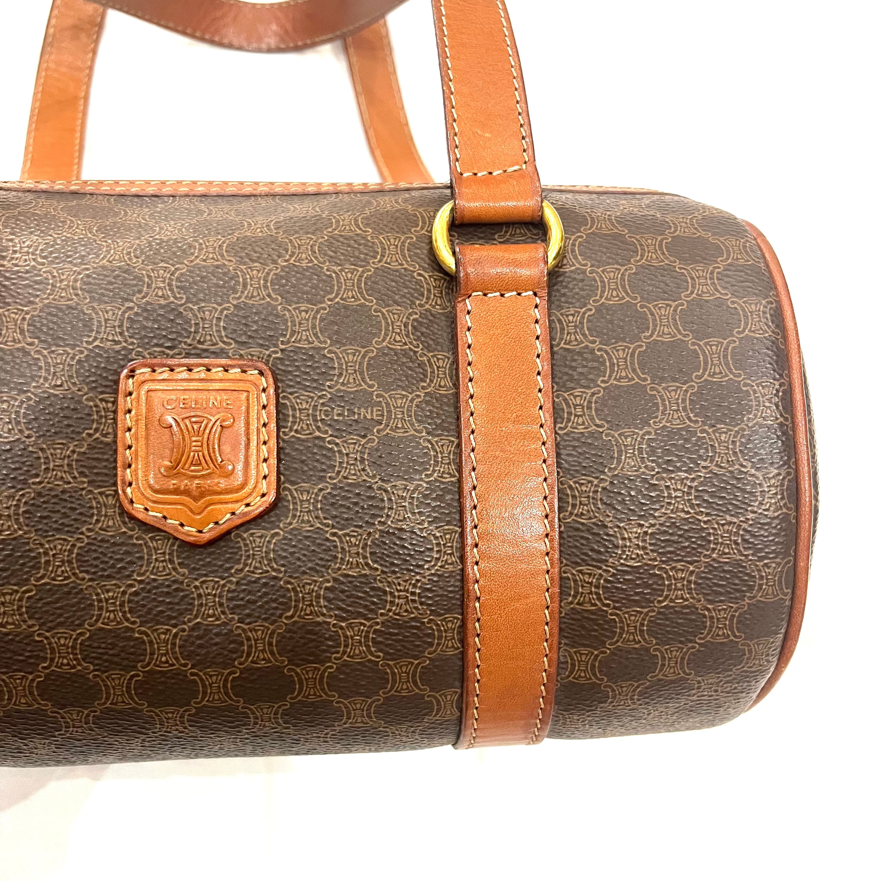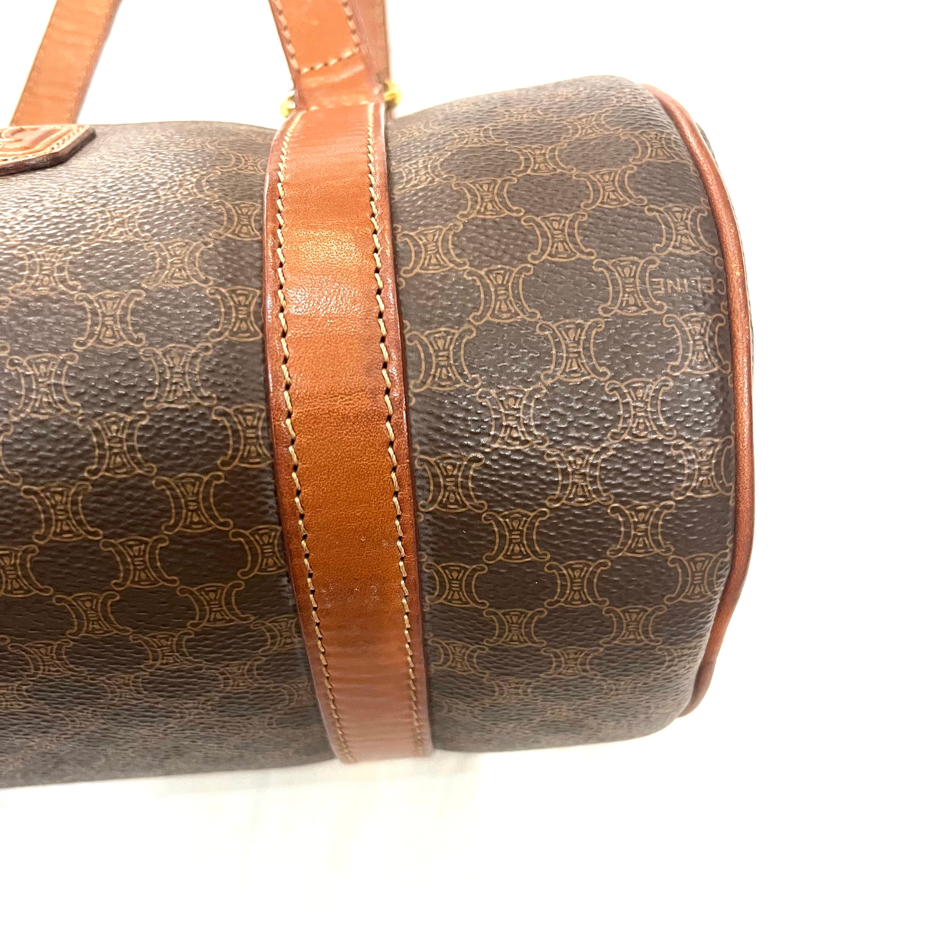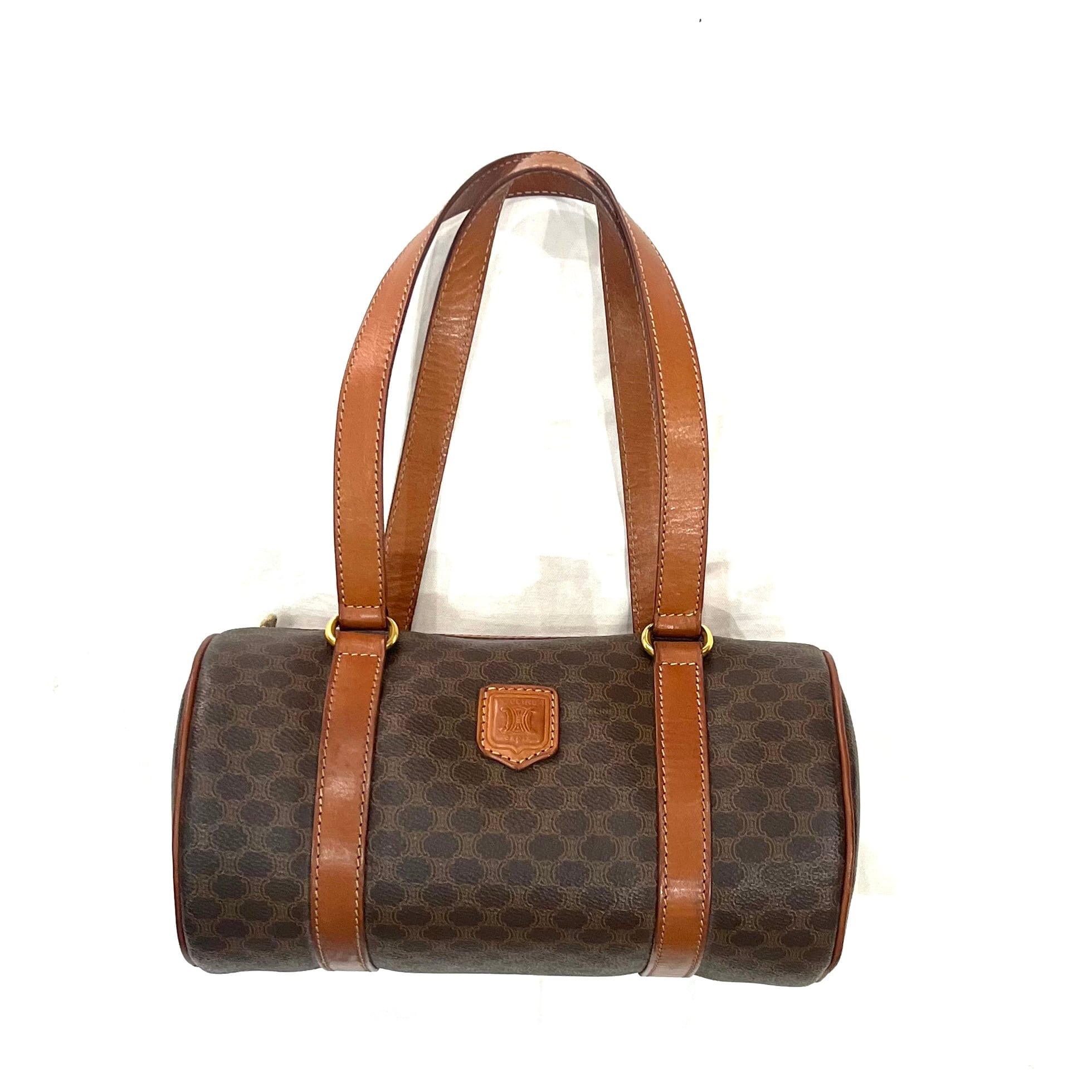 【CELINE】マカダム ドラムバッグ/ブラウン/秋バッグ/秋ファッションに映えるクラシックヴィンテージ/セリーヌ ハンドバッグ