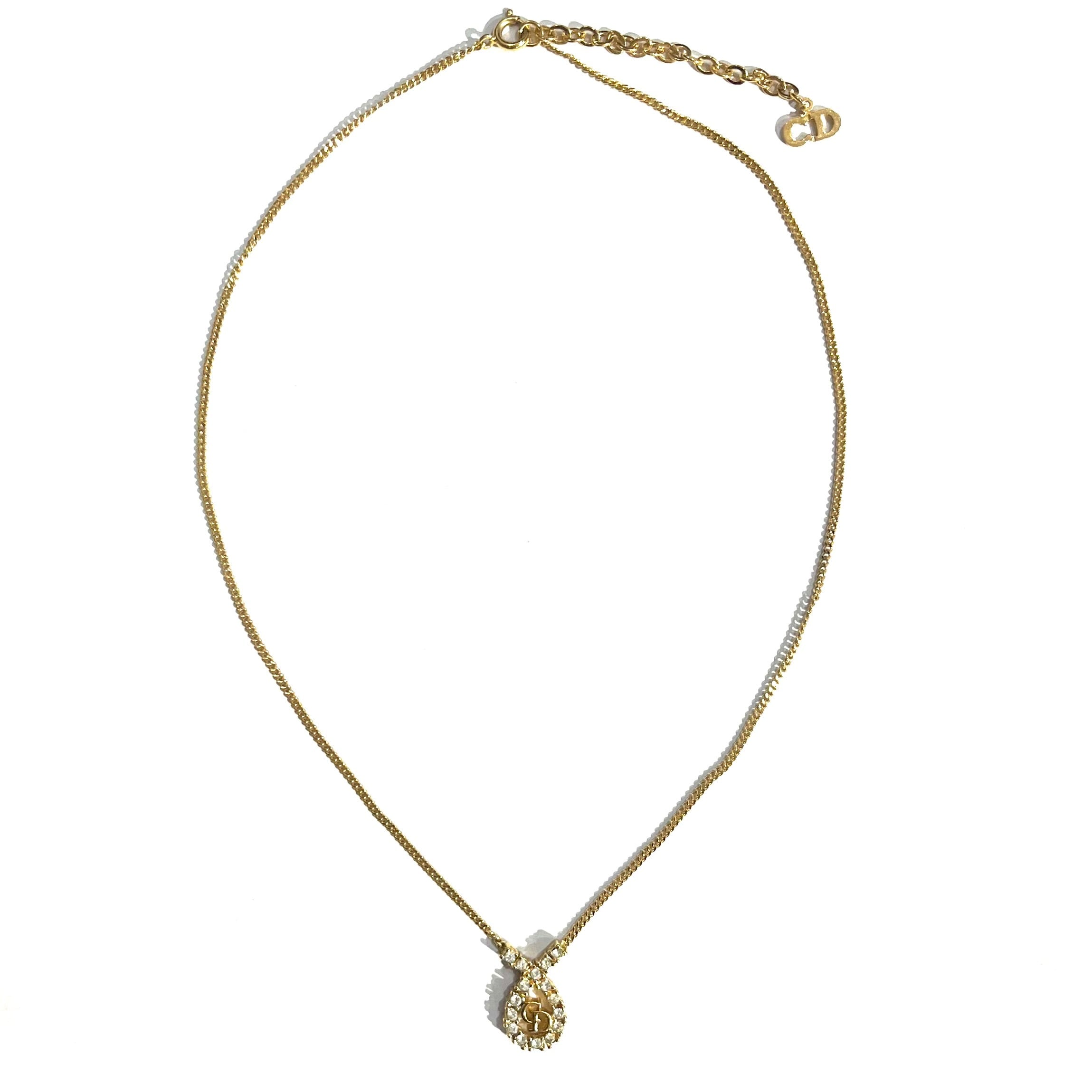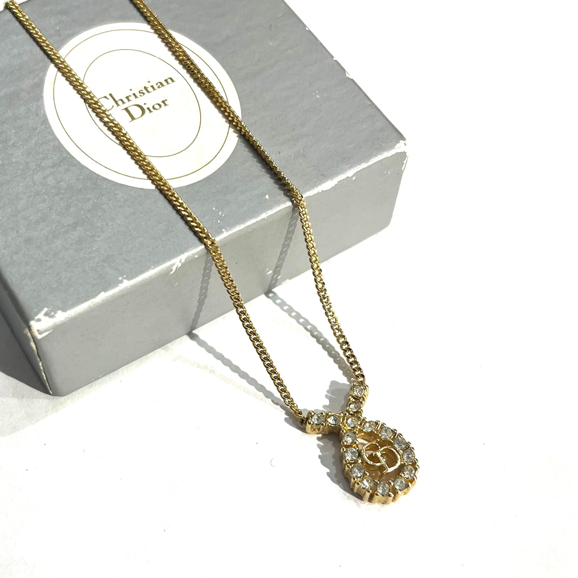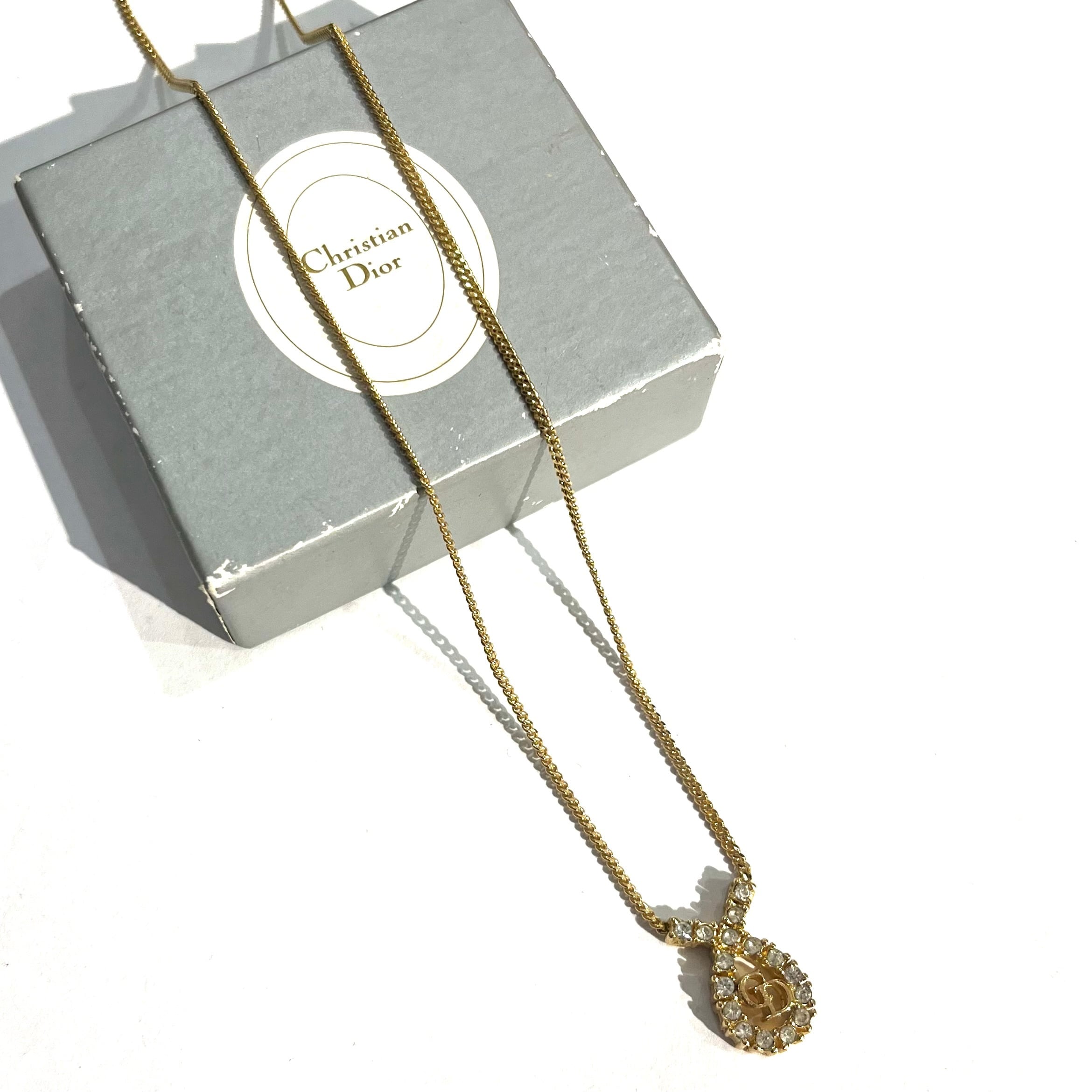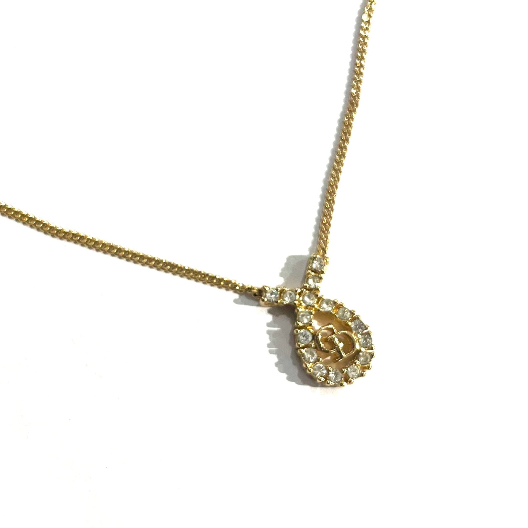 【Christian Dior】1708 DIOR vintege CDロゴストーンネックレスクリスチャンディオール ヴィンテージ アンティーク アクセサリーリボン ストーン結婚式クラシカル