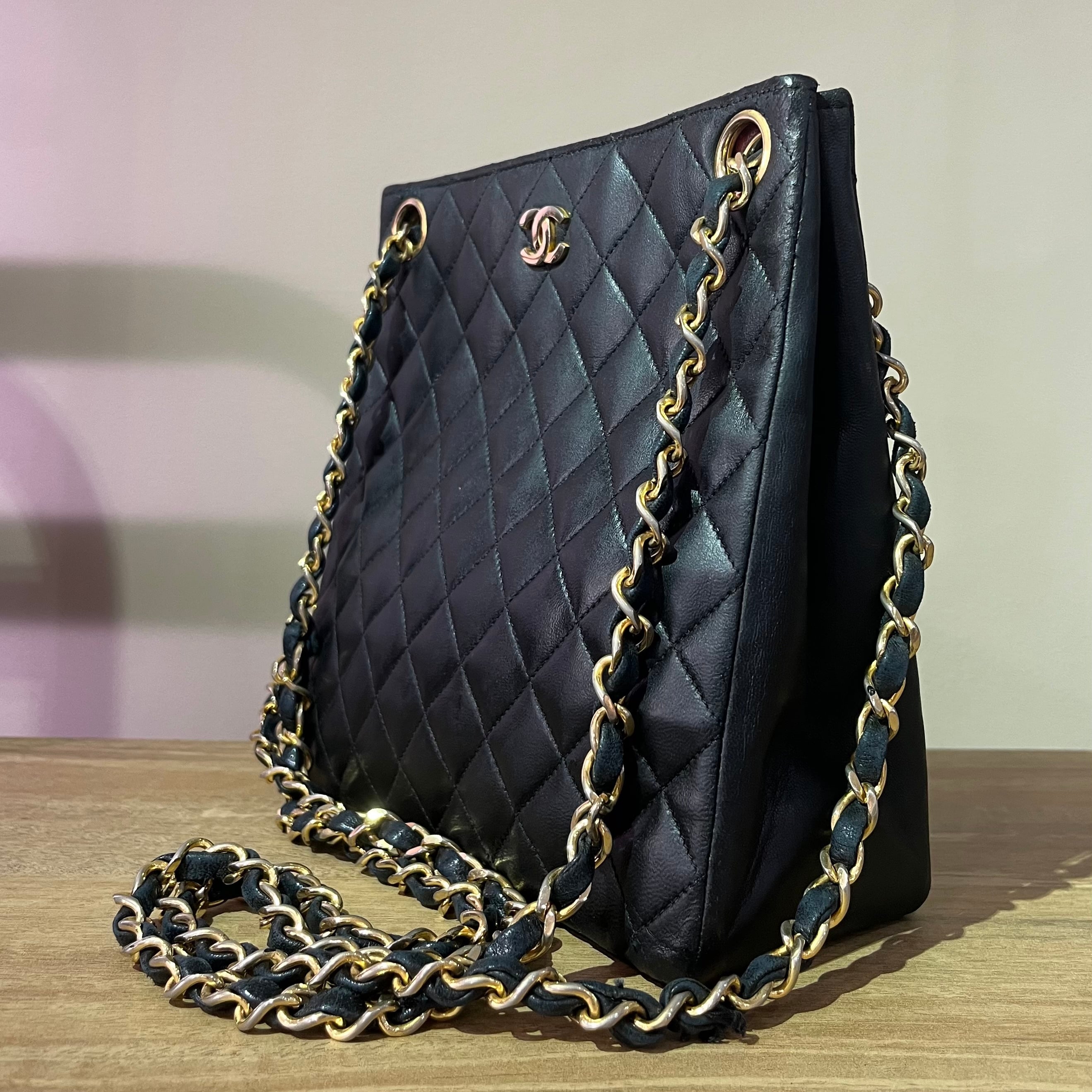 1929【CHANEL】ヴィンテージシャネル マトラッセ ラムスキン ショルダーバッグ ブラック/ゴールド金具/Wチェーン/ヴィンテージ シャネル/秋冬ファッションに映える上品ブラックバッグ