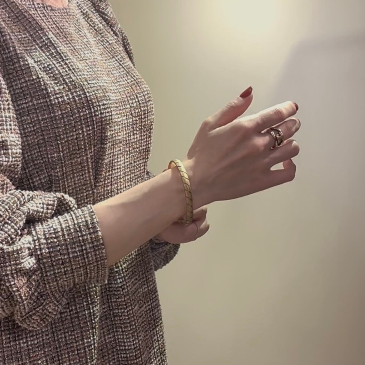 ・他のバングルや時計との重ねづけにも映える万能デザイン