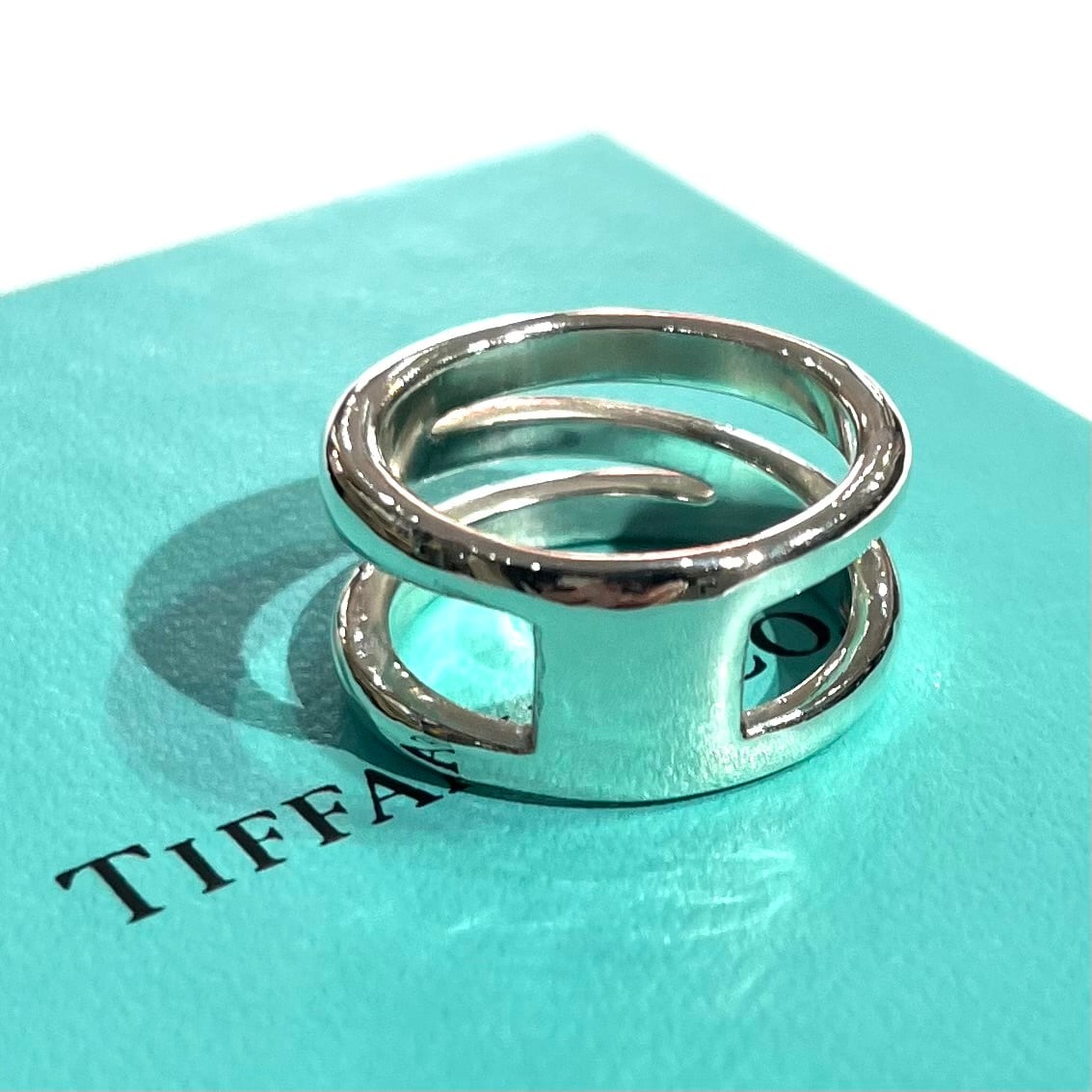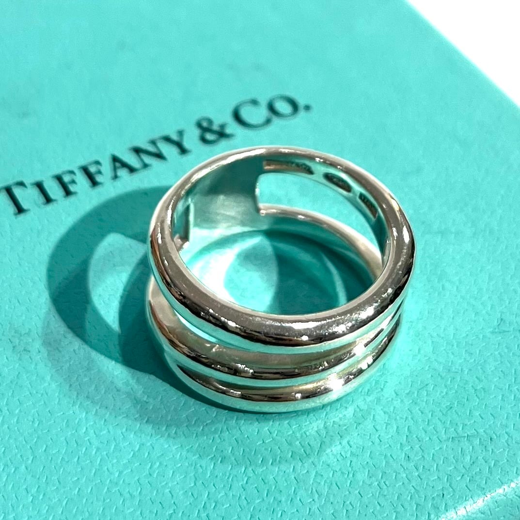 【TIFFANY&CO】1964 シルバー925デザインリング/15.5号/シルバー925/Wフェイスデザイン/幅1cm/ヴィンテージ ティファニー リングメンズリング指輪