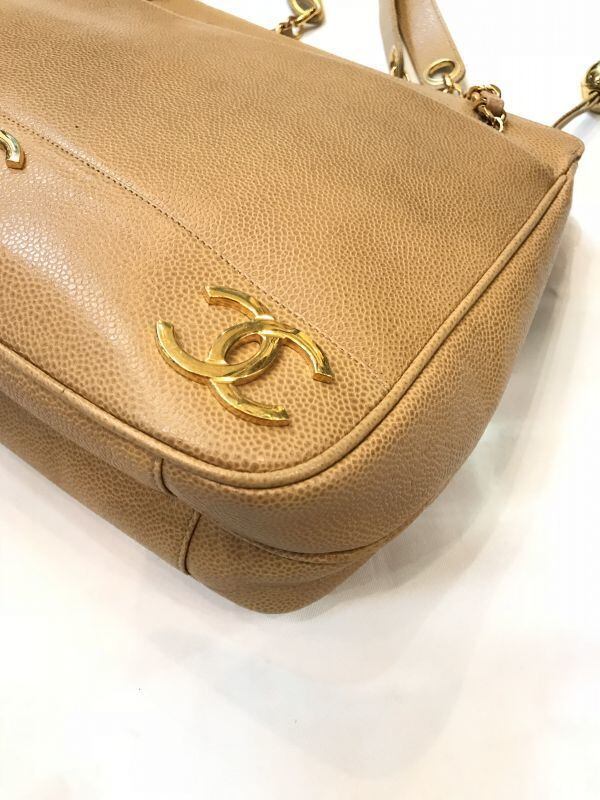 CHANEL トリプルココマーク キャビアスキン チェーン トートバッグ