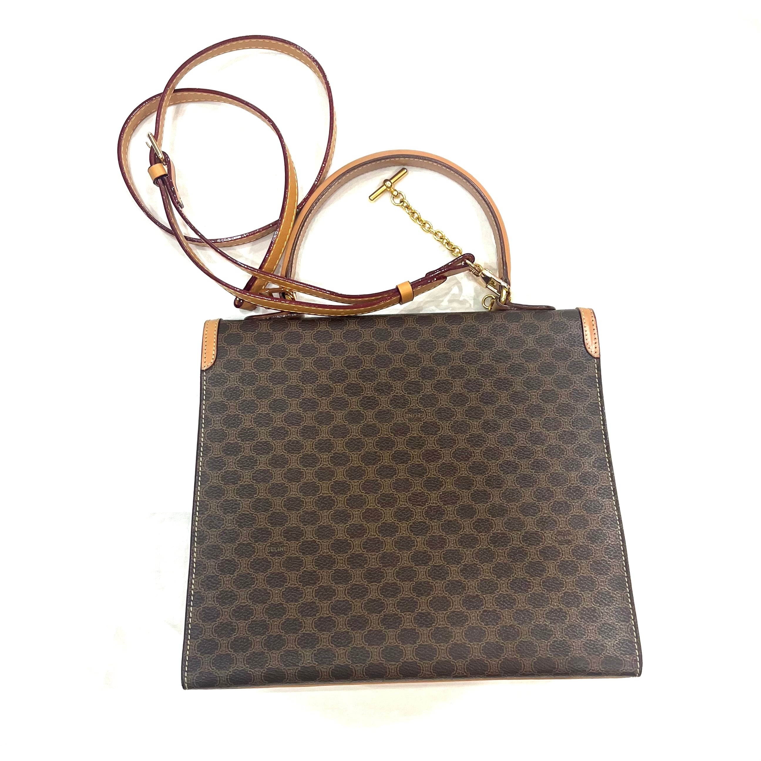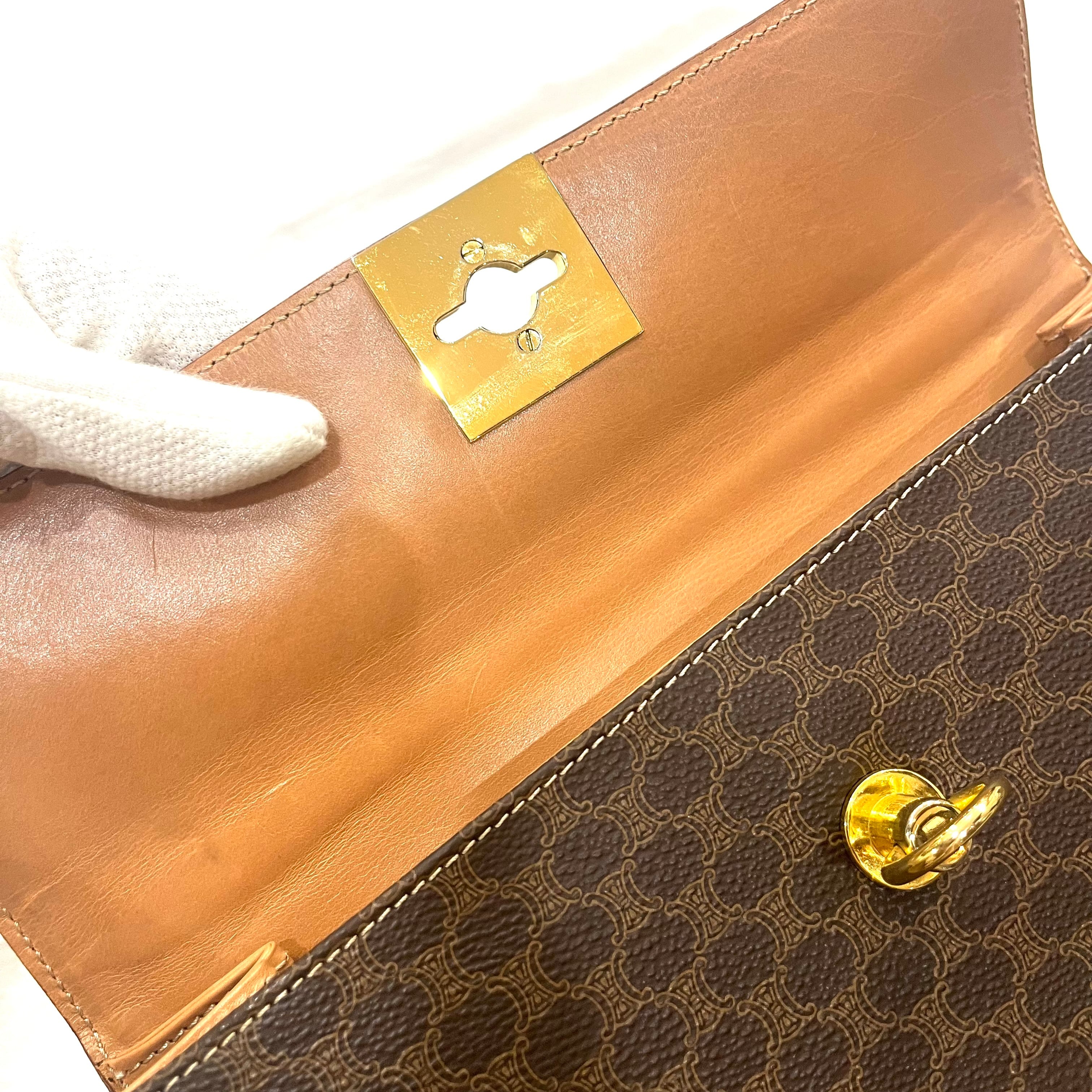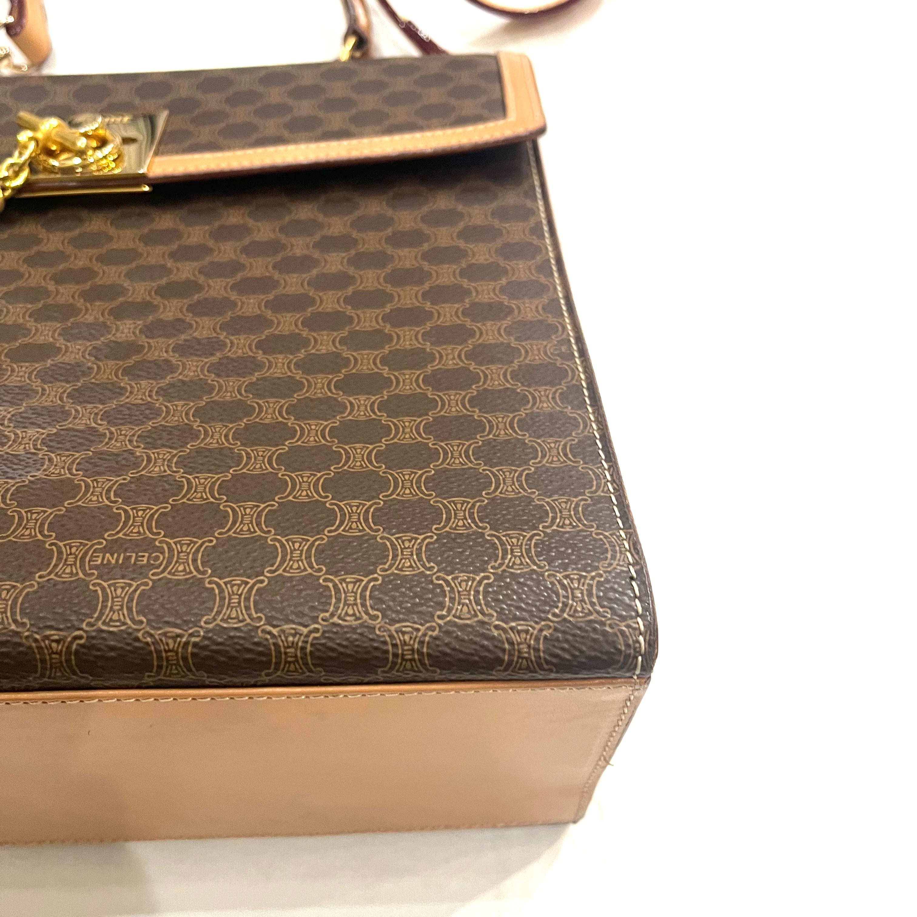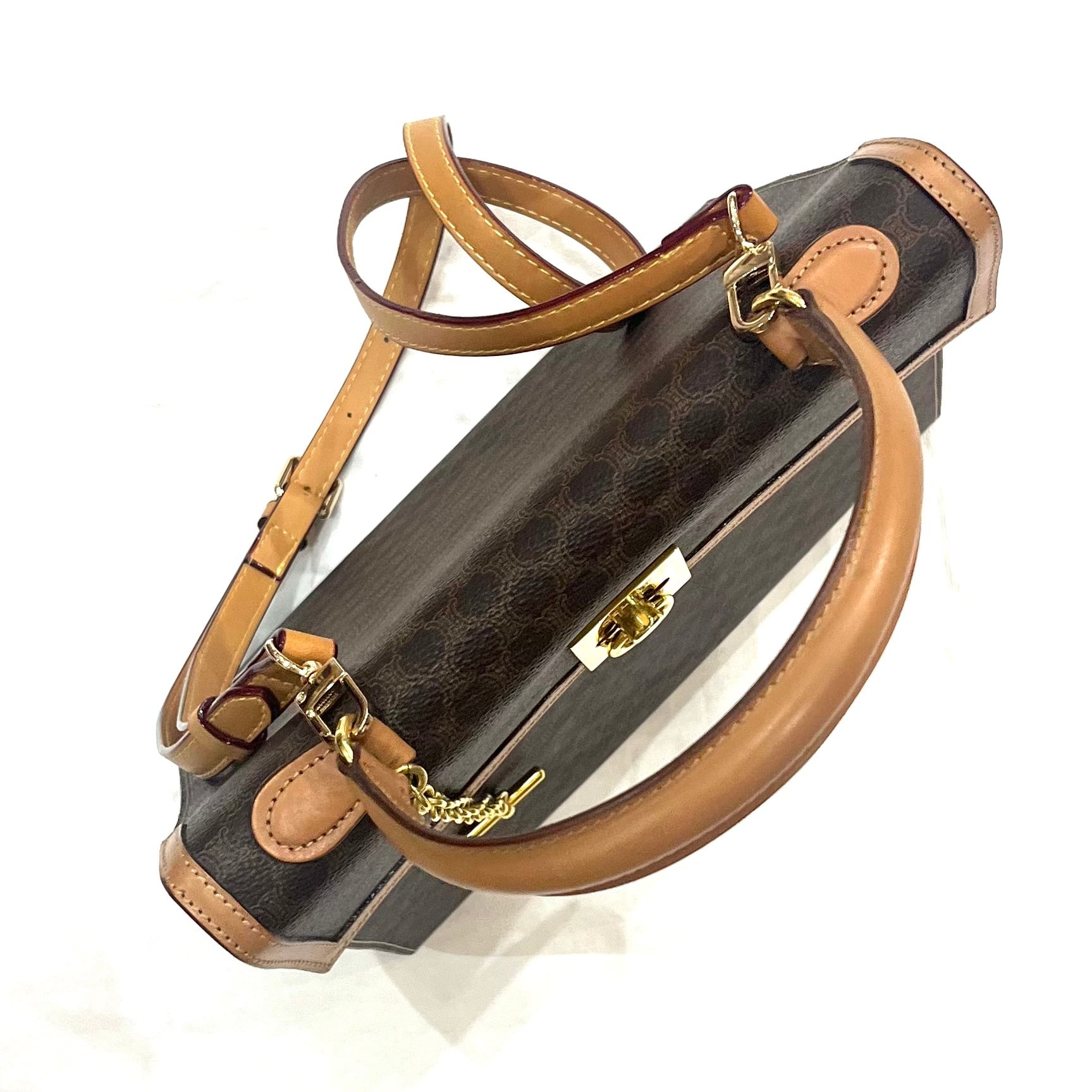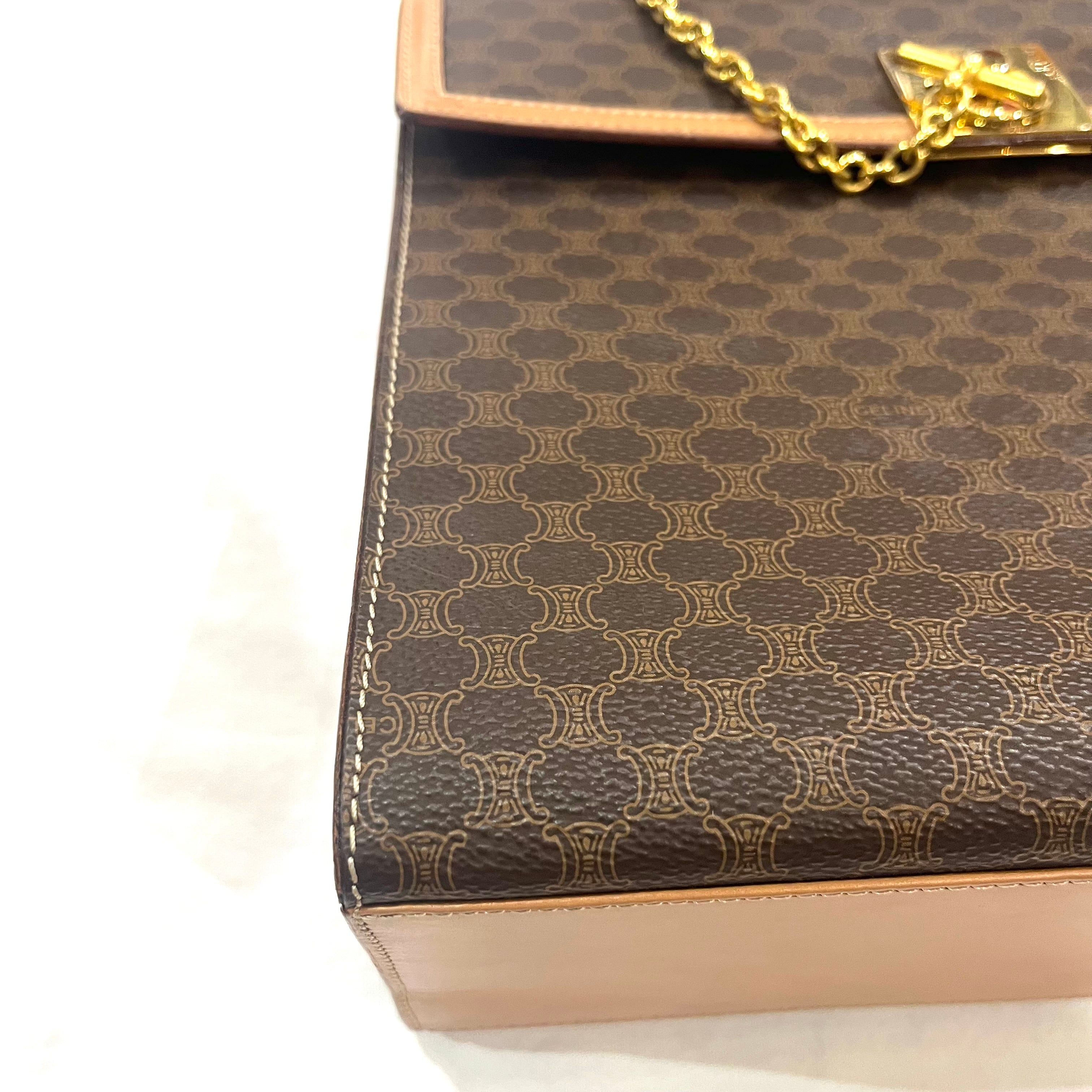 VINTAGE 【CELINE 】マカダム2wayチェーン金具モチーフトリオンフレザーバッグモチーフ ショルダーバッグ セリーヌ tote チェーンバッグ アンティーク ハンドバッグ 軽量 ハイブランド