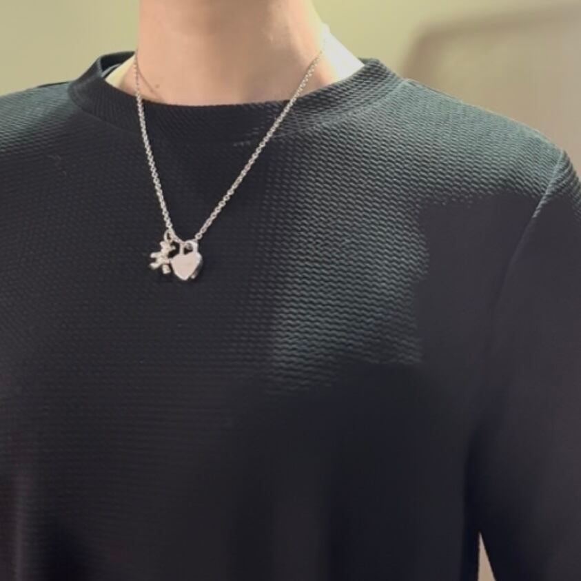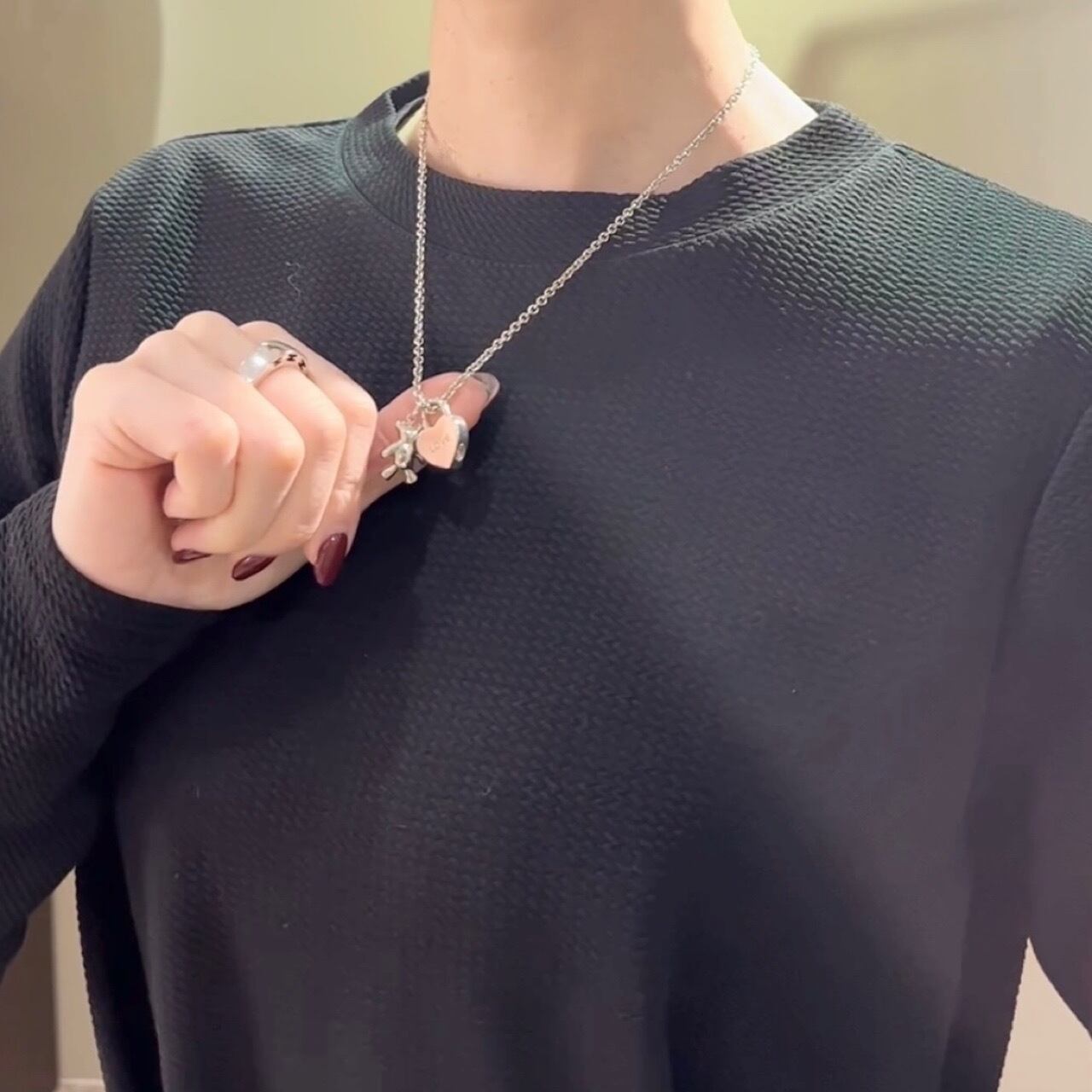 可愛らしいモチーフでありながら、シンプルなシルバーチェーンと程よいサイズ感により、