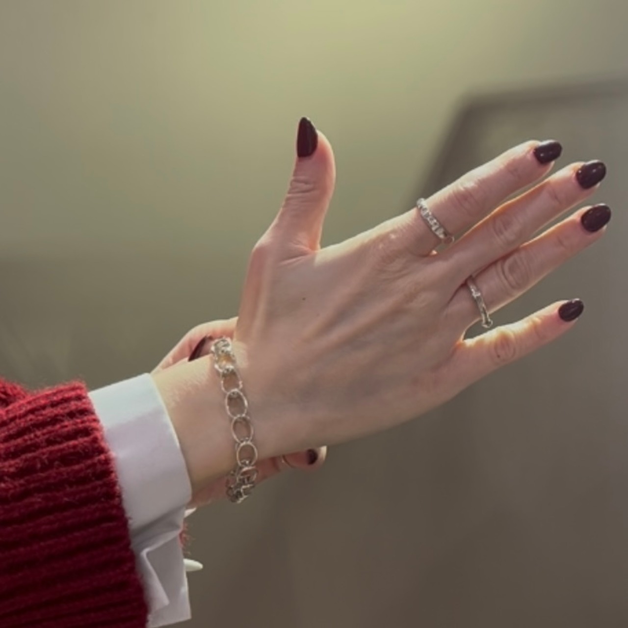 太すぎず細すぎない 0.4cm幅 のため、単体でも重ねづけでもバランスがよく、性別を問わず着用できます。