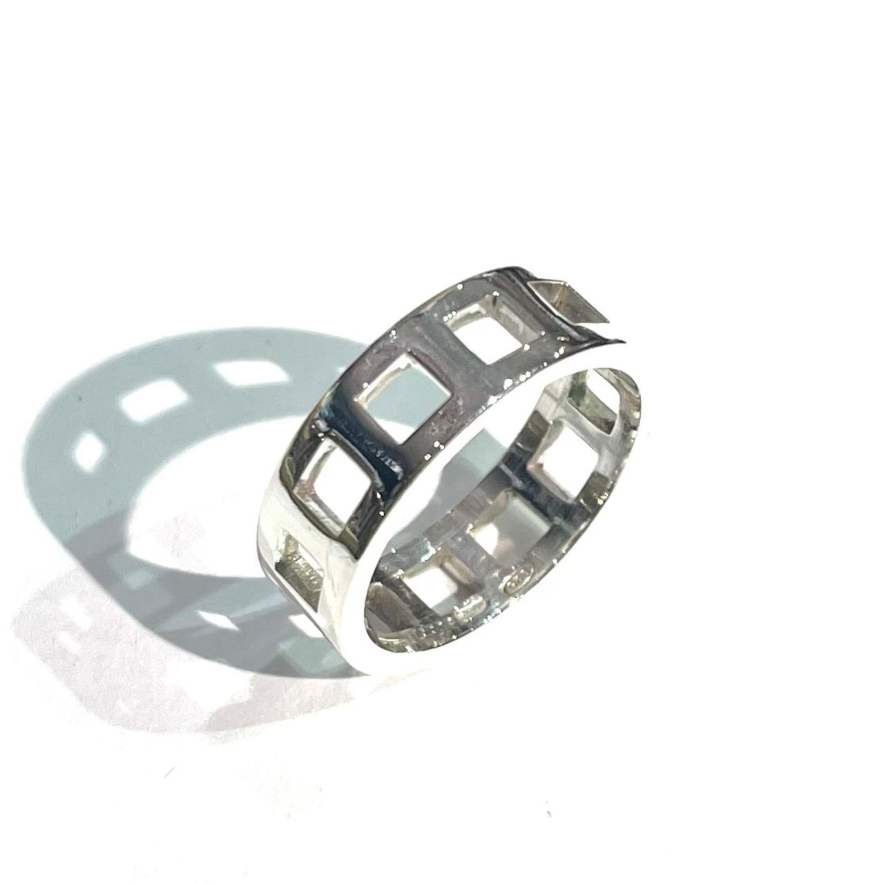 【GUCCI】グッチ オープンスクエアリング 20.5号/シルバー925/指元を美しく魅せる立体デザイン/ヴィンテージ グッチ メンズ
