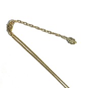 小ぶりな約1.8cmサイズながら、ゴールドカラーの艶とロゴデザインにより、首元を程よく引き締める一本。