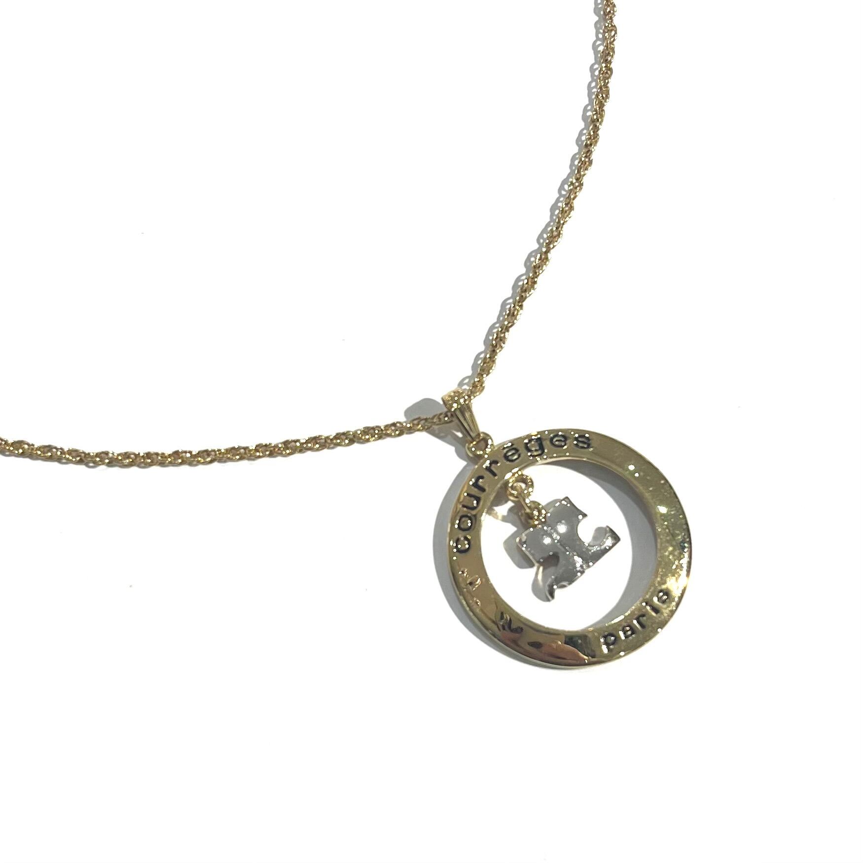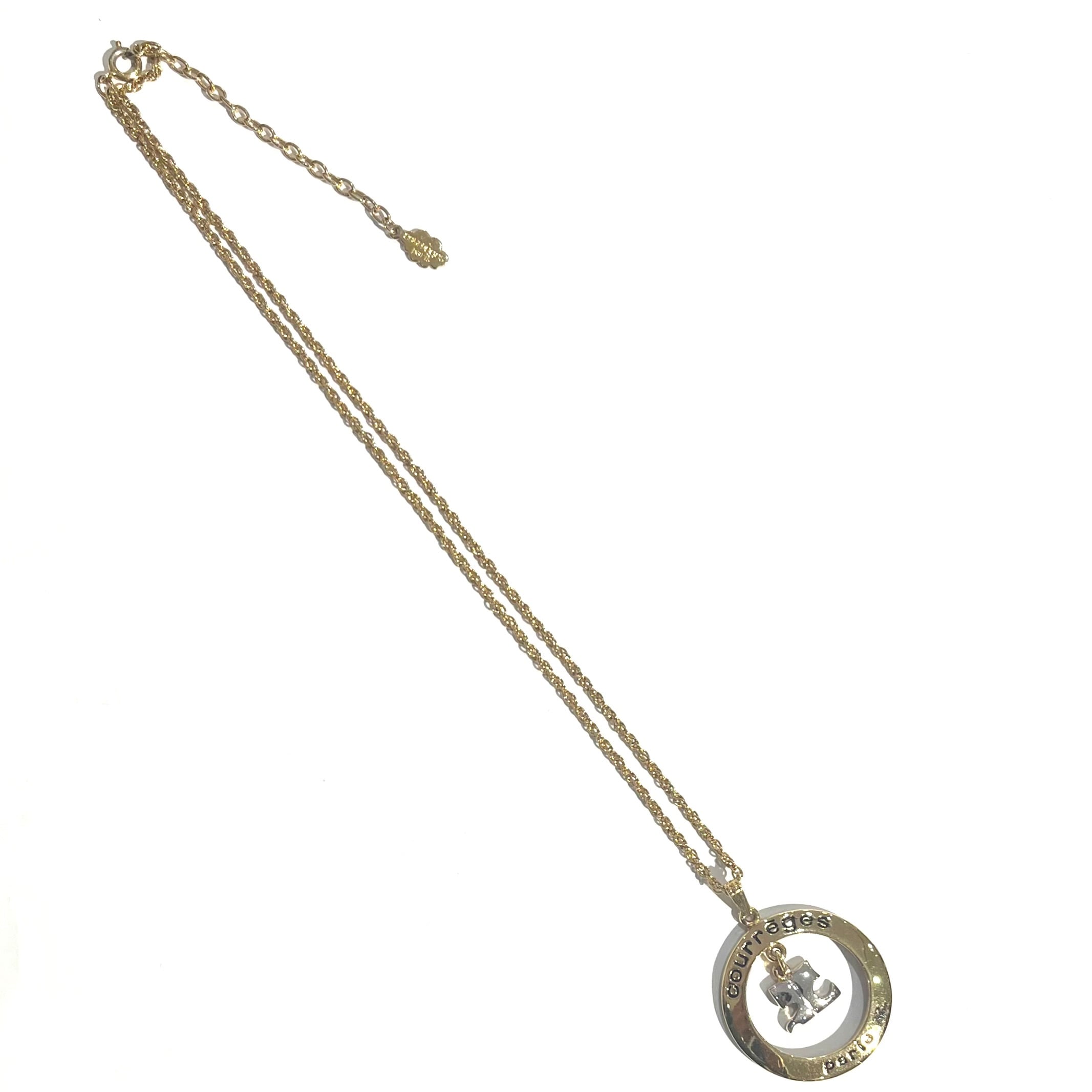 【Courreges】2073クレージュバイカラー スイングネックレス サークルロゴモチーフ 38cm+5cm ゴールド×シルバー ヴィンテージネックレス 90年代アンティーク クラシック クリスマス