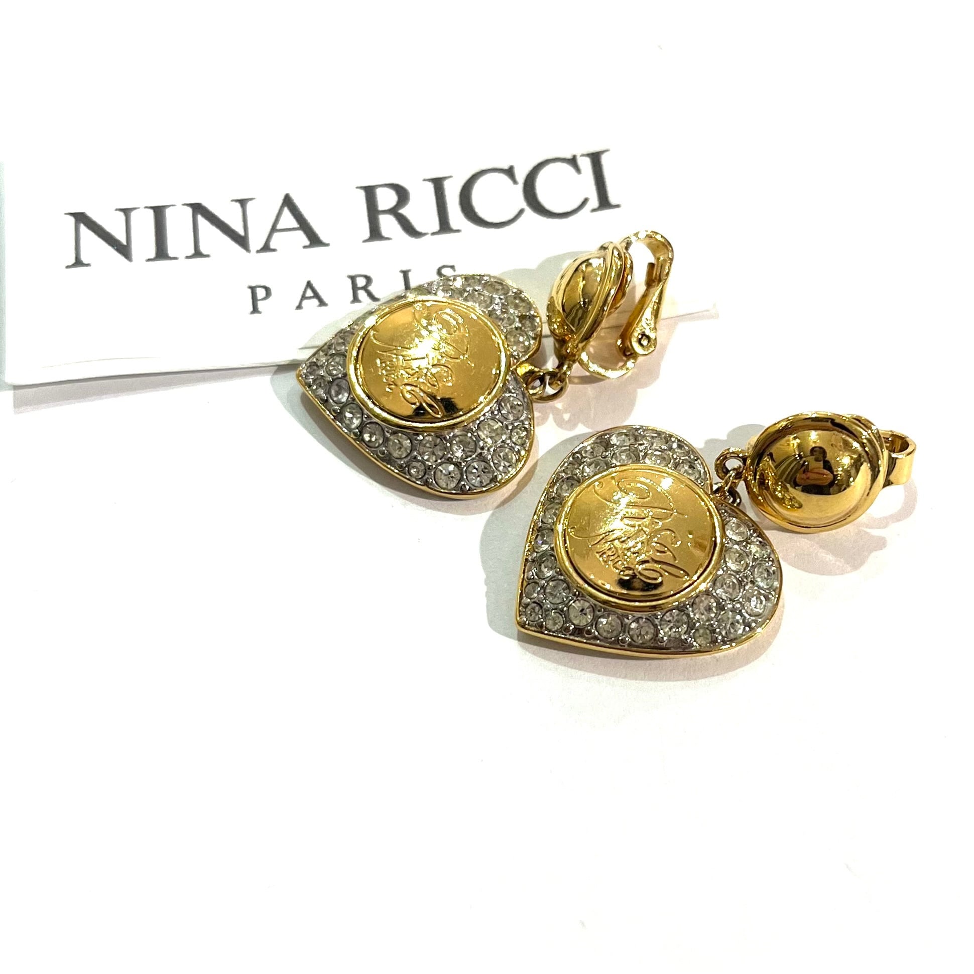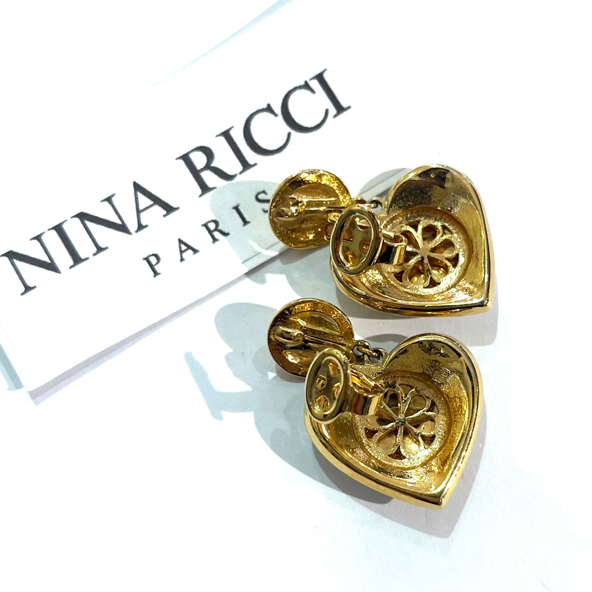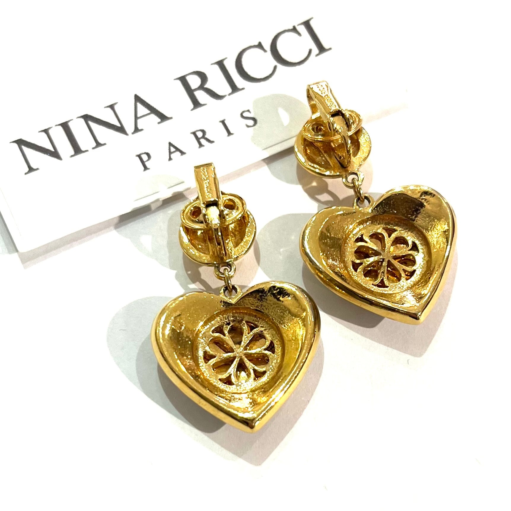 フランスの名門。【NINA RICCI 】2096 ニナリッチ ヴィンテージスイングハートイヤリング 上品デザインフランスブランド エレガント アクセサリー上質50代60代 アンティーク クラシック