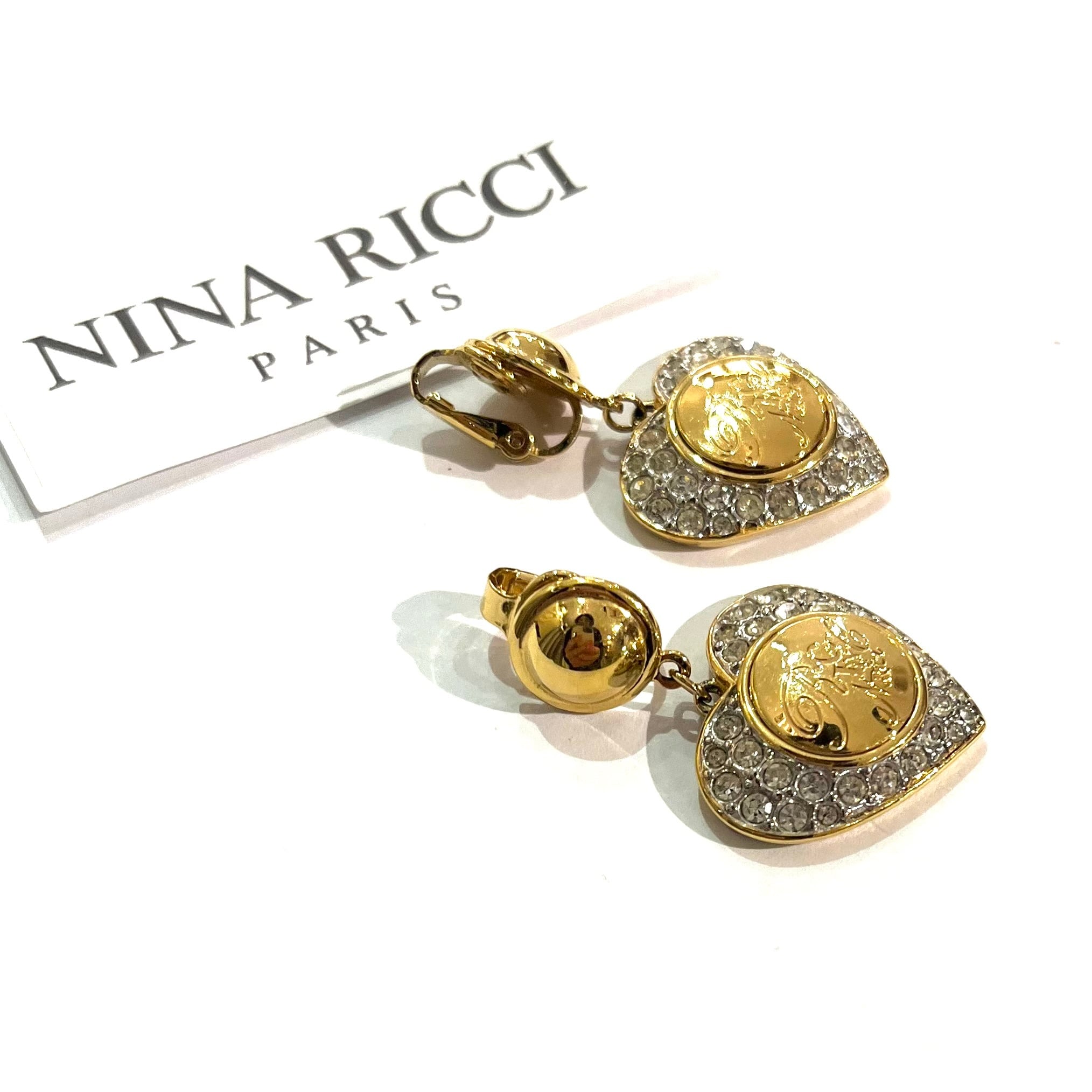 NINA RICCI/ニナリッチ/ヴィンテージニナリッチ/ヴィンテージイヤリング/ブランドイヤリング/ハートイヤリング/ゴールドイヤリング/ラインストーンイヤリング/揺れイヤリング/大人アクセサリー/上品アクセサリー福岡/一点ものアクセサリー福岡/ヴィンテージアクセサリー福岡