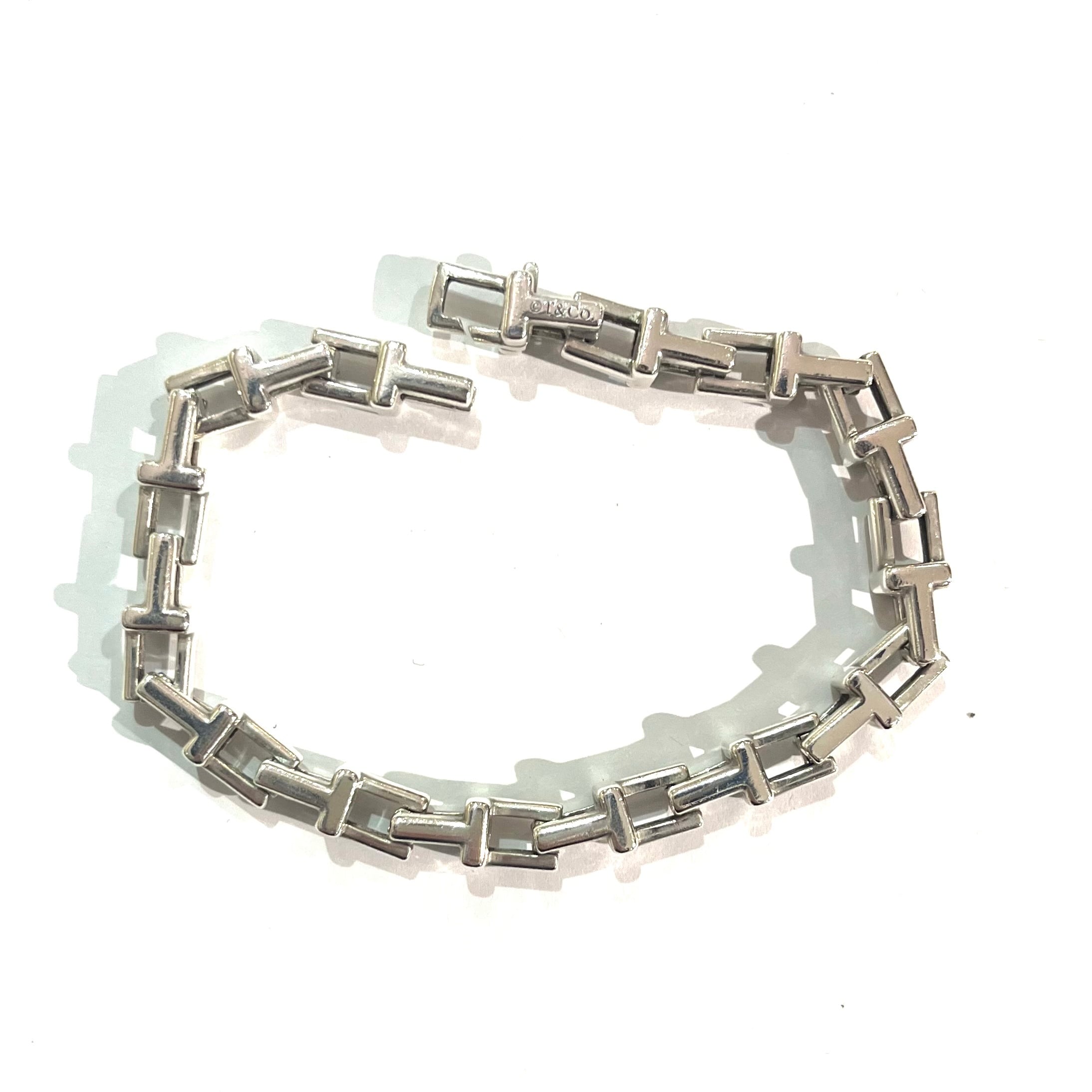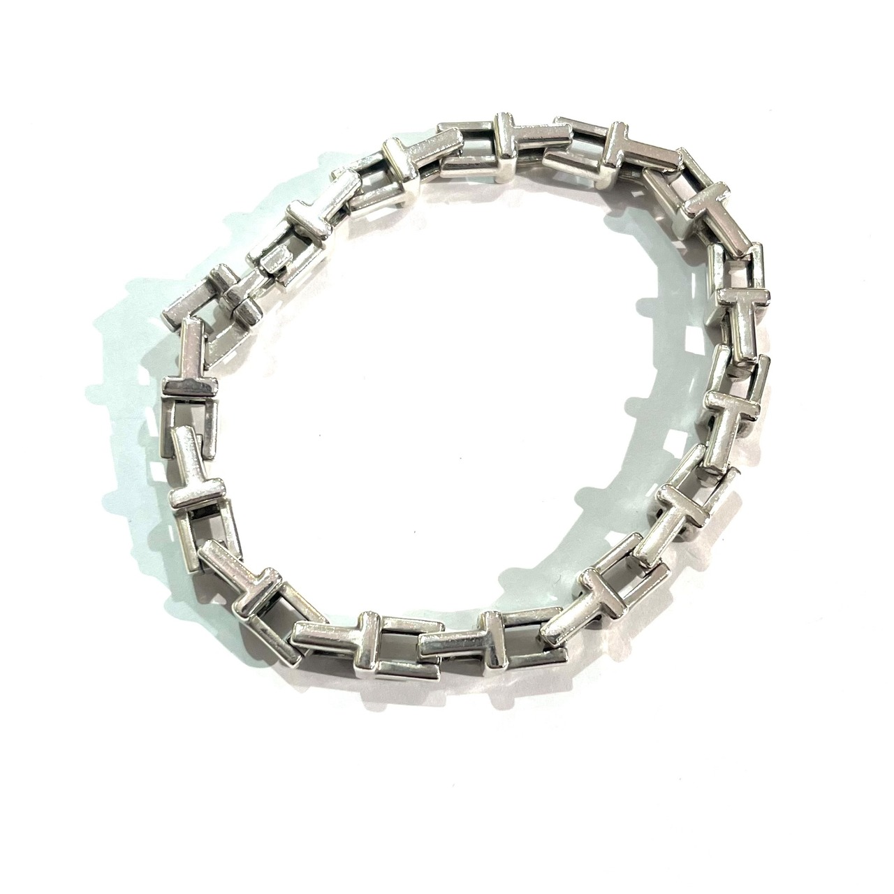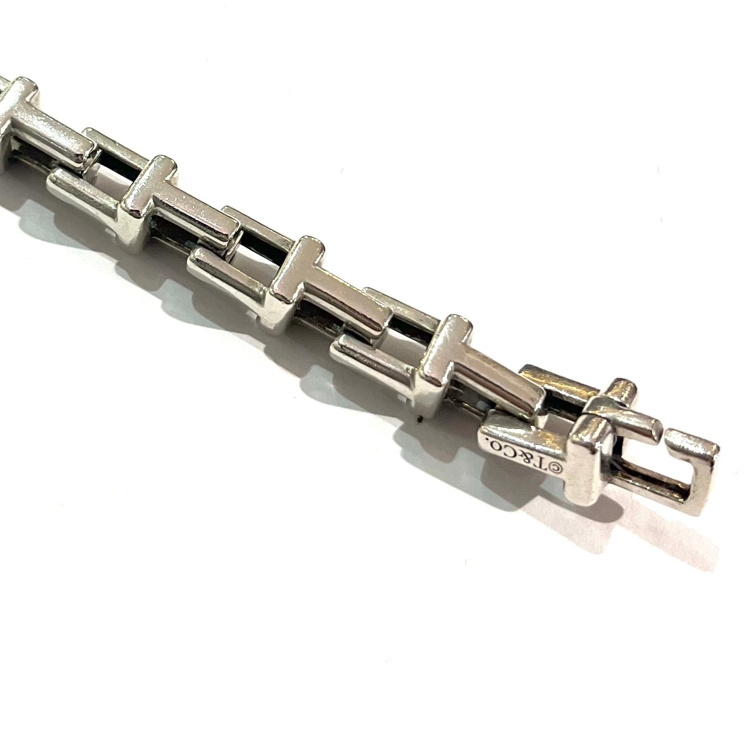 TIFFANY&CO.のスターリングシルバー925を使用した、Tモチーフが連なるデザインブレスレット。
