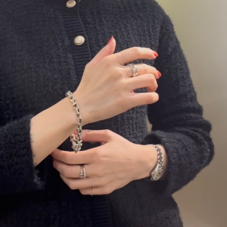 ボリューム感がありながらも、シルバーならではの上品な輝きで手元を引き締めます。