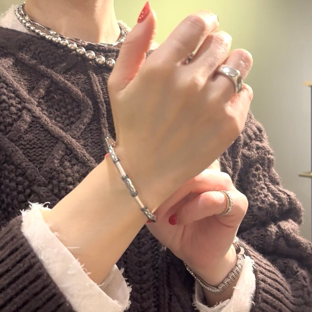 リング幅約0.9cmの程よいボリュームがあり、一本で着用してもスタイリングの主役になるデザイン。