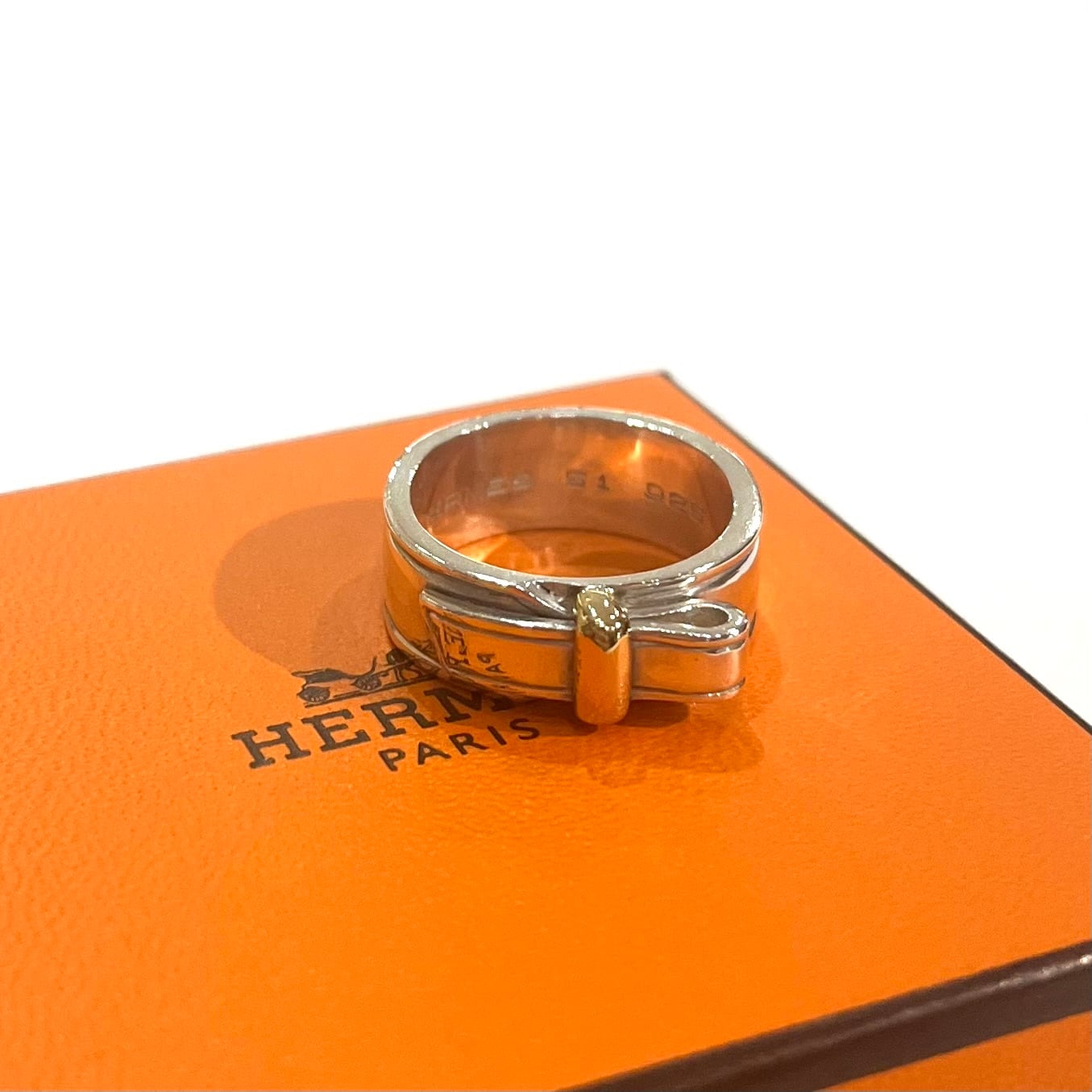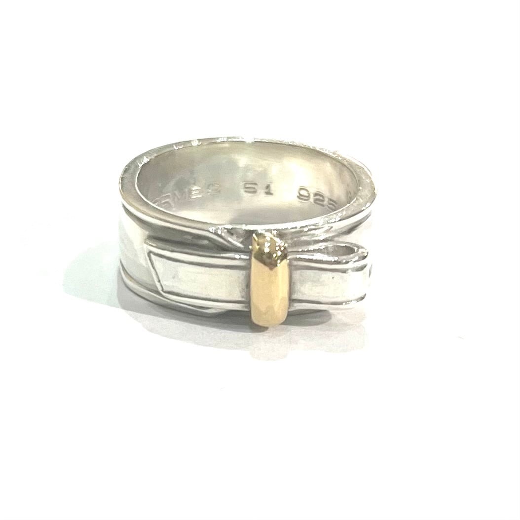【HERMÈS】エルメス K18YG×SV925 コンビネーションリング 10号シルバー925/結びの造形が美しい名作/クラシック エルメス 指輪 メンズエルメスメンズシルバーアクセサリーペアリング メンズリング