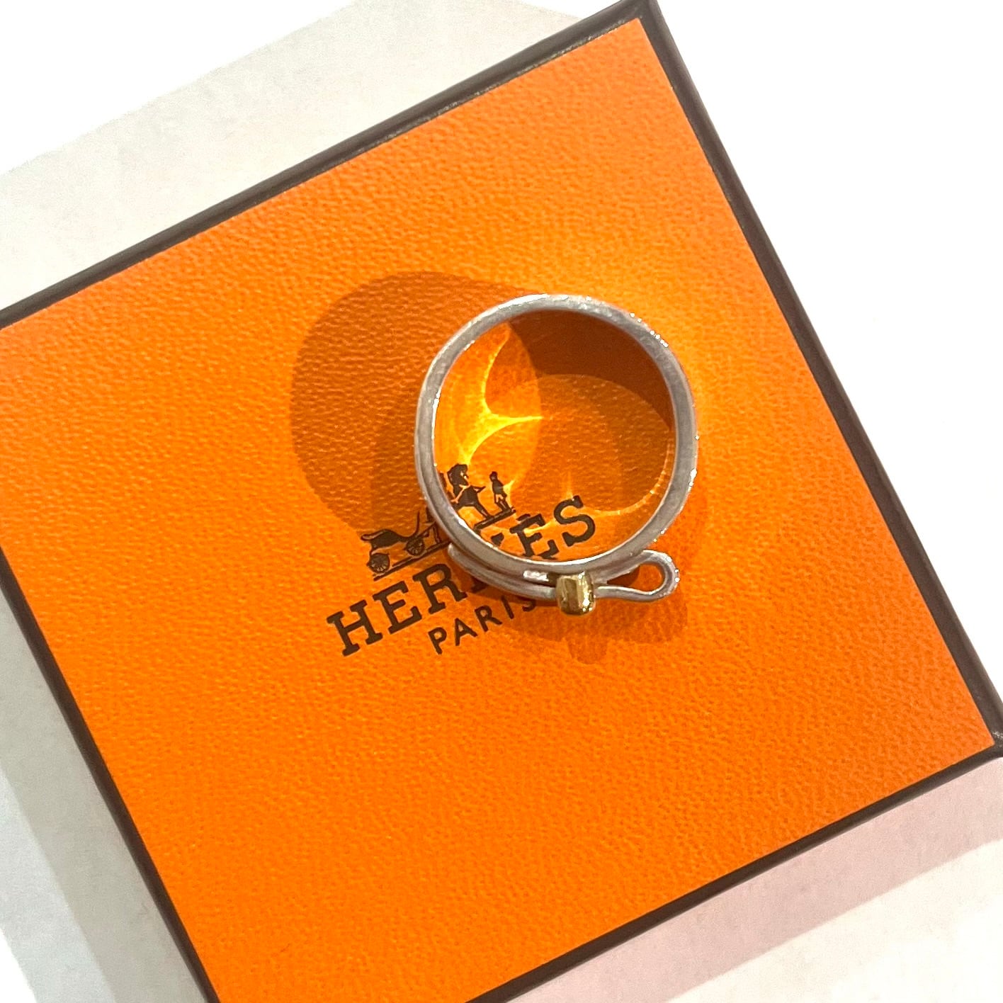 18金イエローゴールドとスターリングシルバー(SV925)を組み合わせた、HERMESのコンビネーションリング。