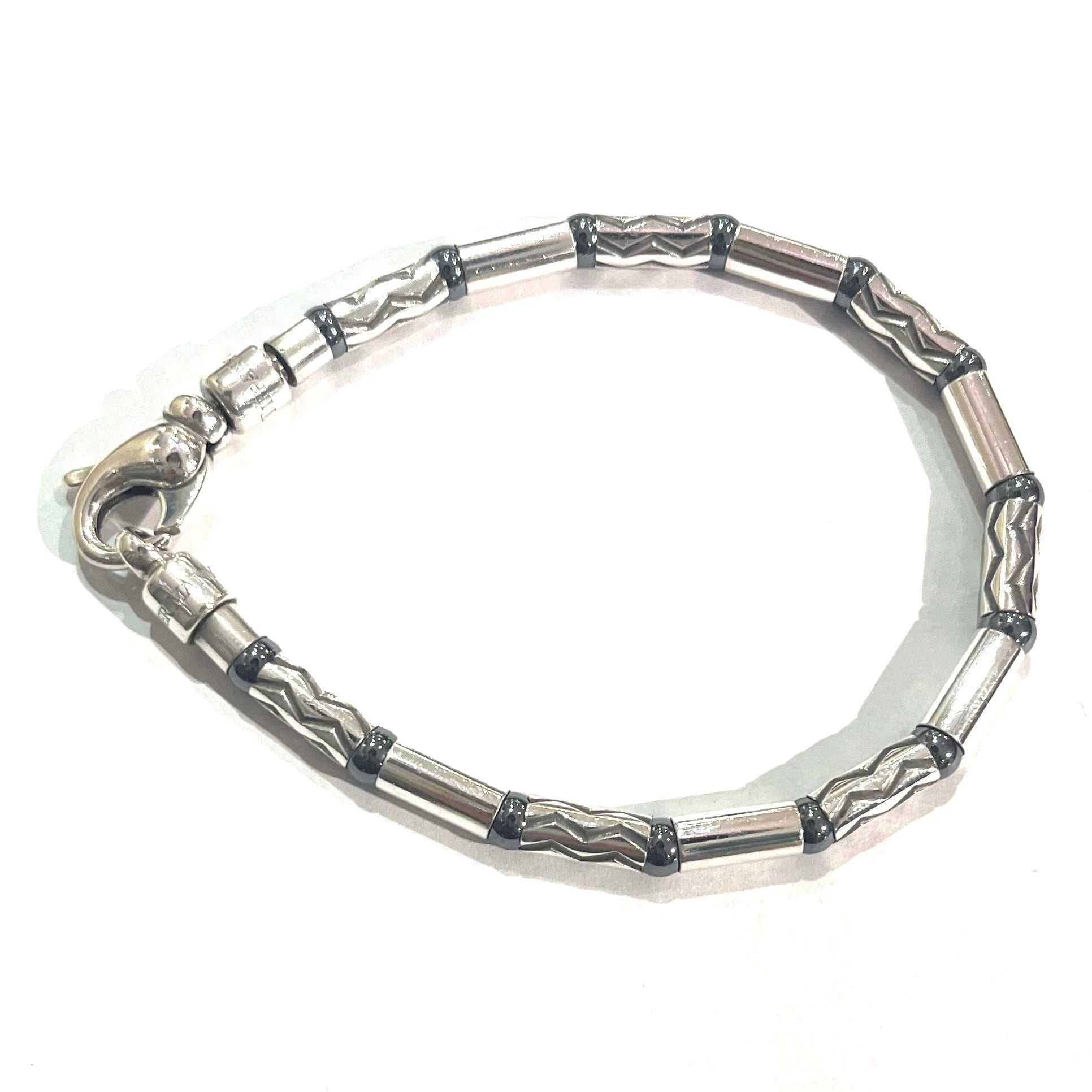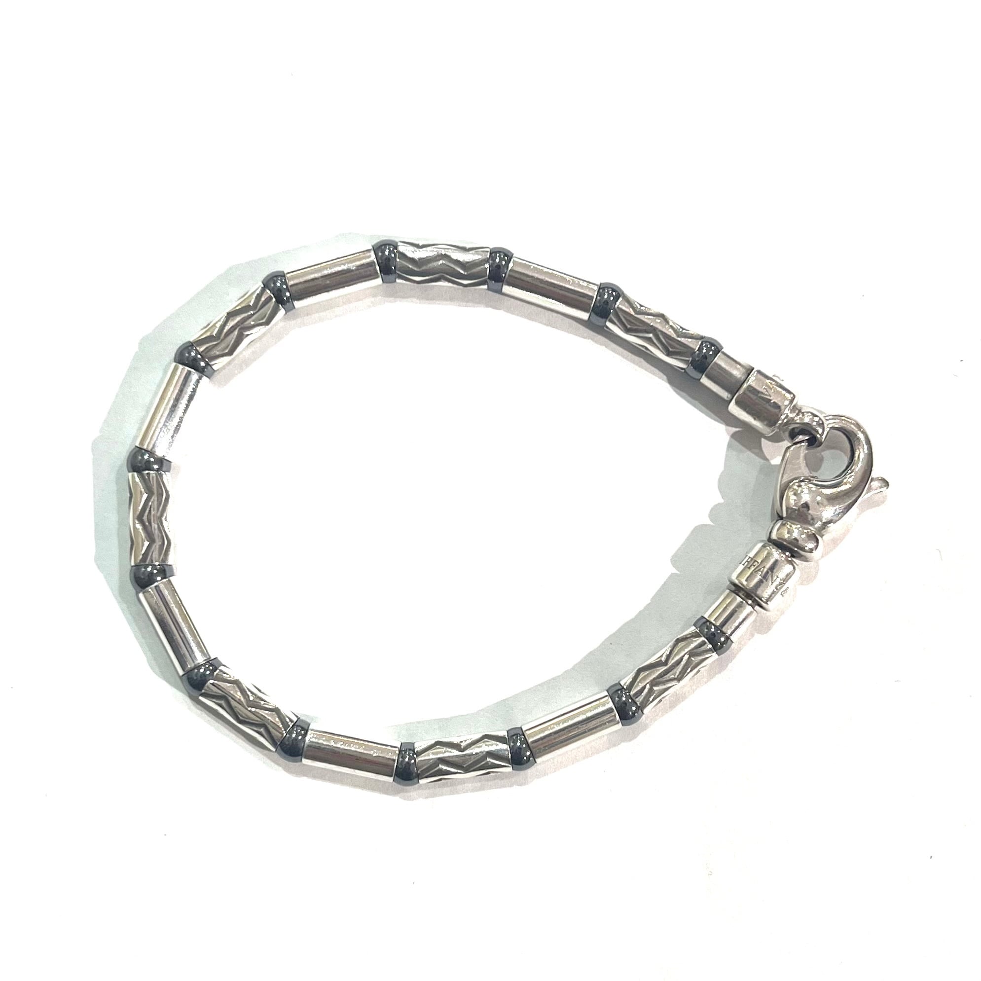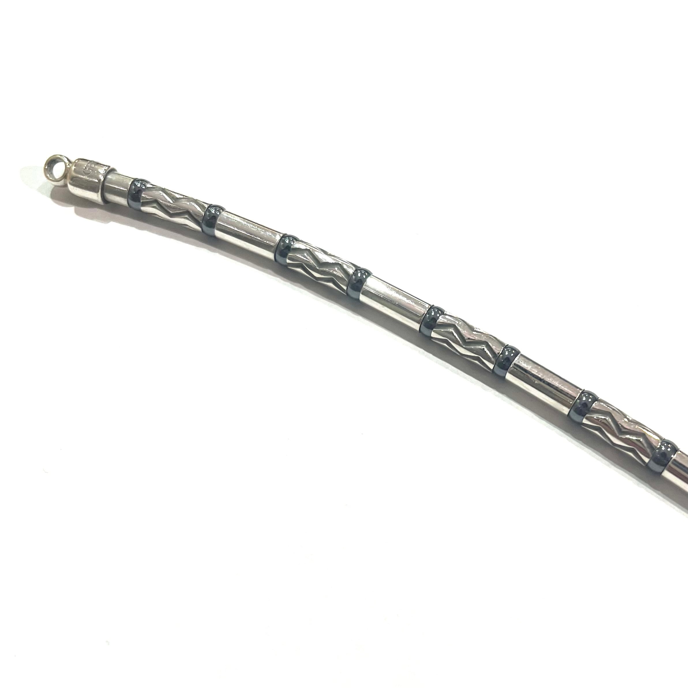 希少【TIFFANY&CO.】ドイツ製 幾何学ヘマタイトブレスレット 19cm/シルバー925/GERMANYヴィンテージ ティファニー/メンズブレスレット2026 シルバーアクセサリーファッション
