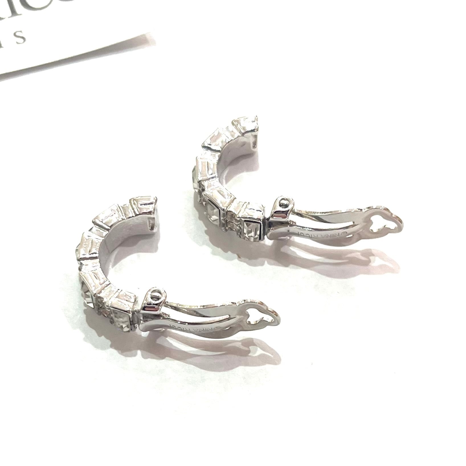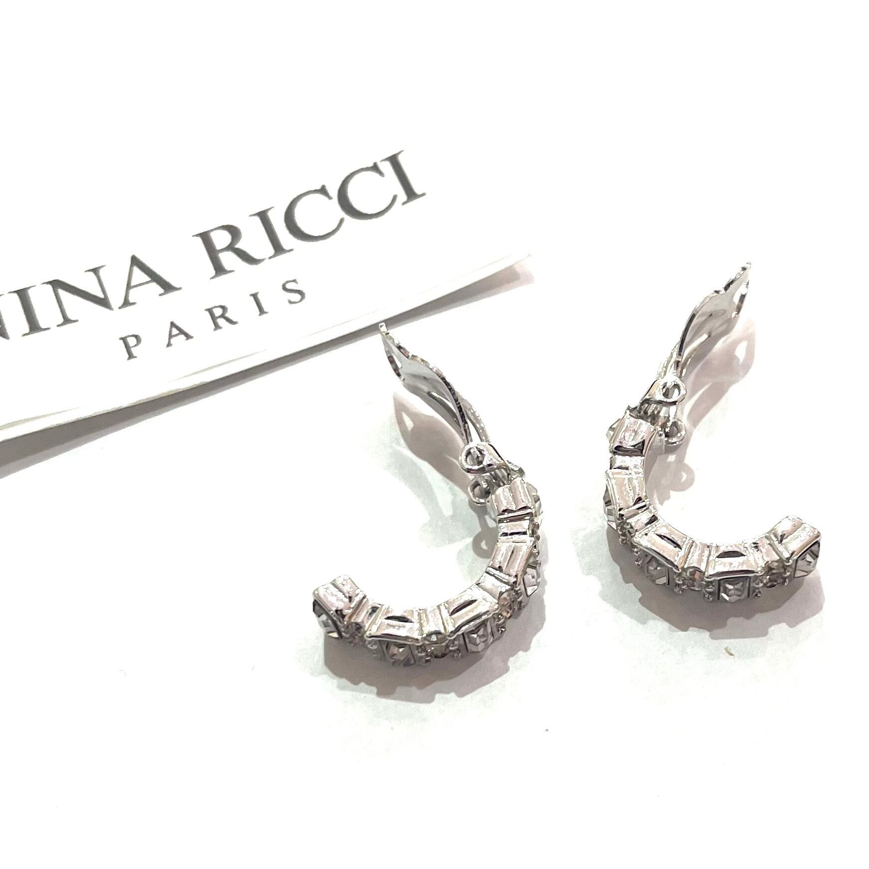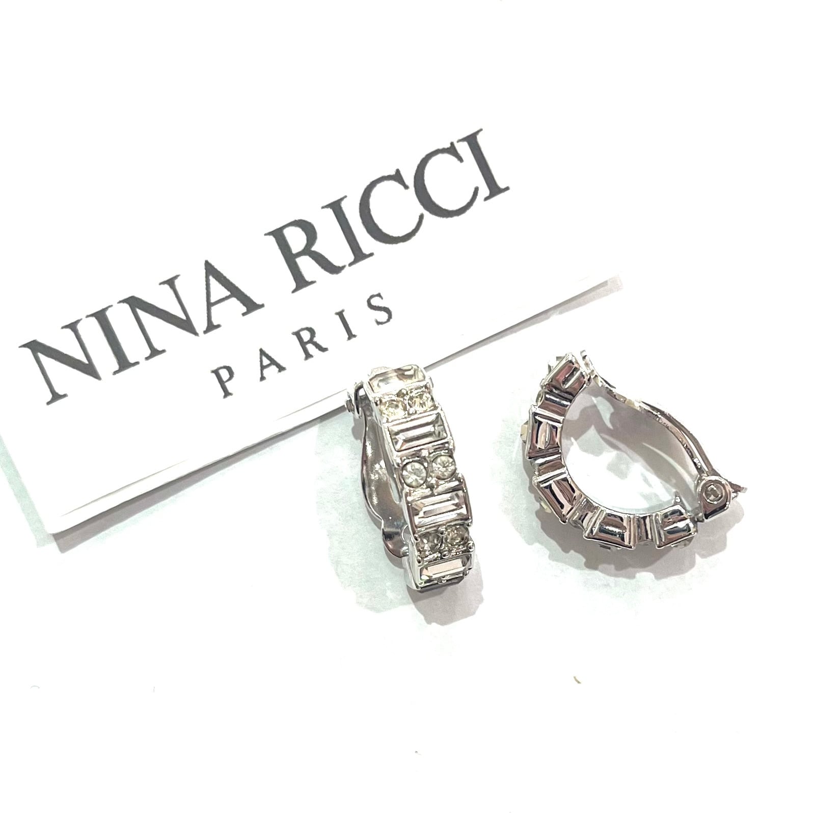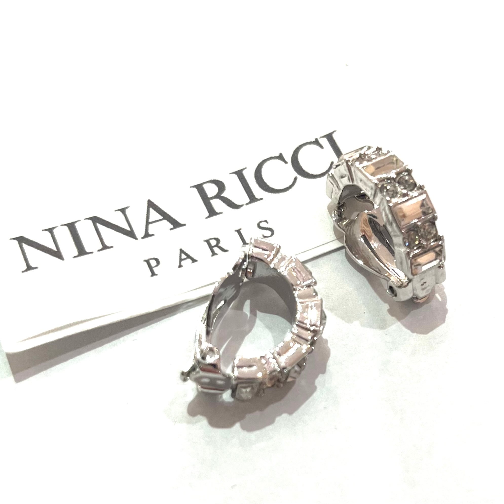 フランスの老舗 【NINA RICCI】2119 ニナリッチラインストーン煌めく スクエアシルバー90年代ヴィンテージ イヤリング アクセサリー ninaricci 刻印 ラウンド結婚式 春