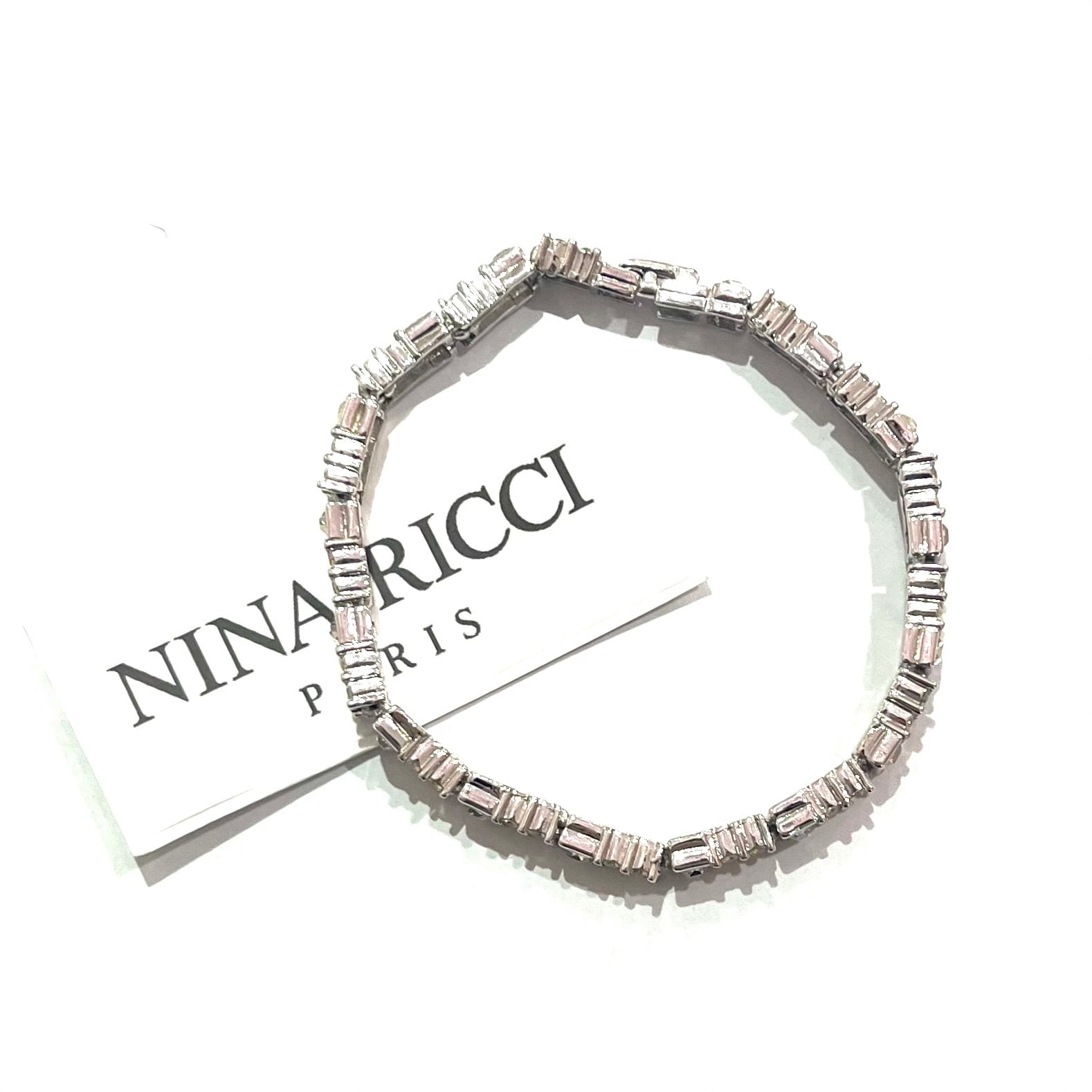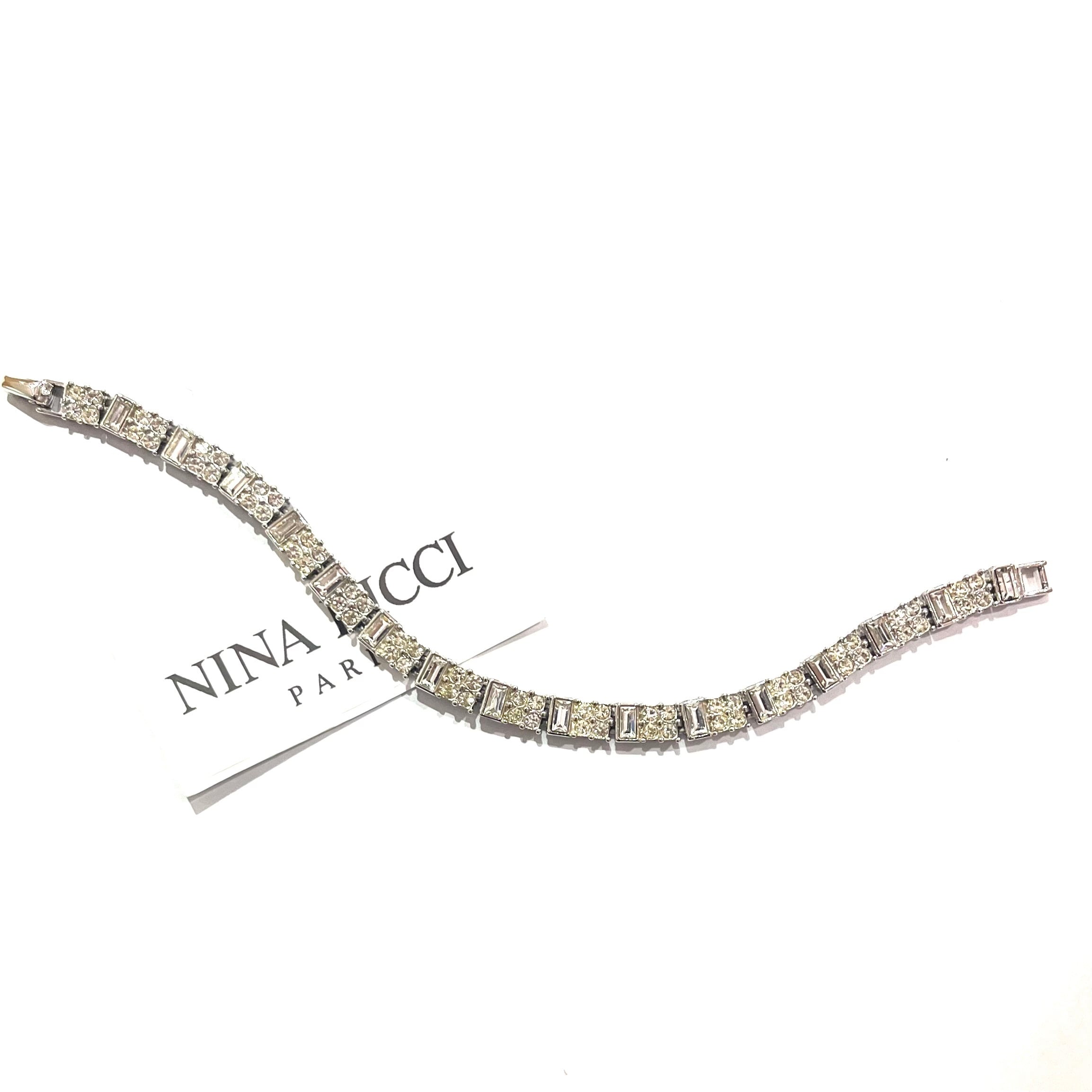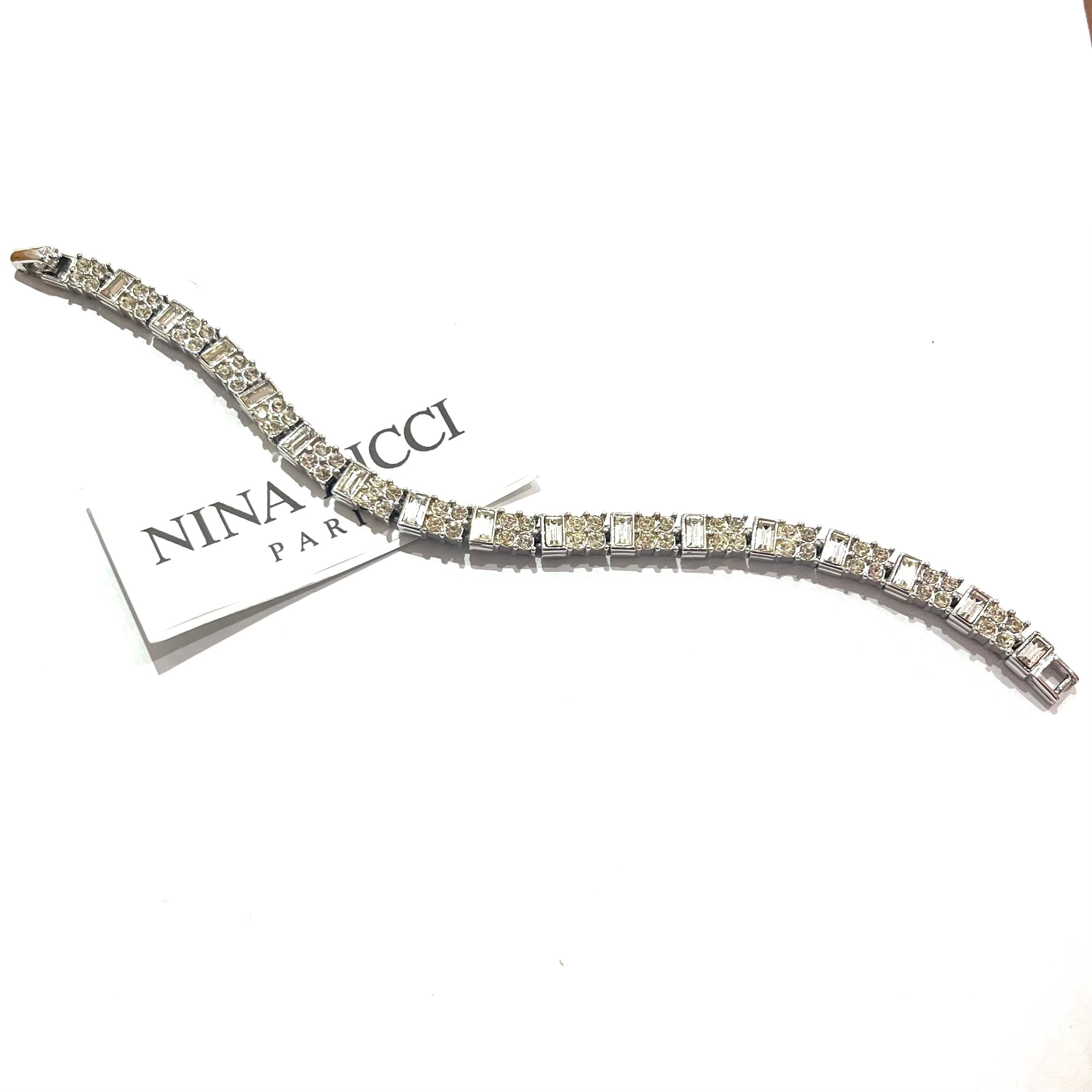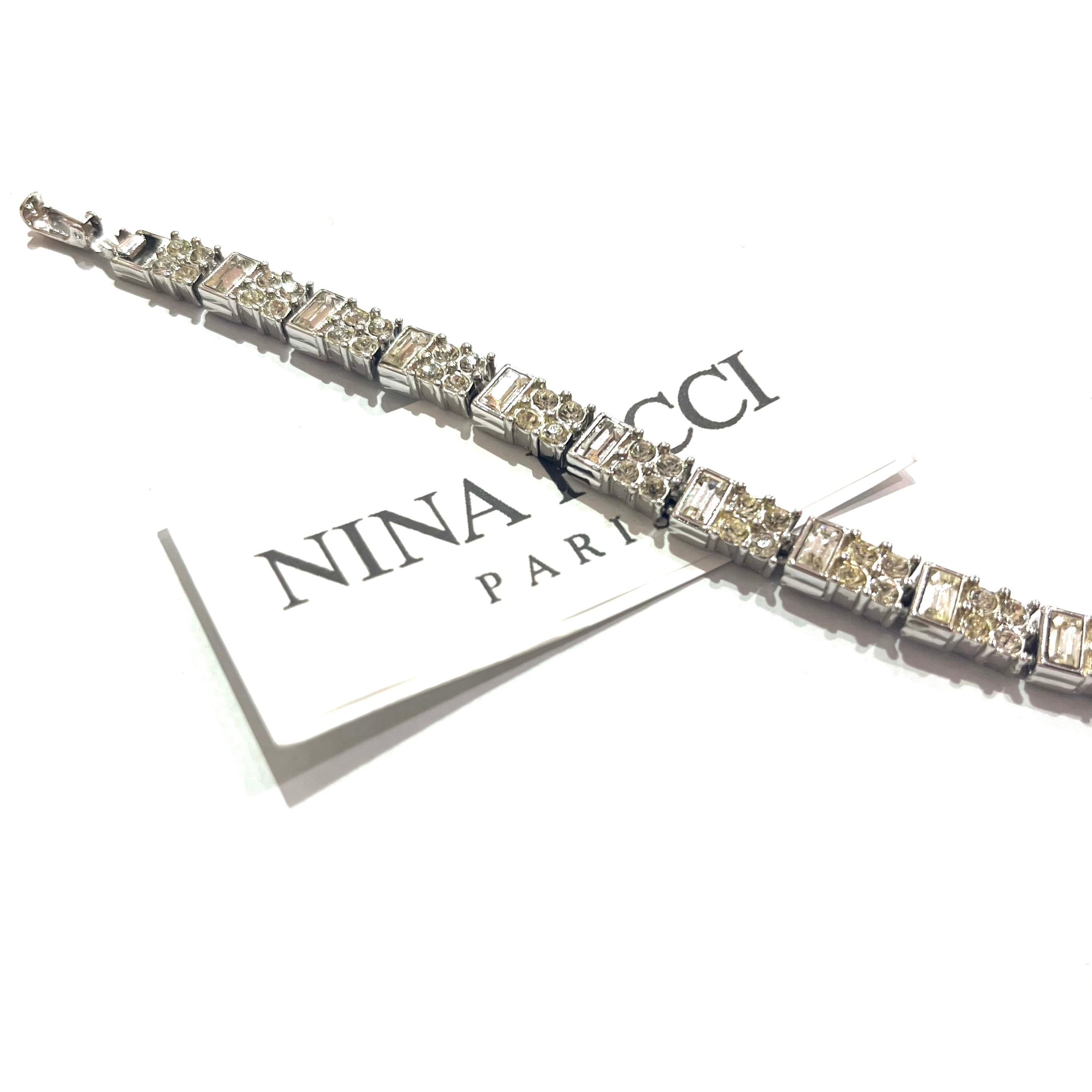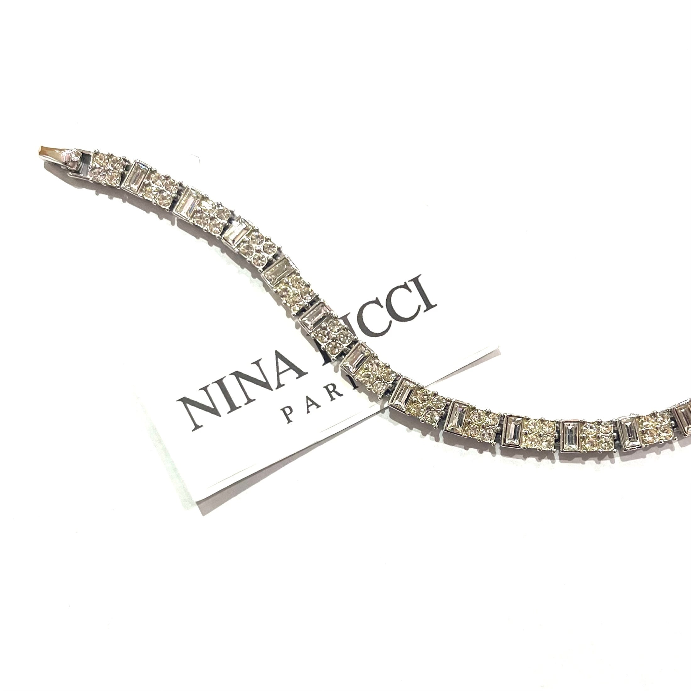 【NINA RICCI】 2118フランスの老舗 ニナリッチ 90年代ヴィンテージ 多面カット、スクエアビジューチェーンブレスレット 18.5cm/90s 手元が一気に華やぐフレンチエレガンス