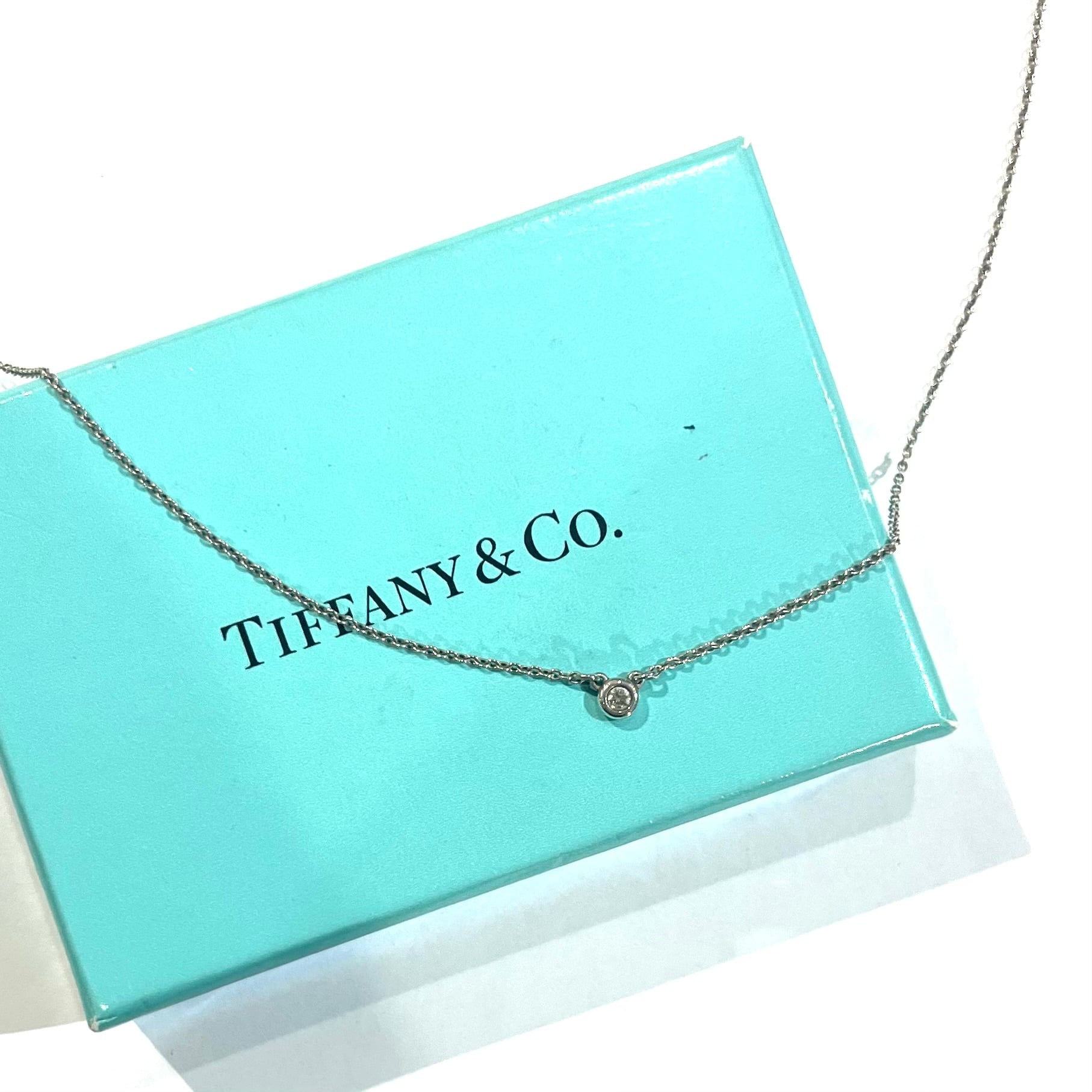 小粒ながらも澄んだ輝きを放つダイヤモンドが、胸元で上品に光を受けるティファニーの定番ペンダント。