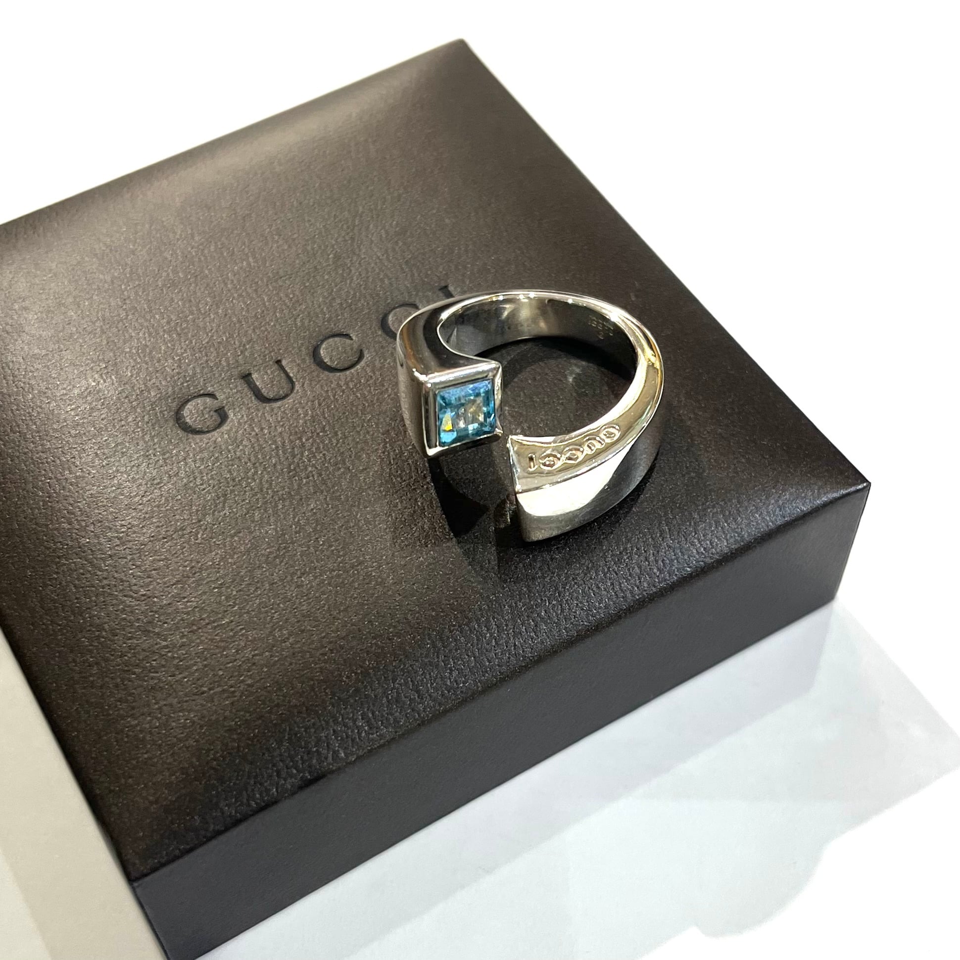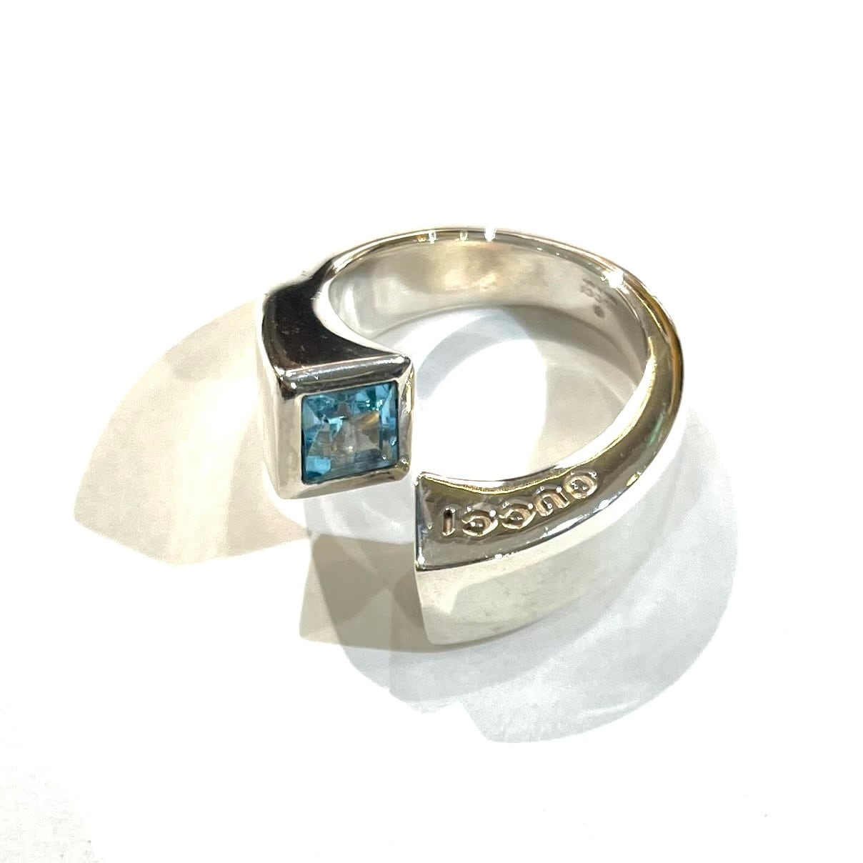 GUCCIの造形美が際立つ、ブルートパーズをセットしたシルバー925リング。