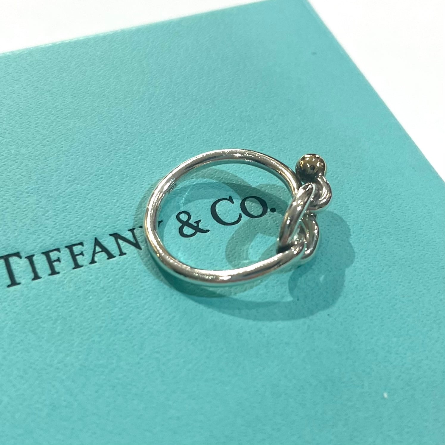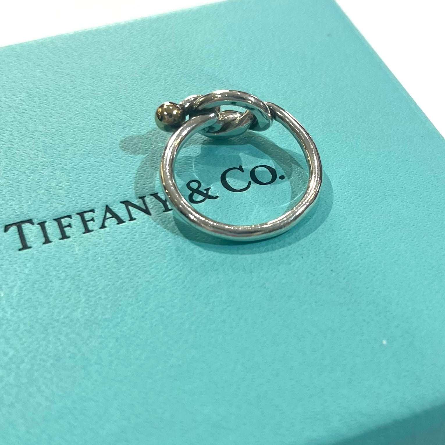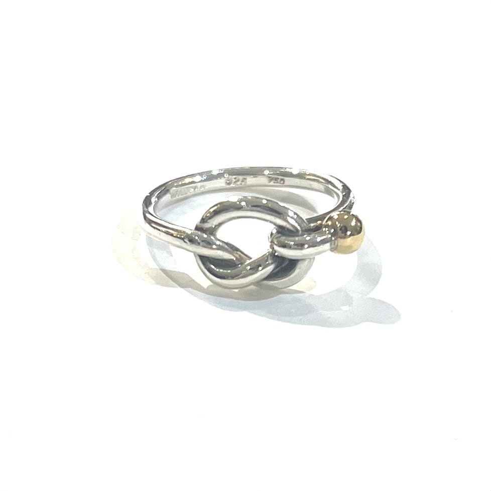 ティファニーを象徴する「ノット(結び目)」モチーフを採用した、シルバー925とK18ゴールドのコンビリング。