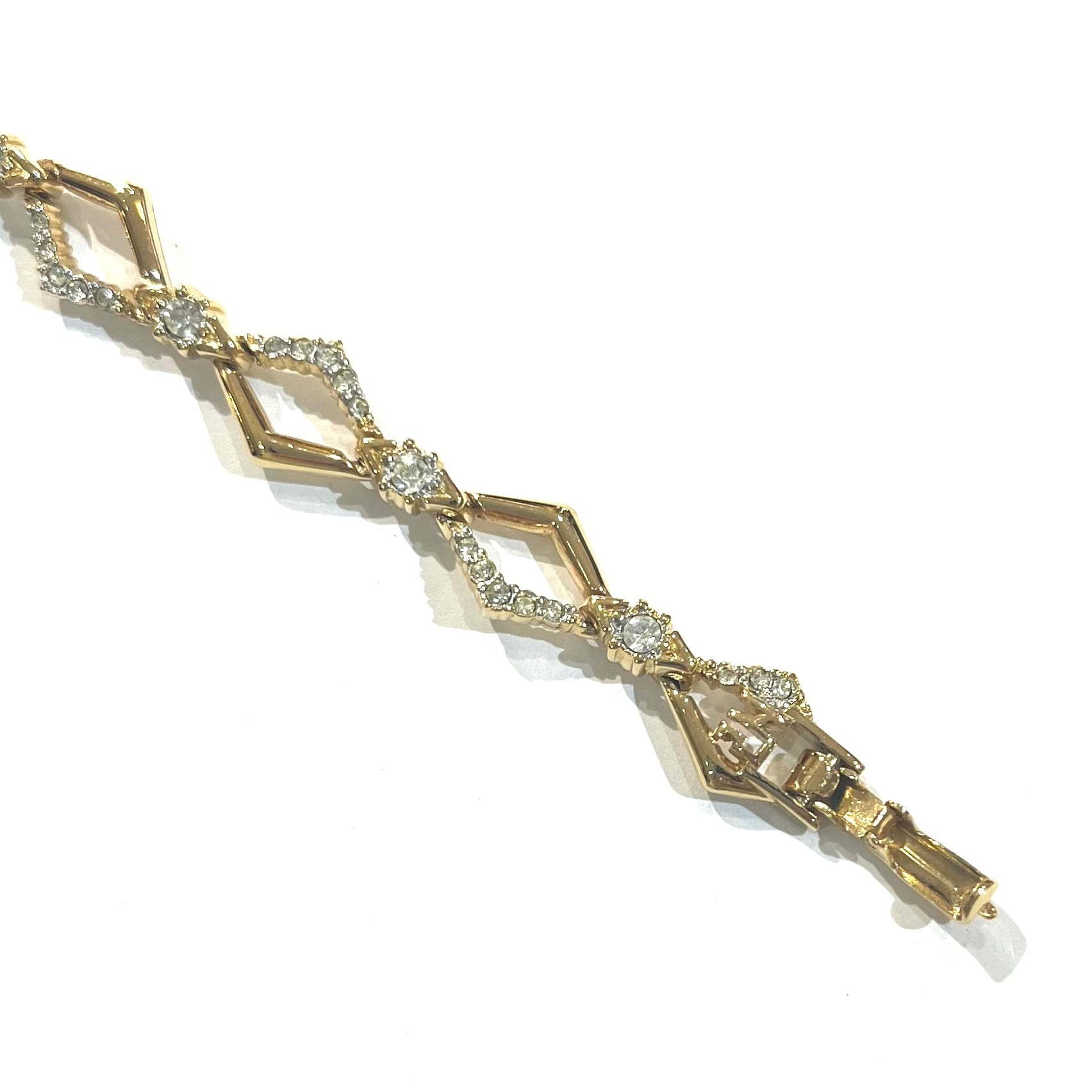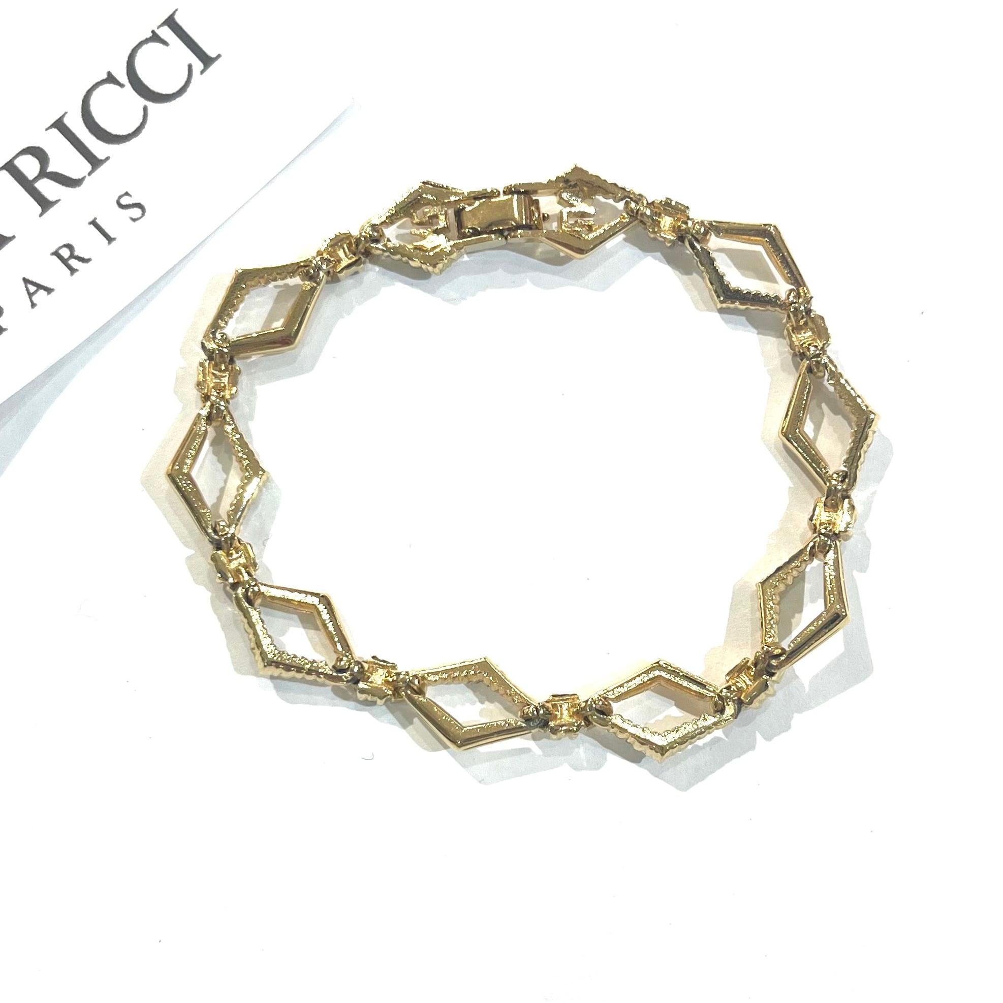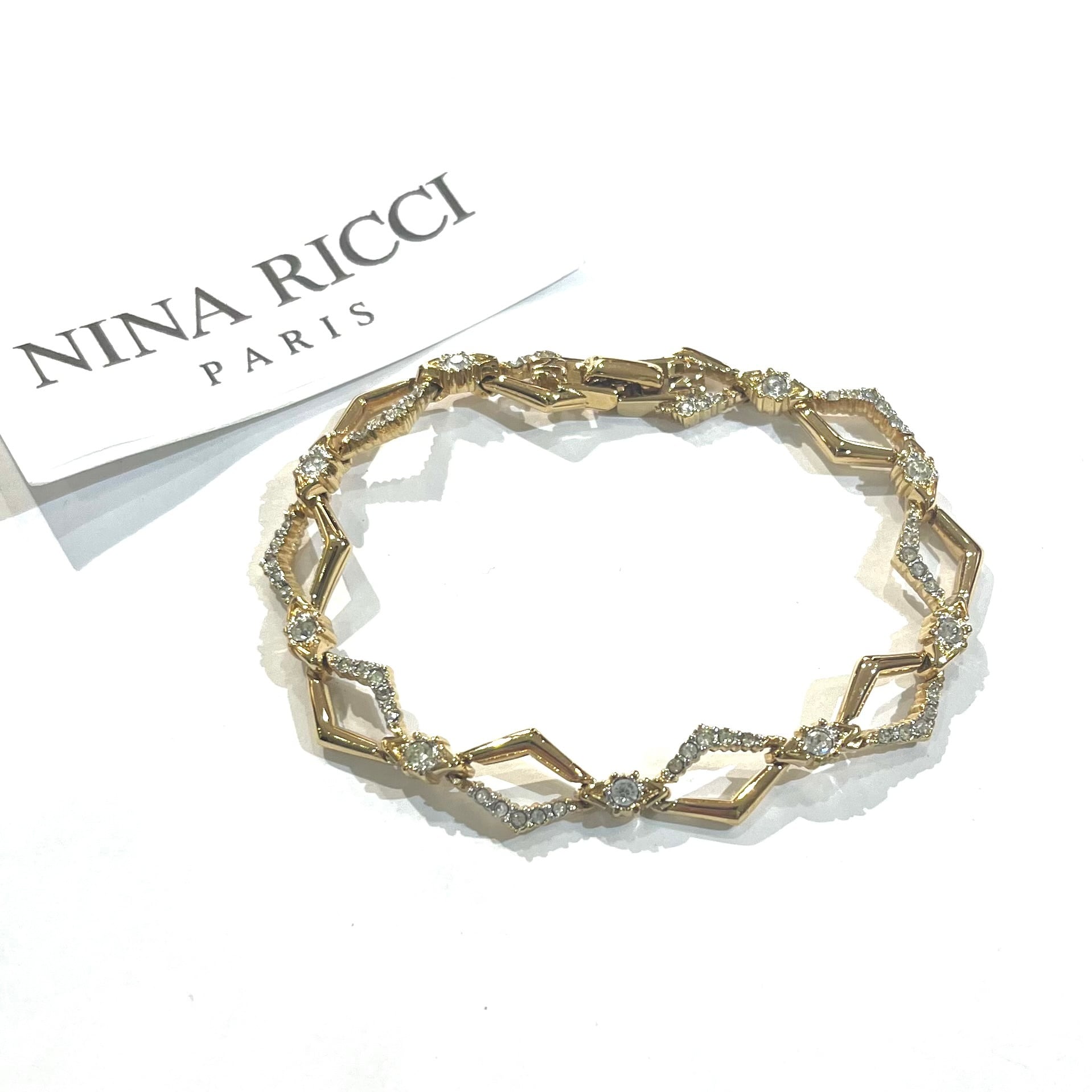 【NINA RICCI】 2145 フランスの老舗 ニナリッチ 90年代ヴィンテージ ひし形×ストーンゴールドチェーンブレスレット 18cm/90s 手元が一気に華やぐフレンチエレガンス ゴールドブレスレット