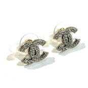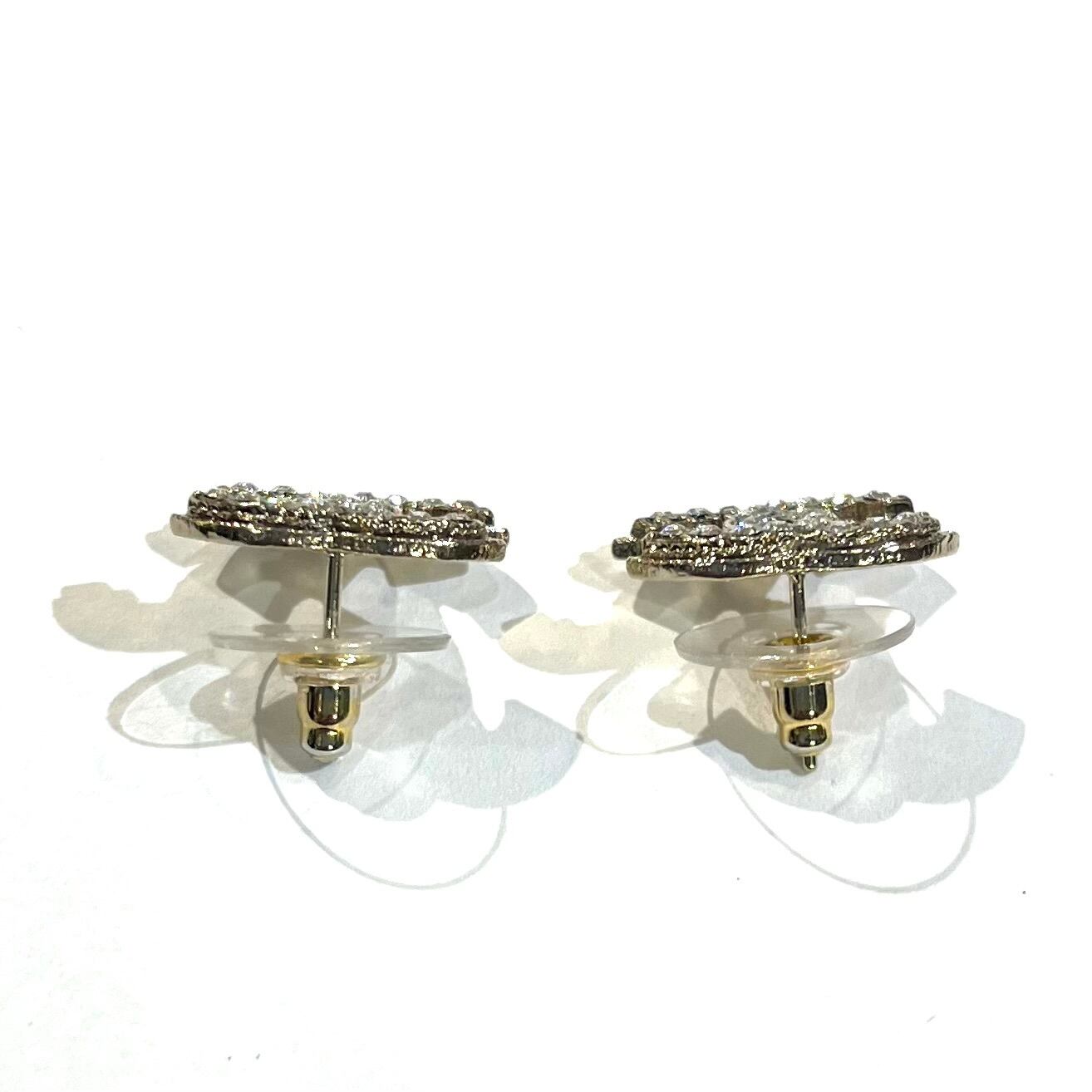 極美品【CHANEL 】2163 ラインストーンシャネルピアスシルバーCOCOヴィンテージイヤリング アンティーク クリップフランス結婚式ブライダルブランド メンズピアス シルバーアクセサリー コンビカラー