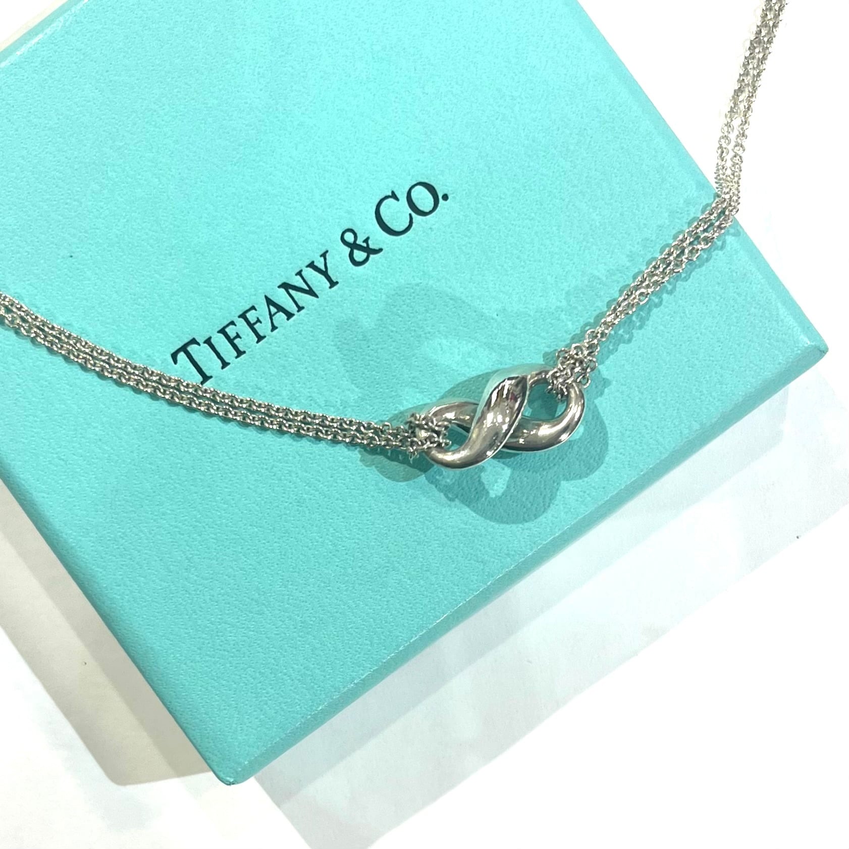 TIFFANY&Co.の中でも、意味と美しさを併せ持つインフィニティモチーフのシルバーネックレス。
