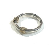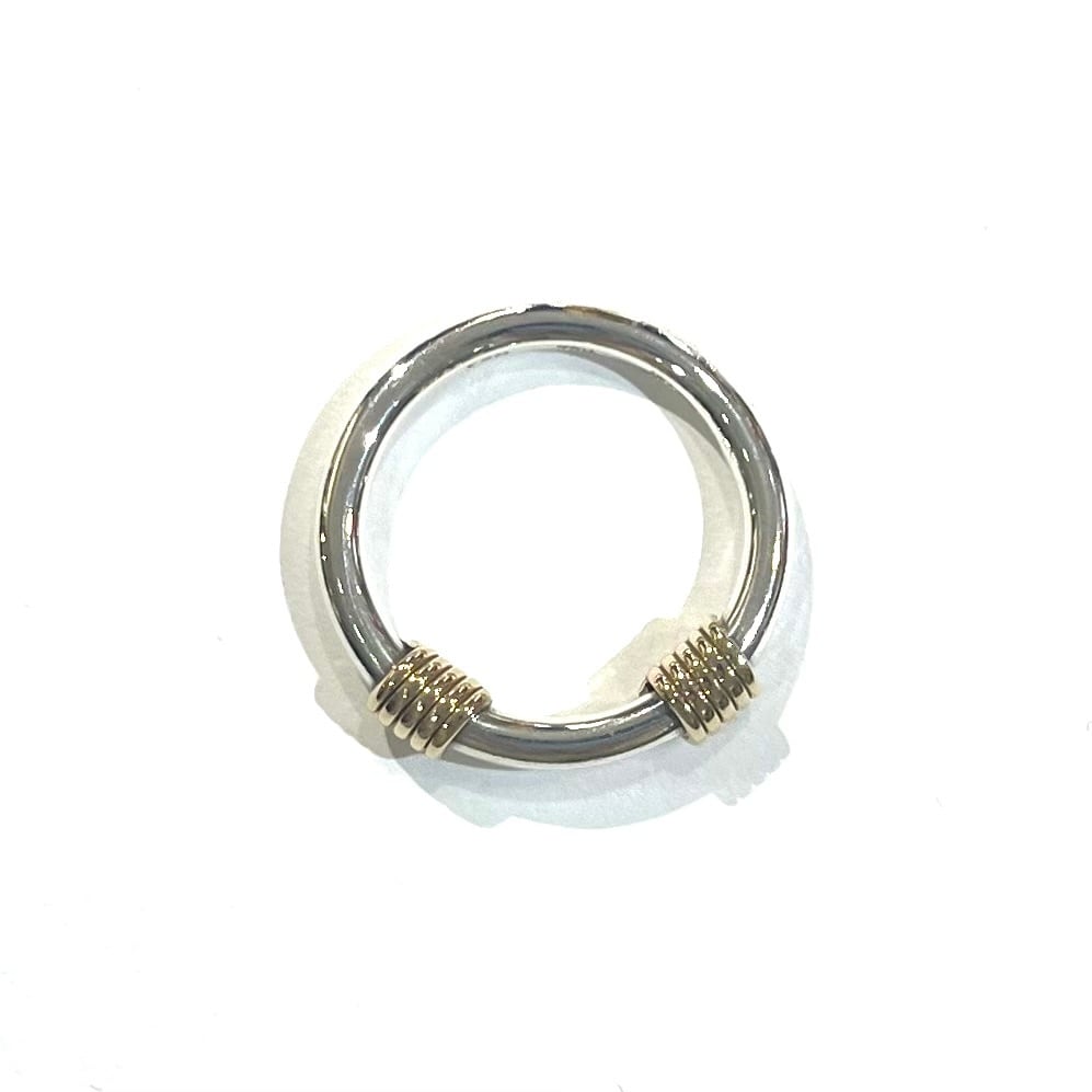 シルバー925のなめらかなラウンドフォルムに、K18イエローゴールドのコイル装飾を組み合わせた、コントラストの美しい一本。
