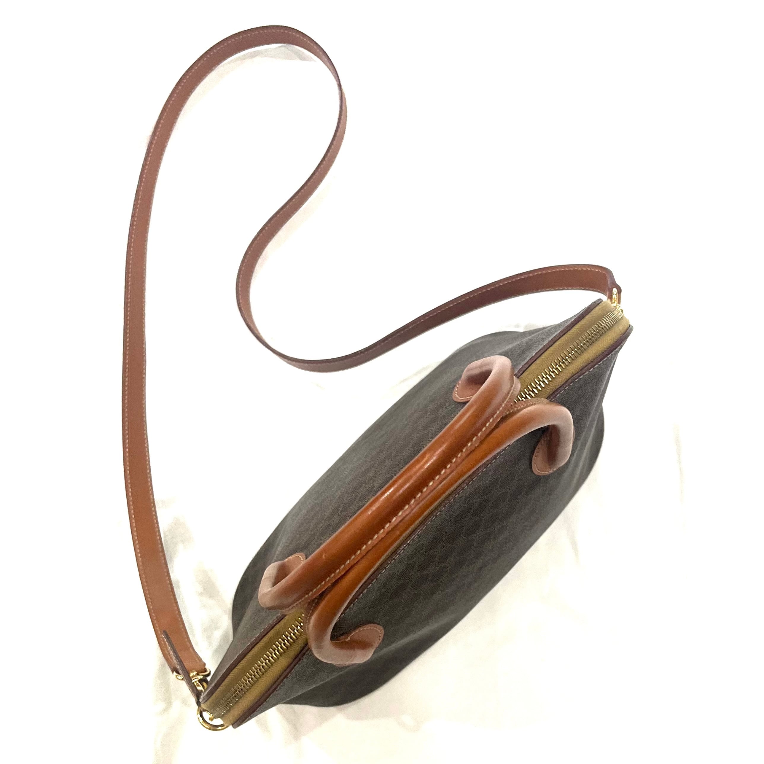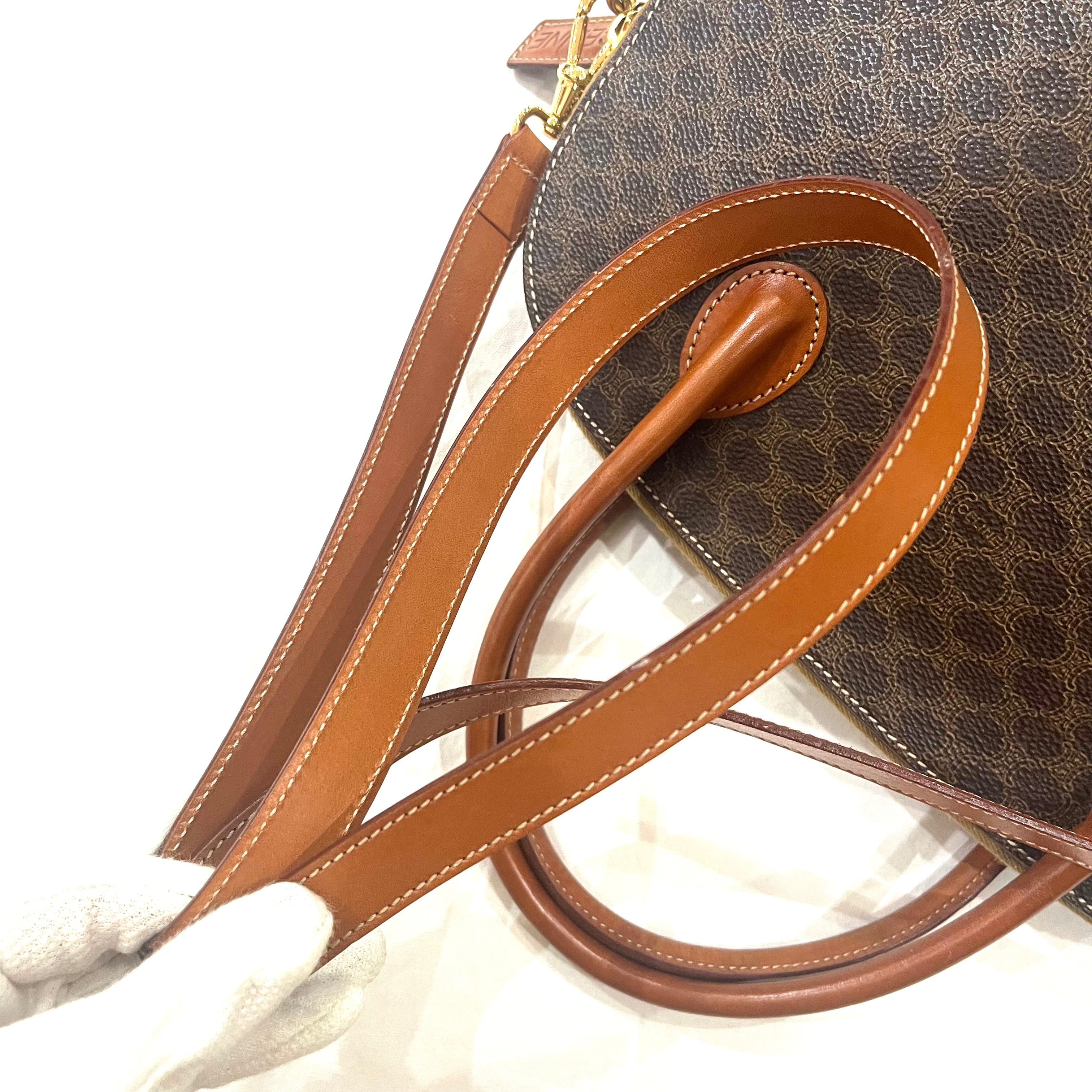 【CELINE】セリーヌ マカダム柄 2WAYハンドバッグ/ブラウン/PVC×レザー/ショルダーストラップ付き/ヴィンテージ セリーヌ ボリード型