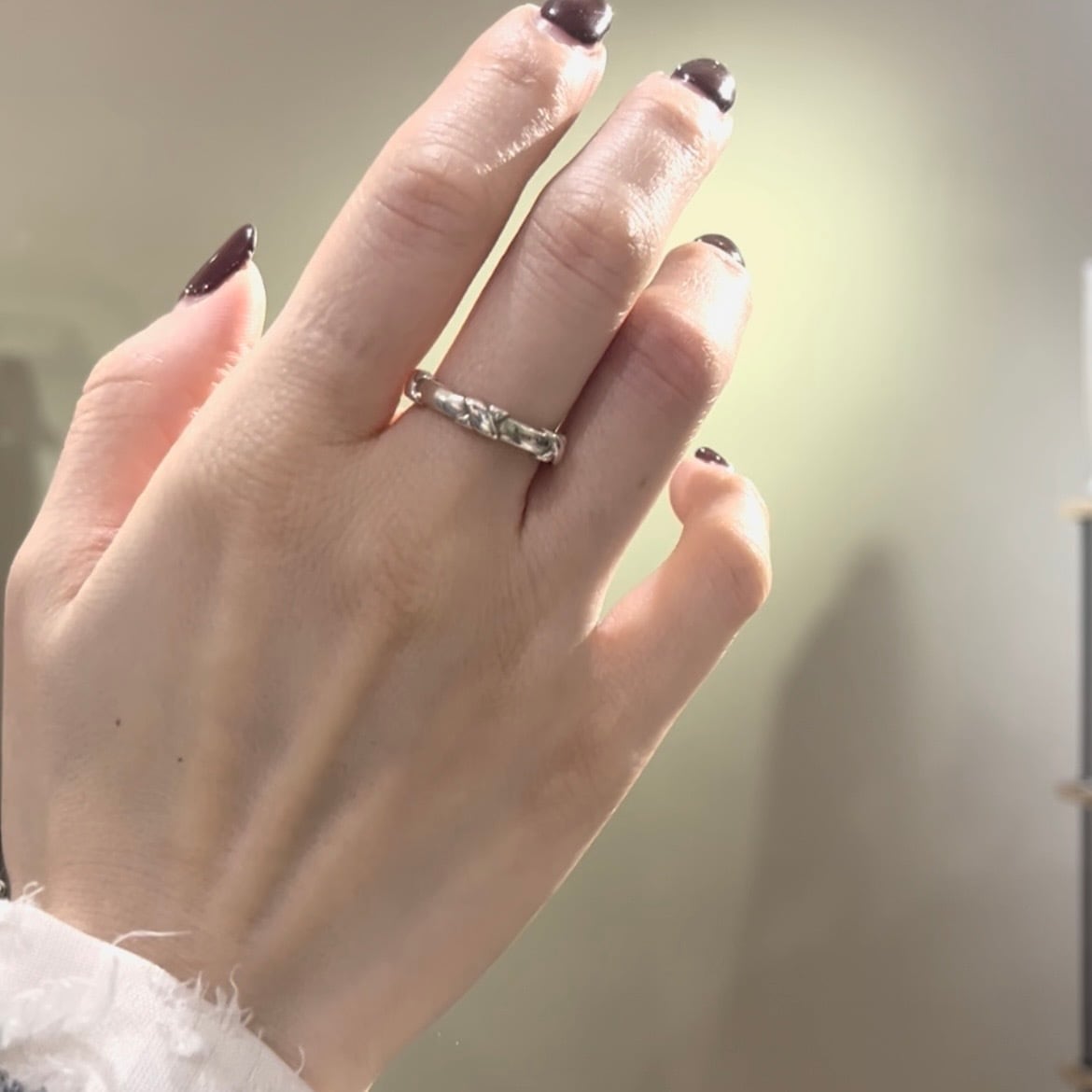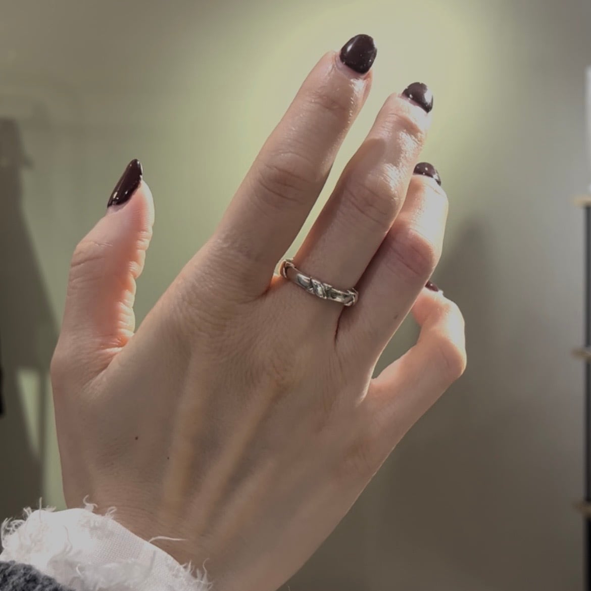 シルバー925ならではの質感と、立体的に交差するラインが指元に程よい存在感を与え、
