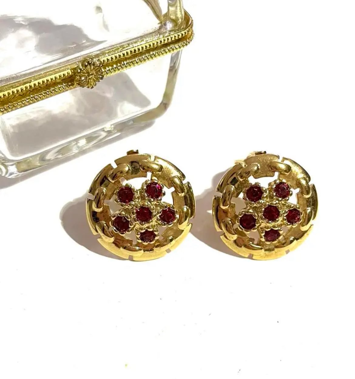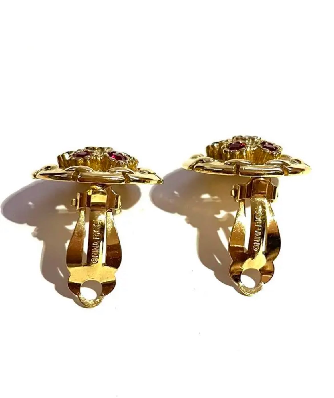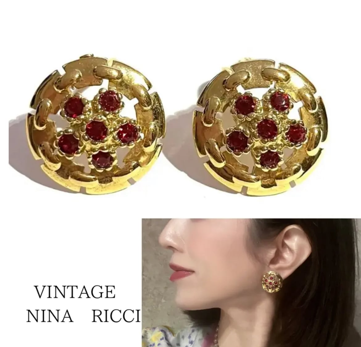 nina ricci 0270 90s VINTAGE ビジューストーン ニナリッチ フラワー イヤリング クリップ ブライダル 結婚式 アンティーク ヴィンテージ 華やか ギフト デニム