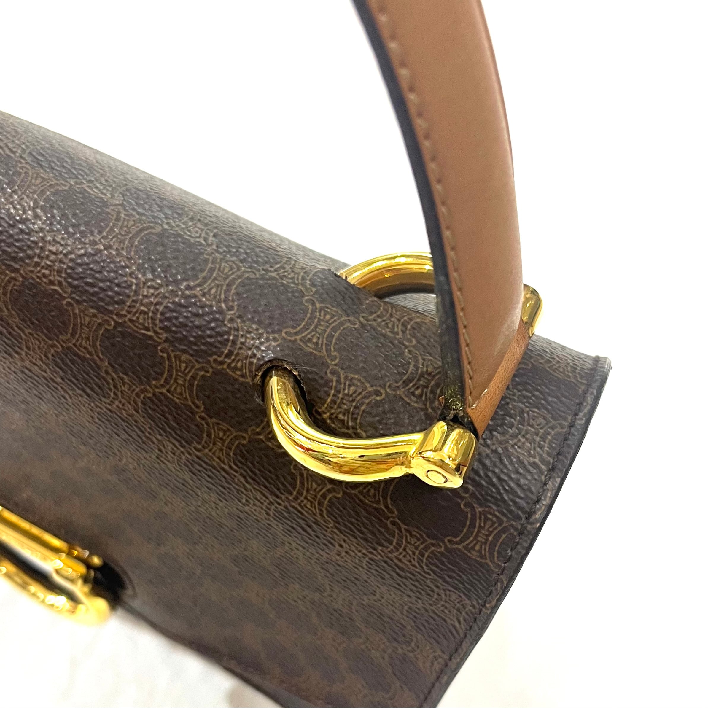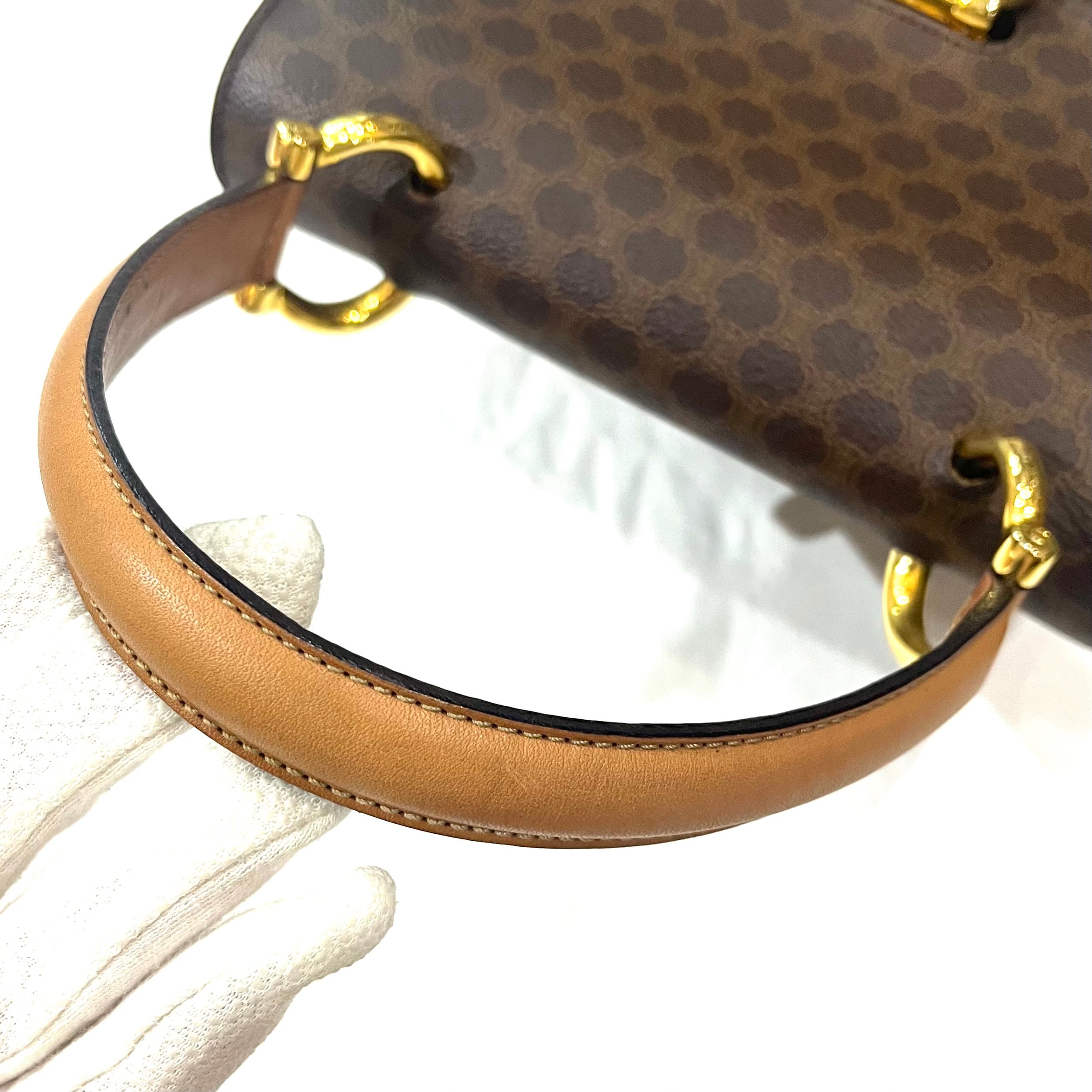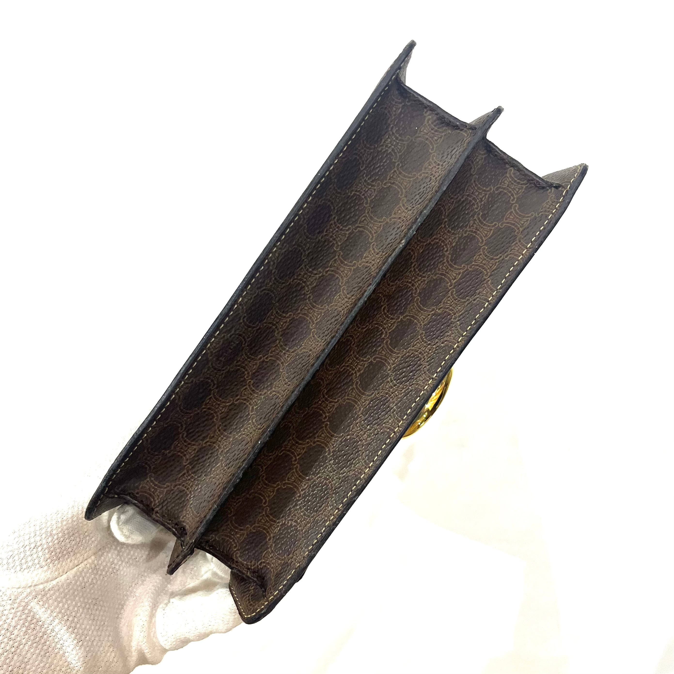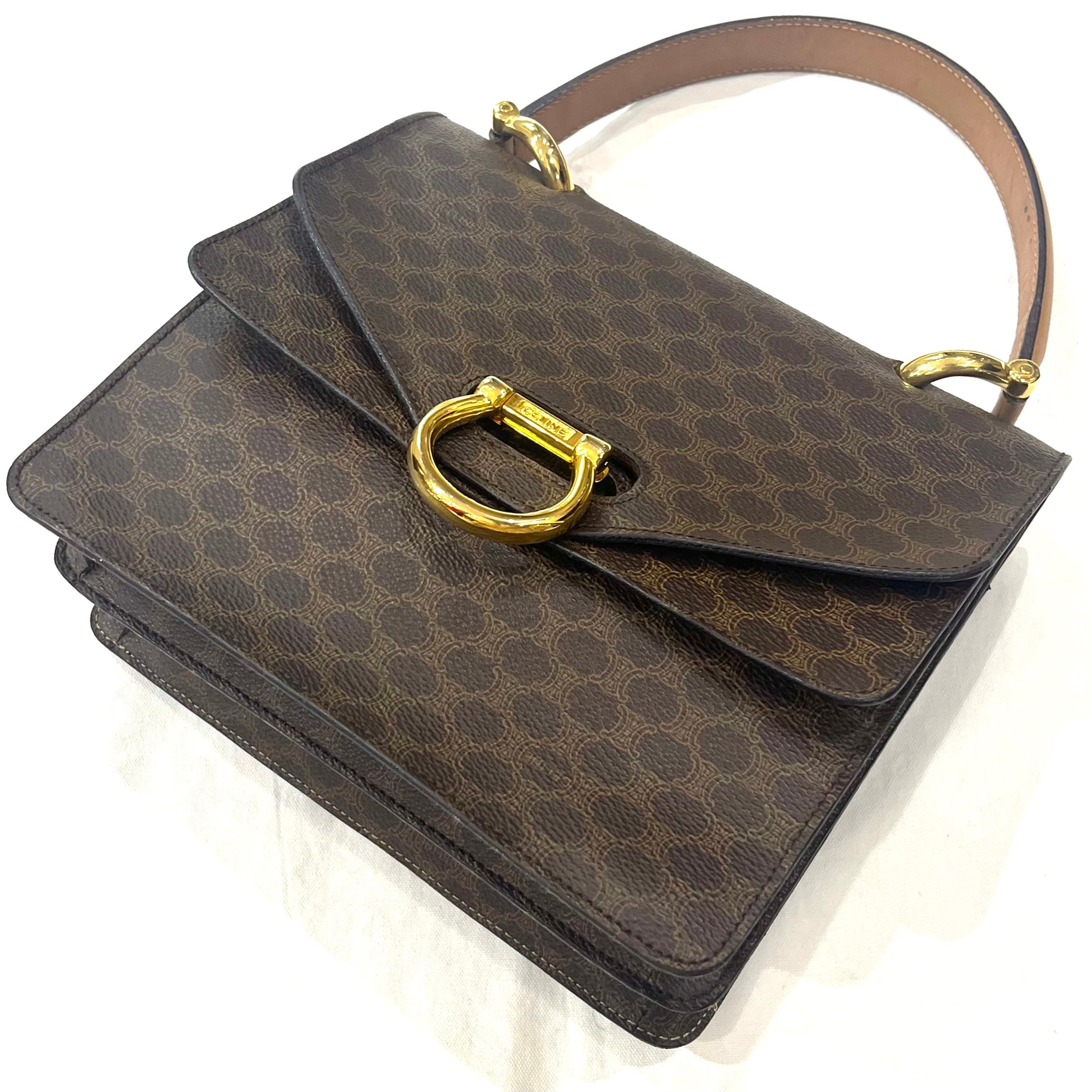 【CELINE】 ヴィンテージセリーヌ マカダム柄 二重フラップ ハンドバッグ ブラウン レザー×PVC ゴールド金具 ヴィンテージ人気 二重蓋 oldceline 福岡 ヴィンテージショップ ヴィンテージバッグ