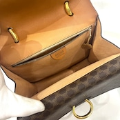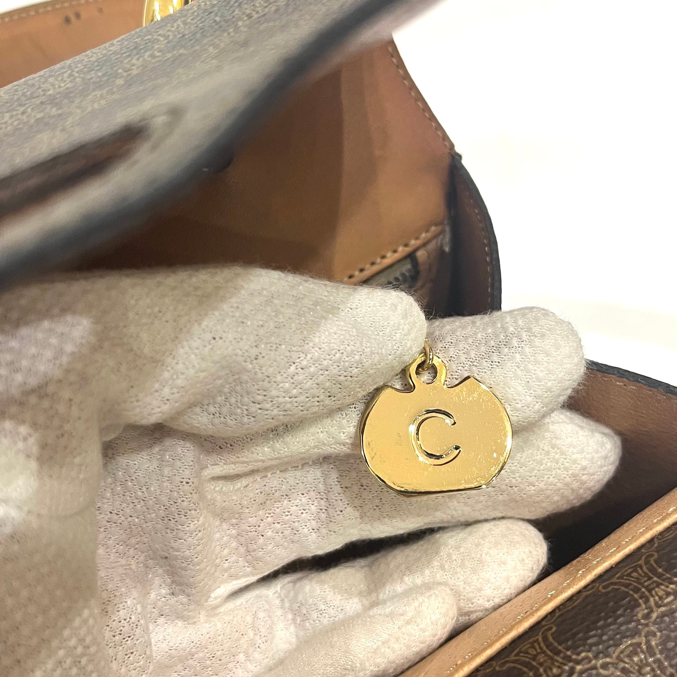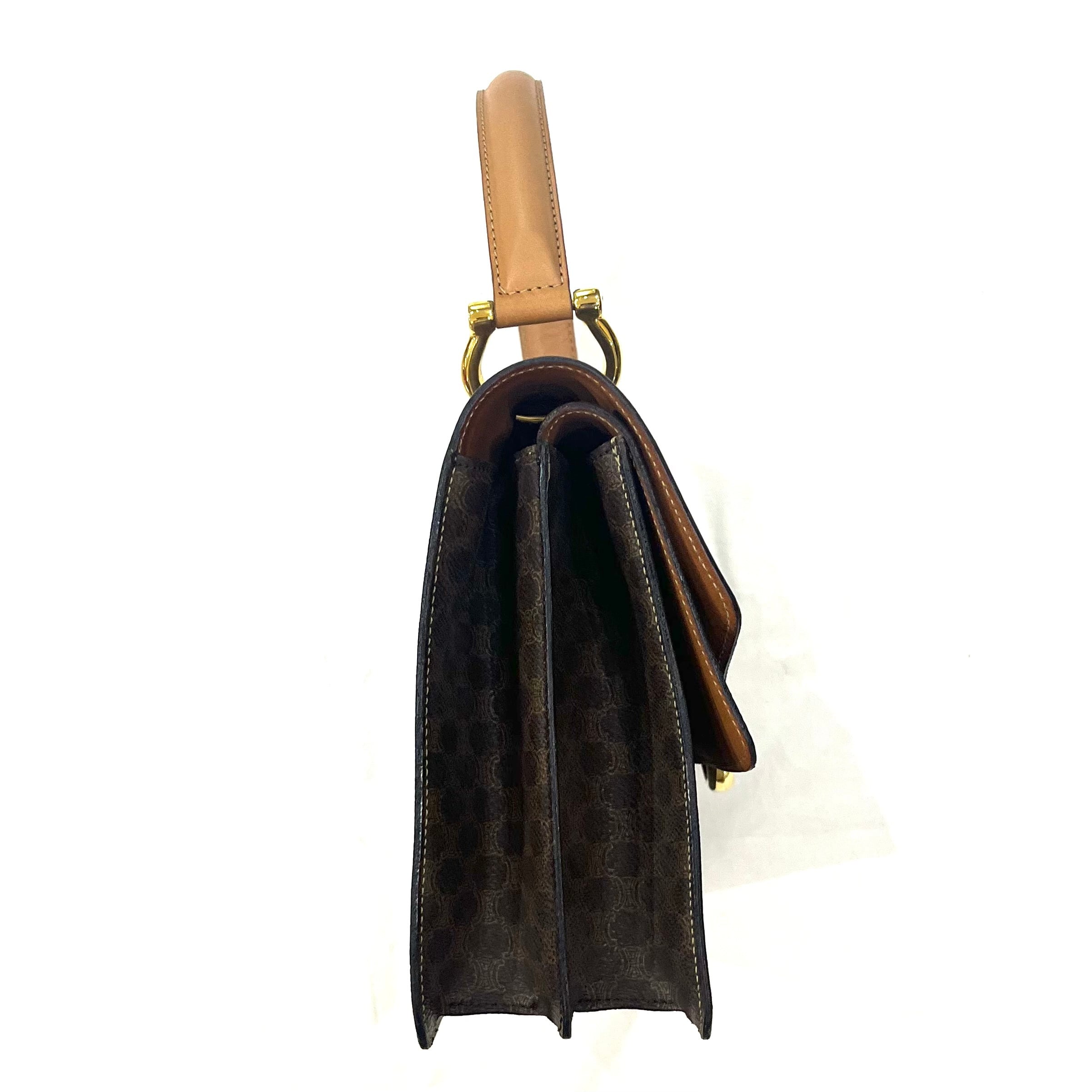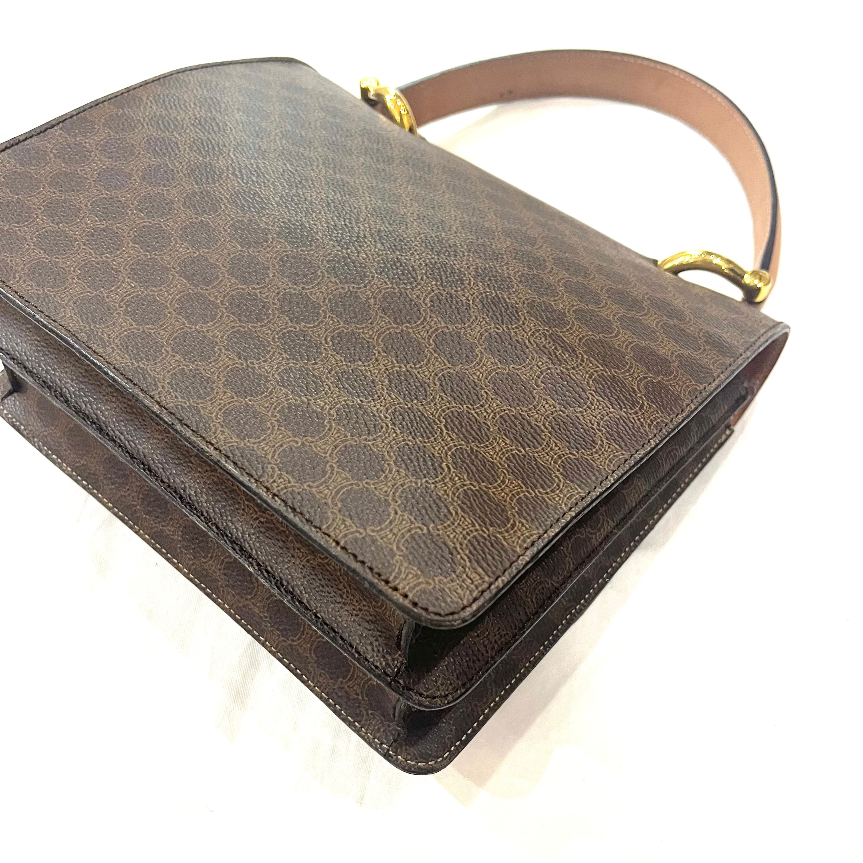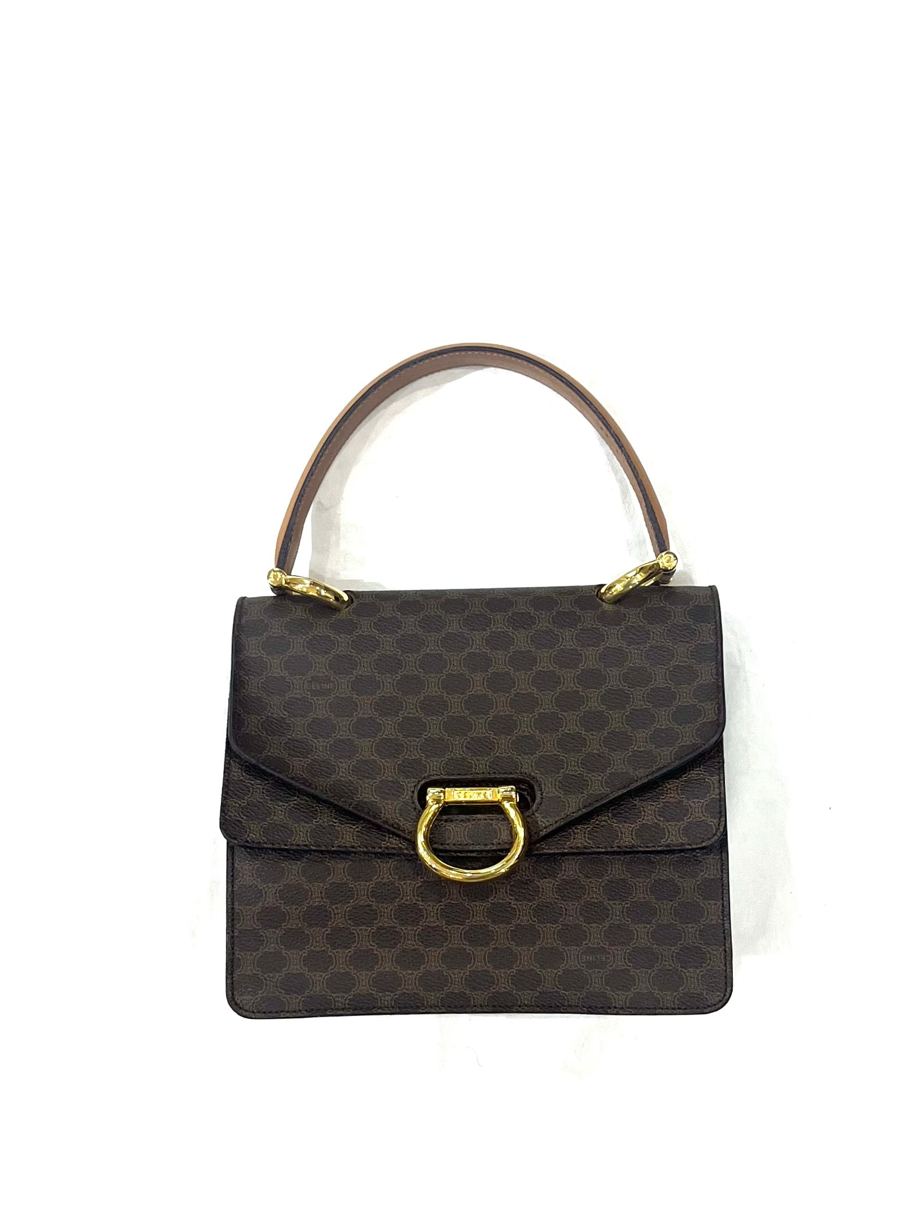 【CELINE】 ヴィンテージセリーヌ マカダム柄 二重フラップ ハンドバッグ ブラウン レザー×PVC ゴールド金具 ヴィンテージ人気 二重蓋 oldceline 福岡 ヴィンテージショップ ヴィンテージバッグ