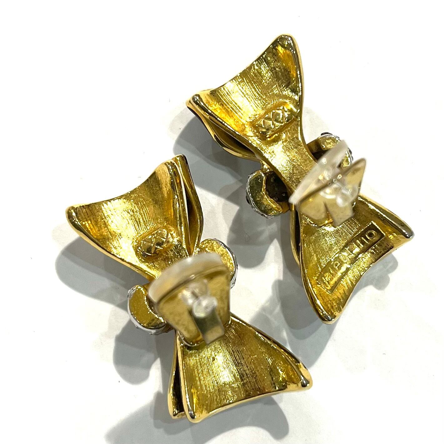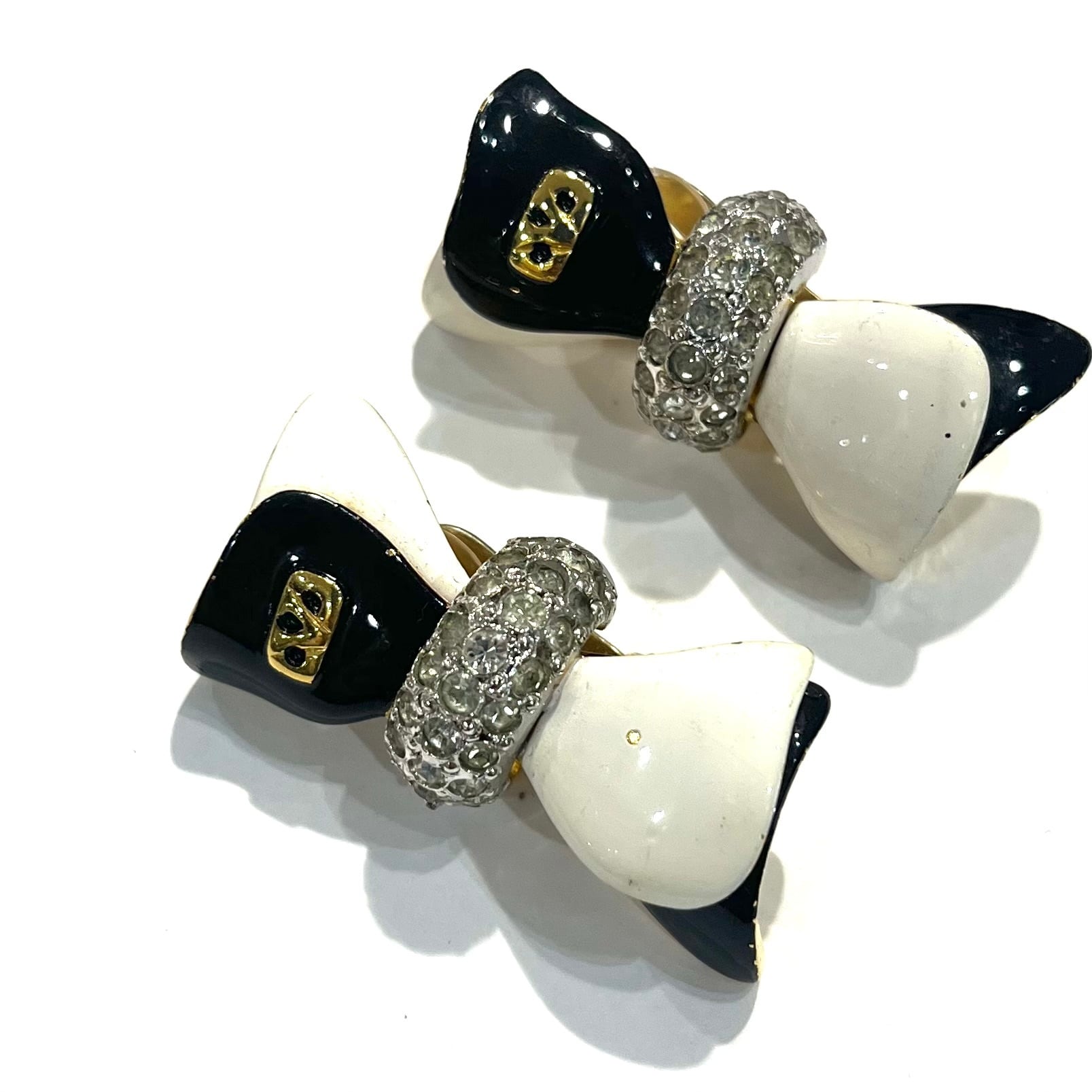 VALENTINO/ヴァレンティノ/ヴィンテージイヤリング/リボンモチーフ/モノトーンアクセサリー/ストーンイヤリング/ラグジュアリーアクセサリー/