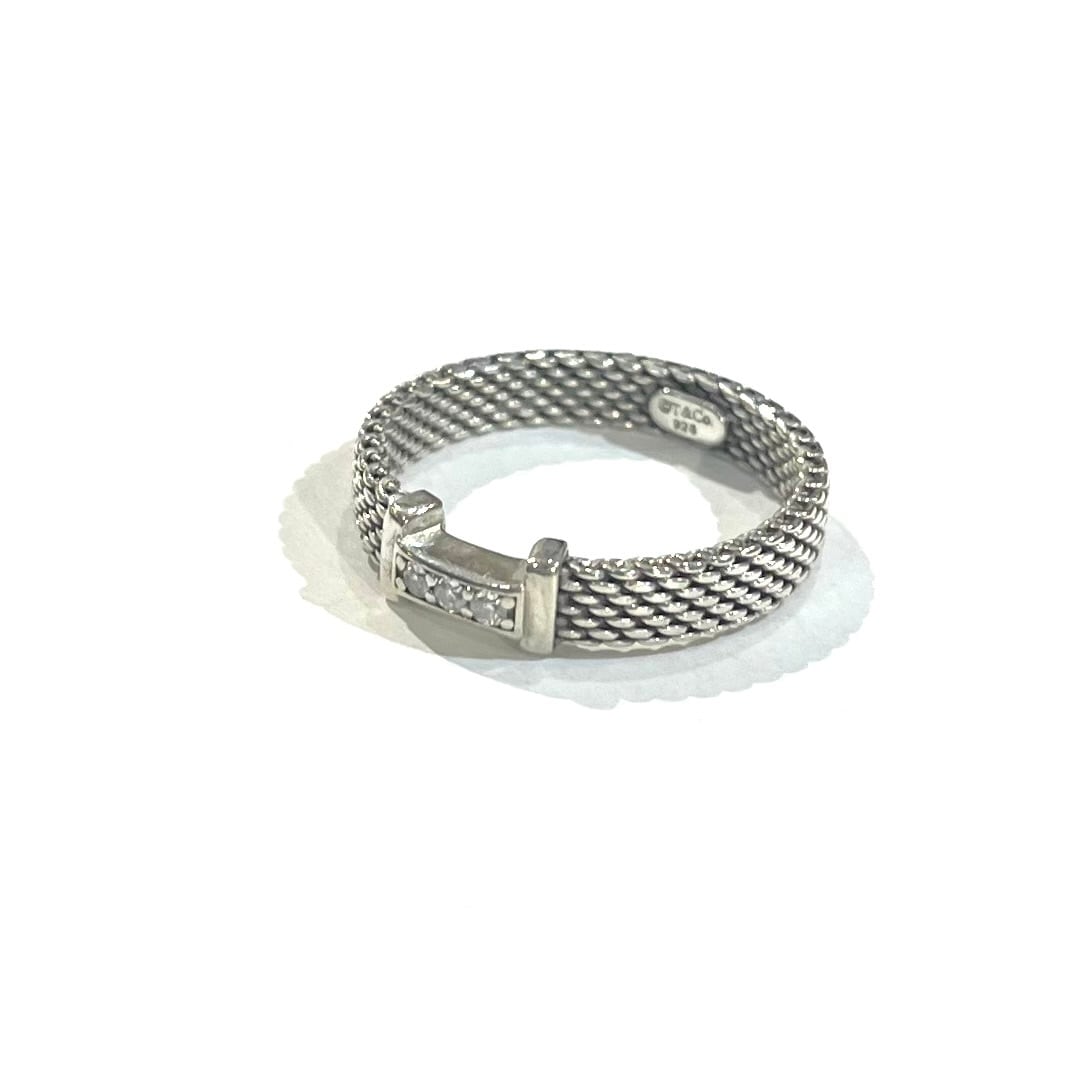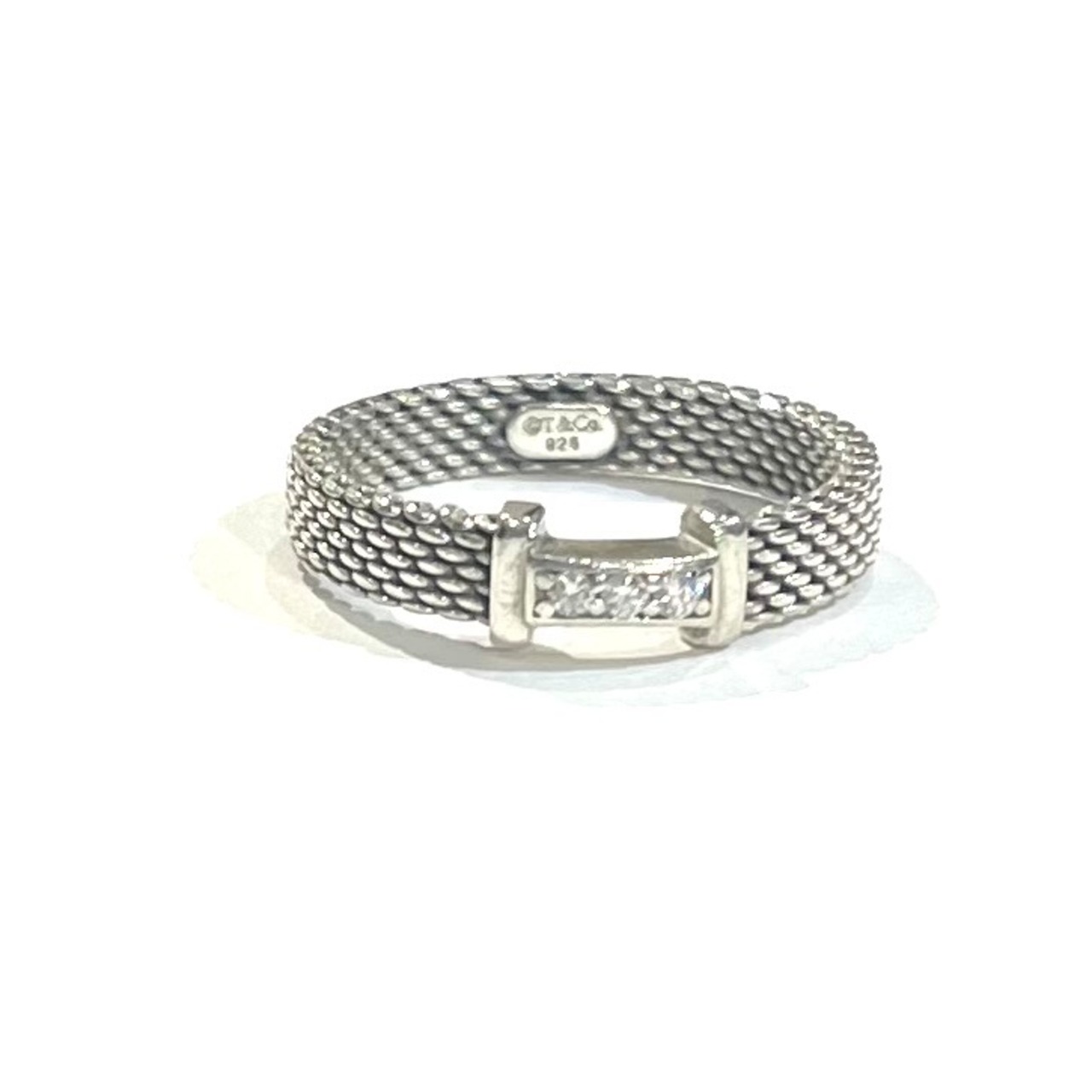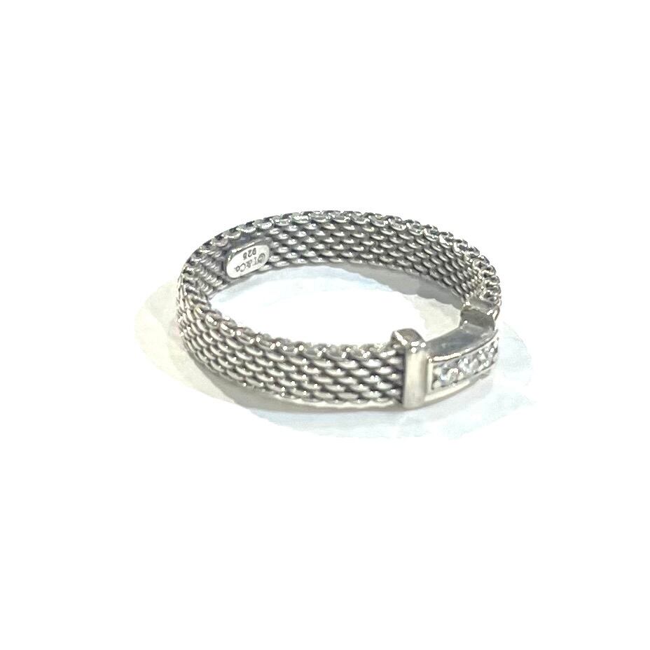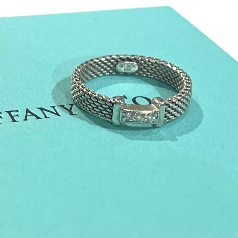 希少【TIFFANY&CO】2213 ダイヤモンドサマセット ティファニー 14.5号リング/指輪チェーンメイルデザイン/スターリングシルバー(SV925)/アンティーク名品90年代 ダイヤリング ダイヤモンドメンズ ダイヤモンドアクセサリー