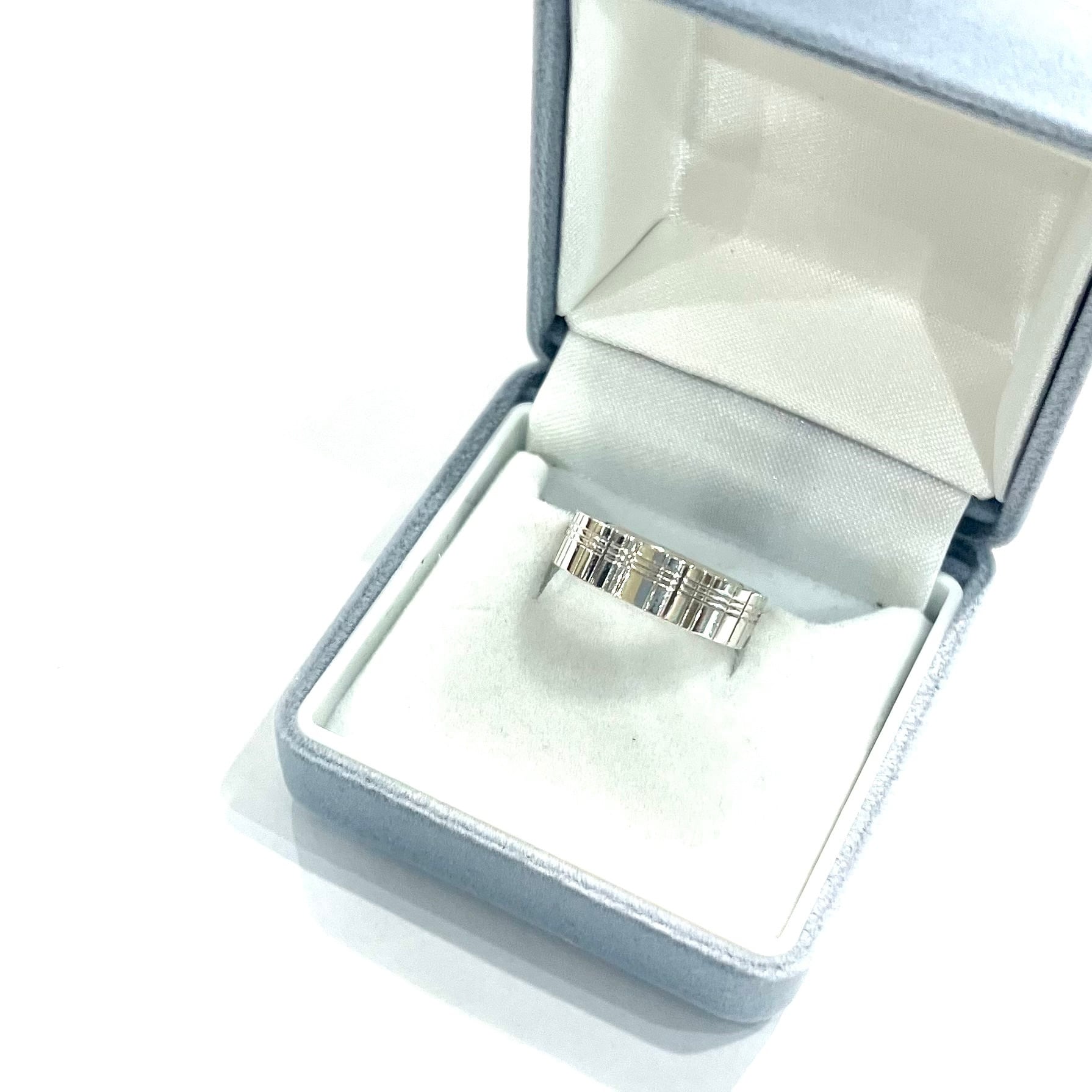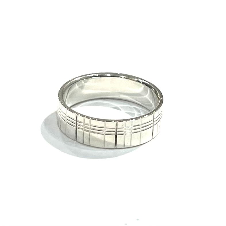 【agete】2215 日本ブランド チェック柄ワイド シルバーリング/SV950/幅0.5cm/直線デザイン/ユニセックス メンズリング シルバーアクセサリー ヴィンテージアクセサリー 指輪
