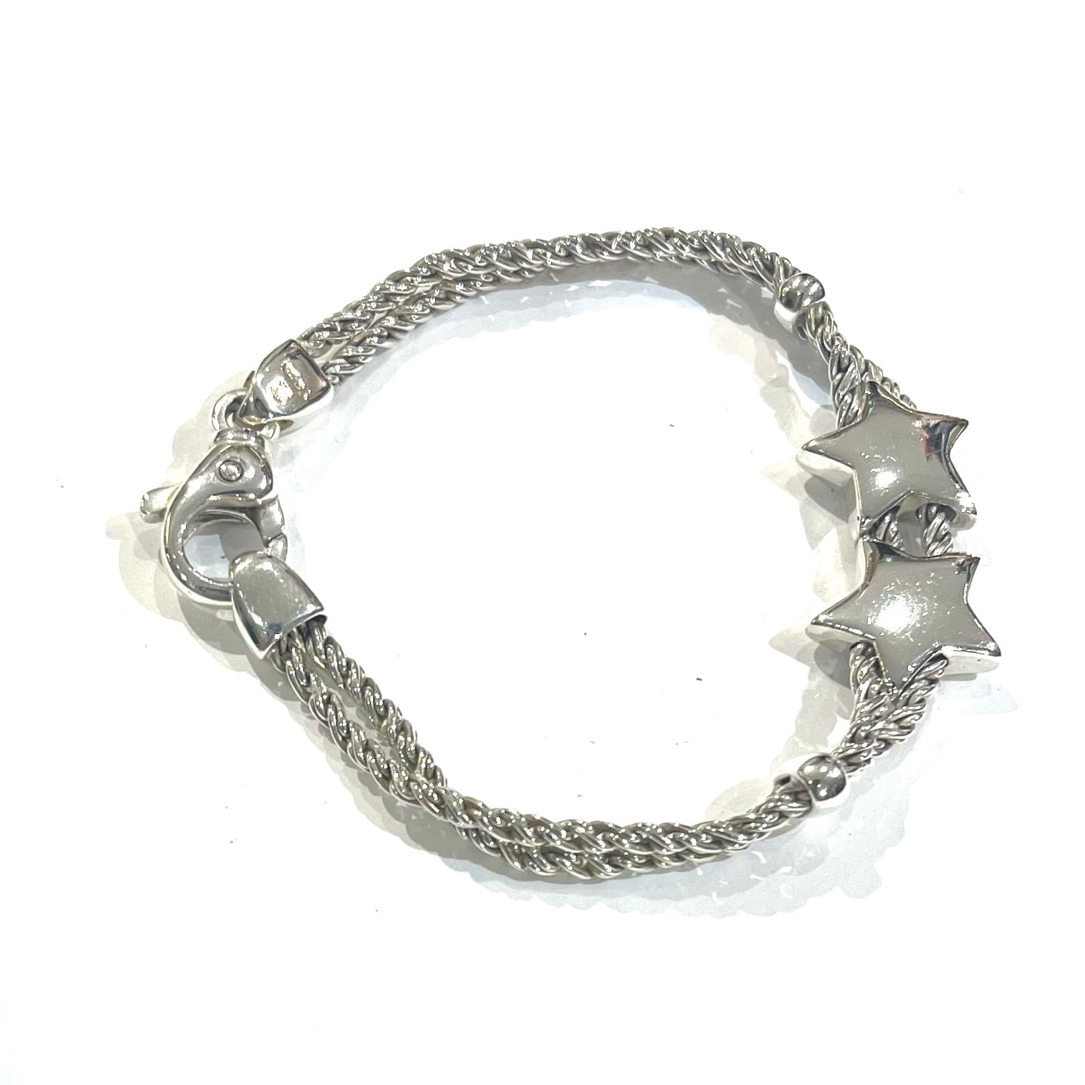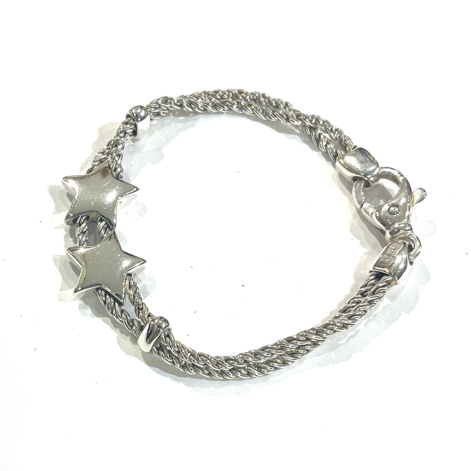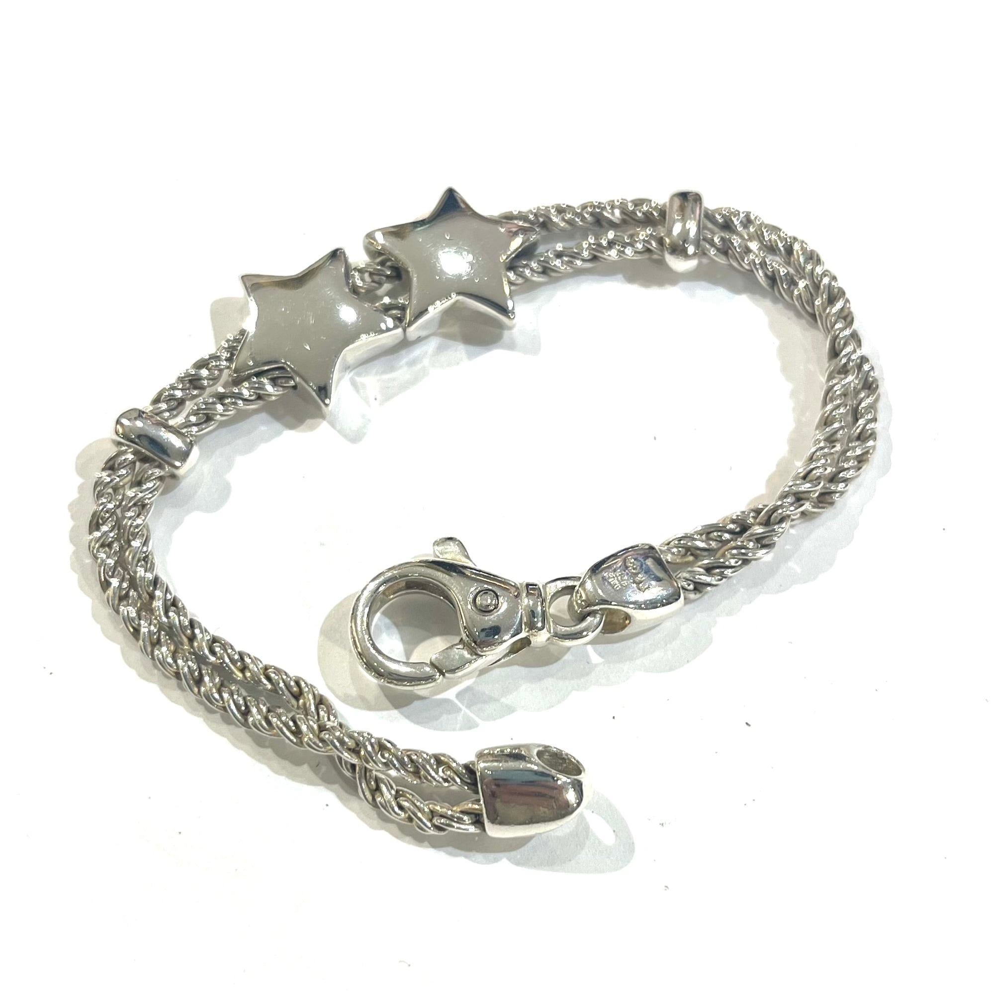 希少【TIFFANY&CO.】2217 イタリア製 ダブル星スターモチーフ ダブルロープ ブレスレット 80.90年代 ヴィンテージ ティファニーアクセサリーメンズブレスレット アンティーク メンズシルバーアクセサリー