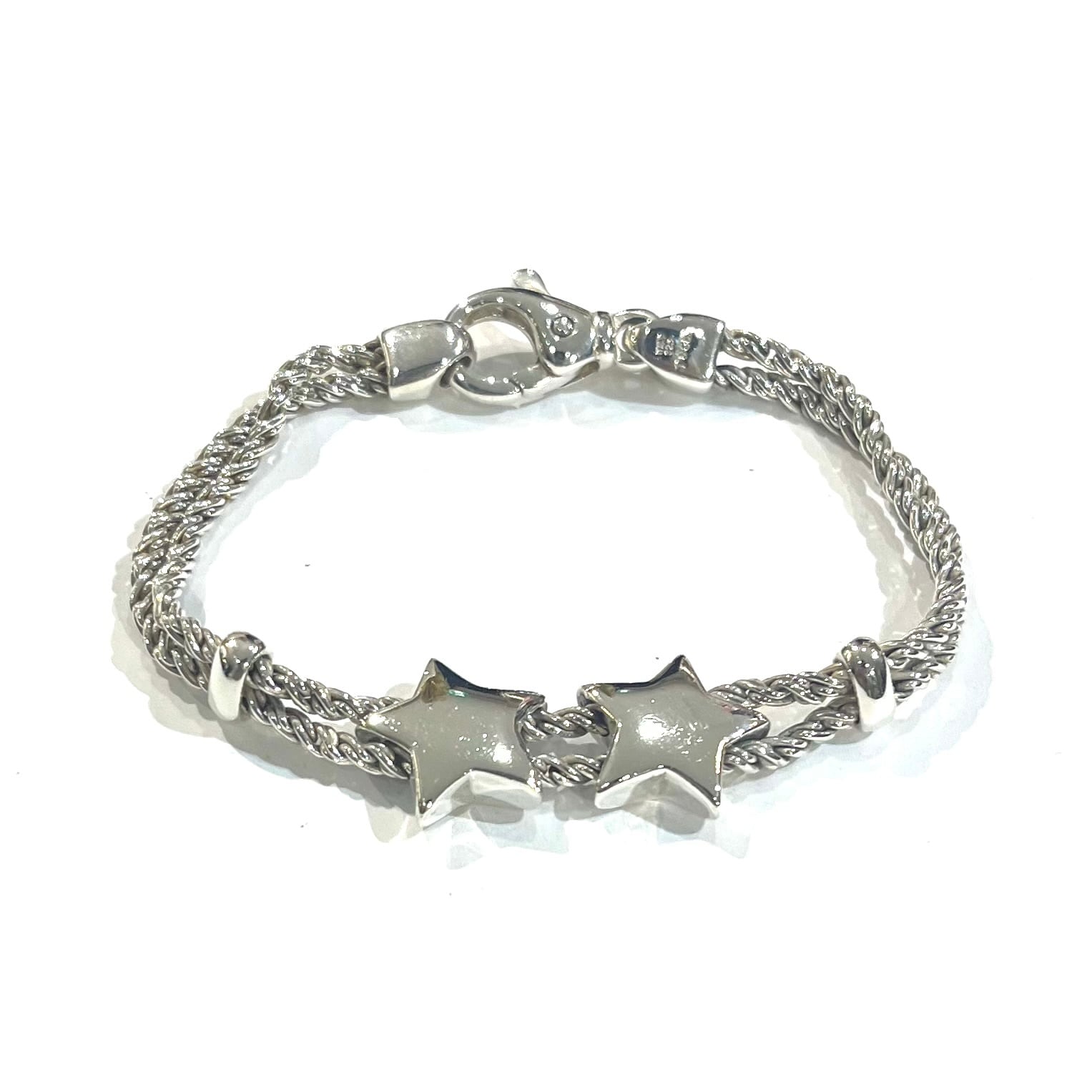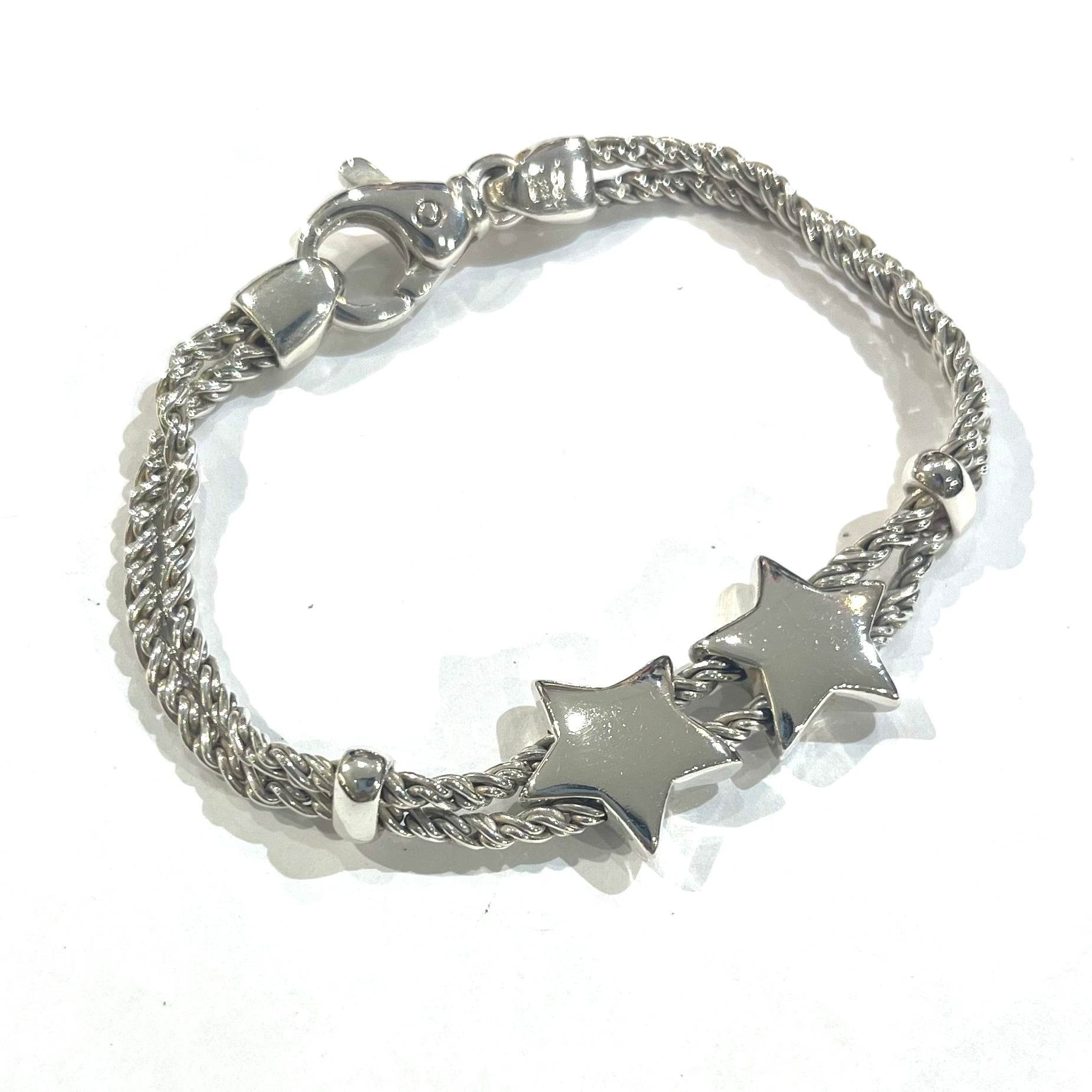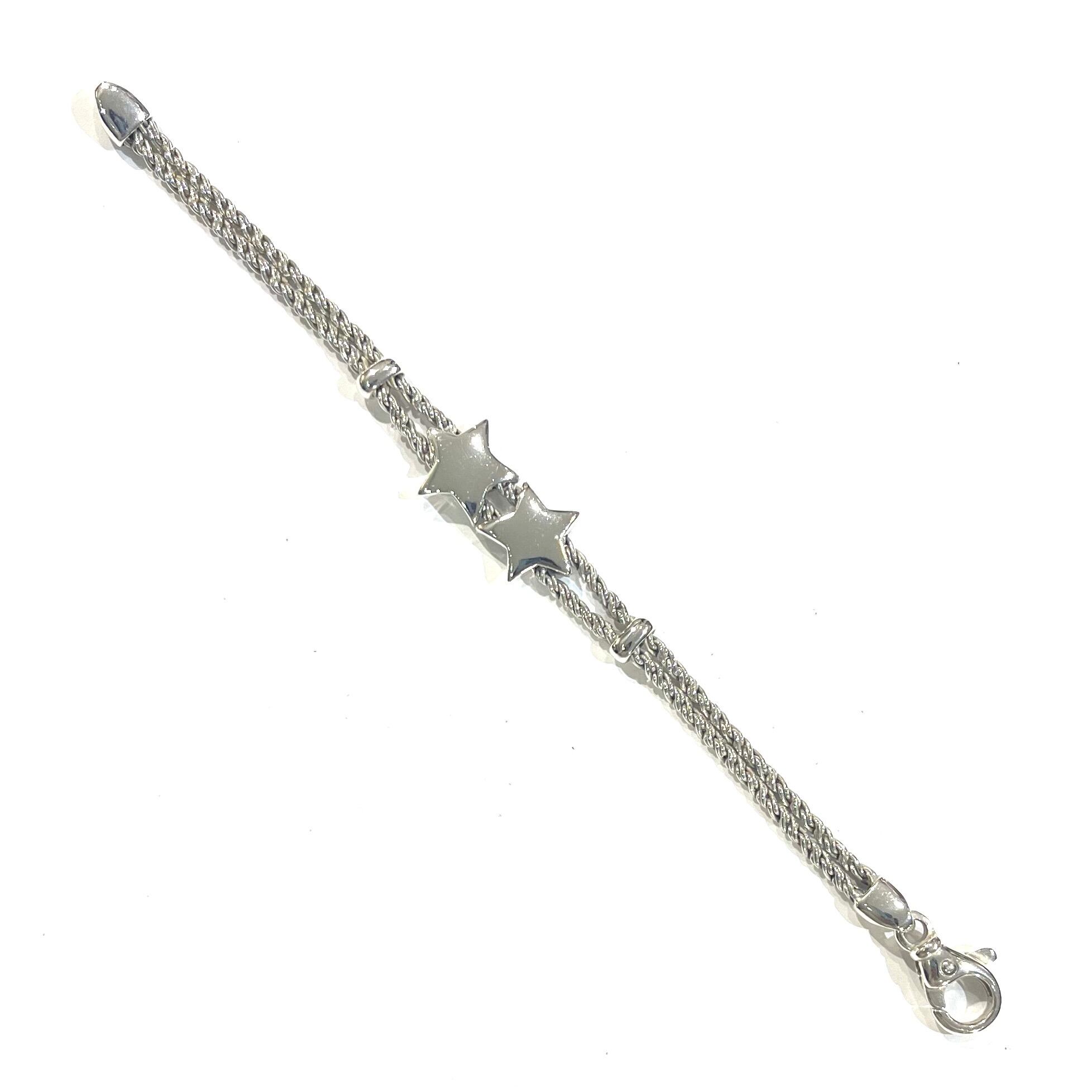 希少【TIFFANY&CO.】2217 イタリア製 ダブル星スターモチーフ ダブルロープ ブレスレット 80.90年代 ヴィンテージ ティファニーアクセサリーメンズブレスレット アンティーク メンズシルバーアクセサリー