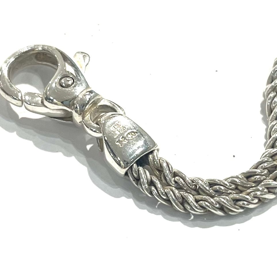 立体的に編み込まれたロープチェーンに、2つのスターを配した構成は、装飾性と構造美のバランスが非常に高いデザインです。