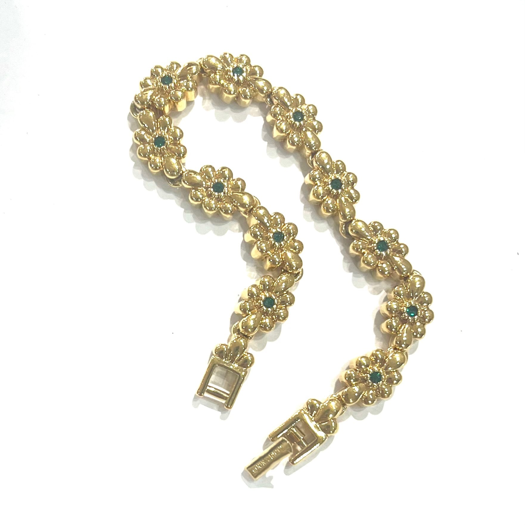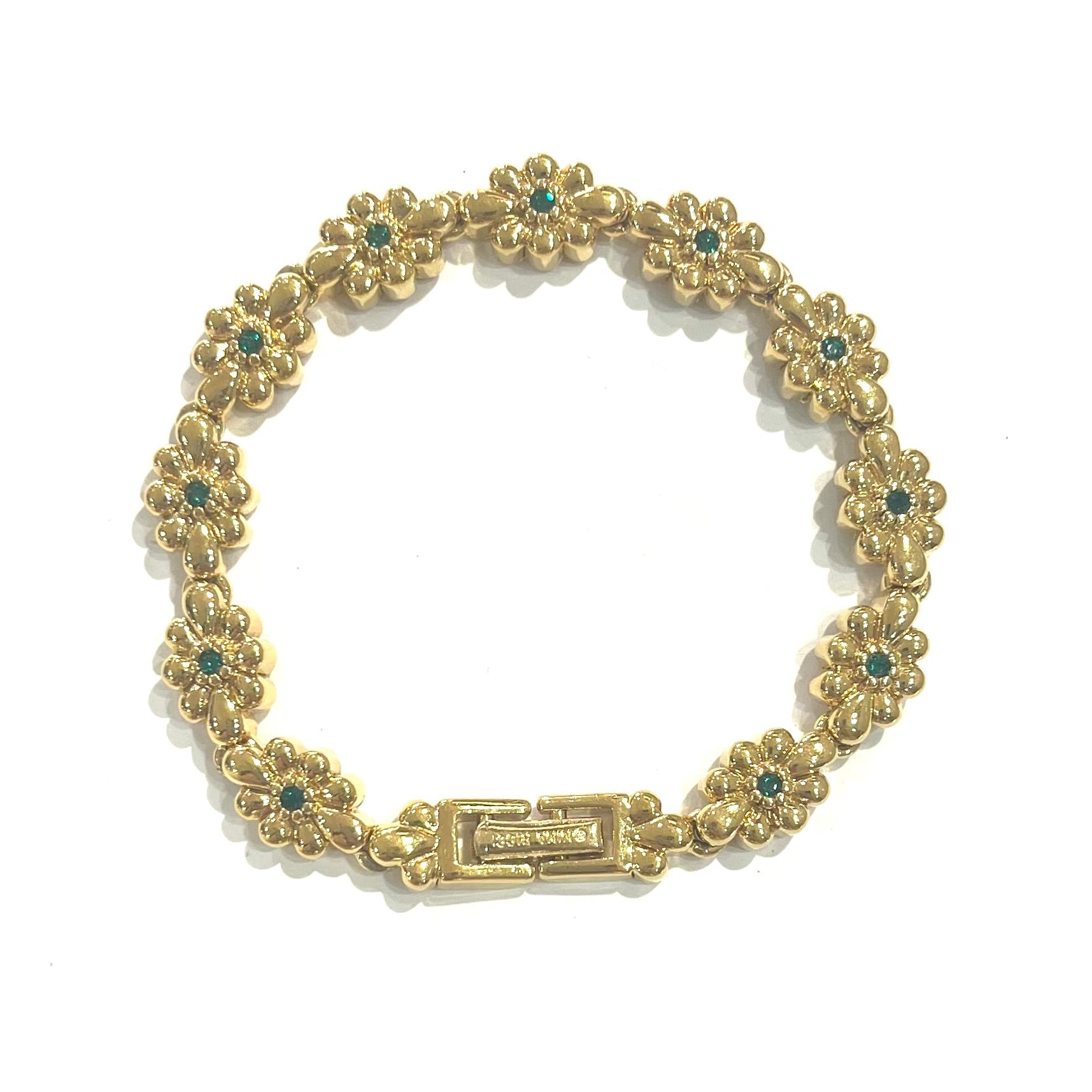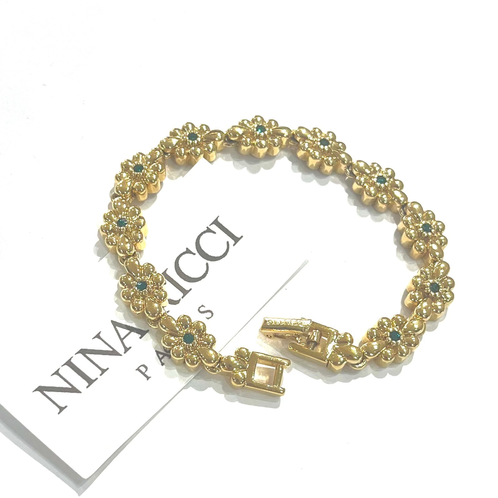 NINA RICCI/ニナリッチ/ヴィンテージブレスレット/フラワーブレスレット/エメラルドカラー/ゴールドアクセサリー/レディースアクセサリー/入学式アクセサリー/卒業式アクセサリー/フォーマルアクセサリー