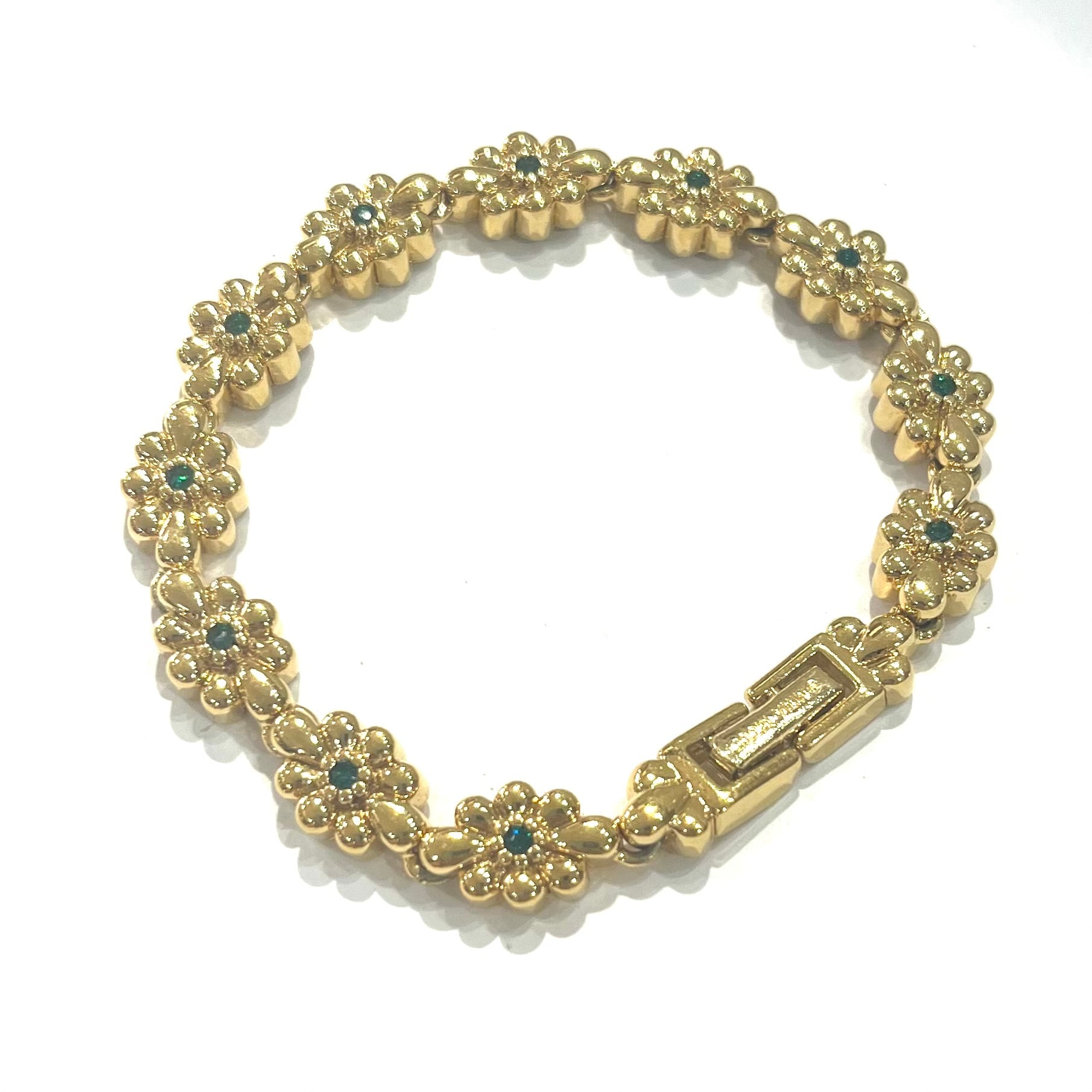 【商品名】エメラルドカラー フラワーブレスレット