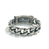 程よい厚みのチェーンモチーフに、フラットなIDプレートがアクセント。