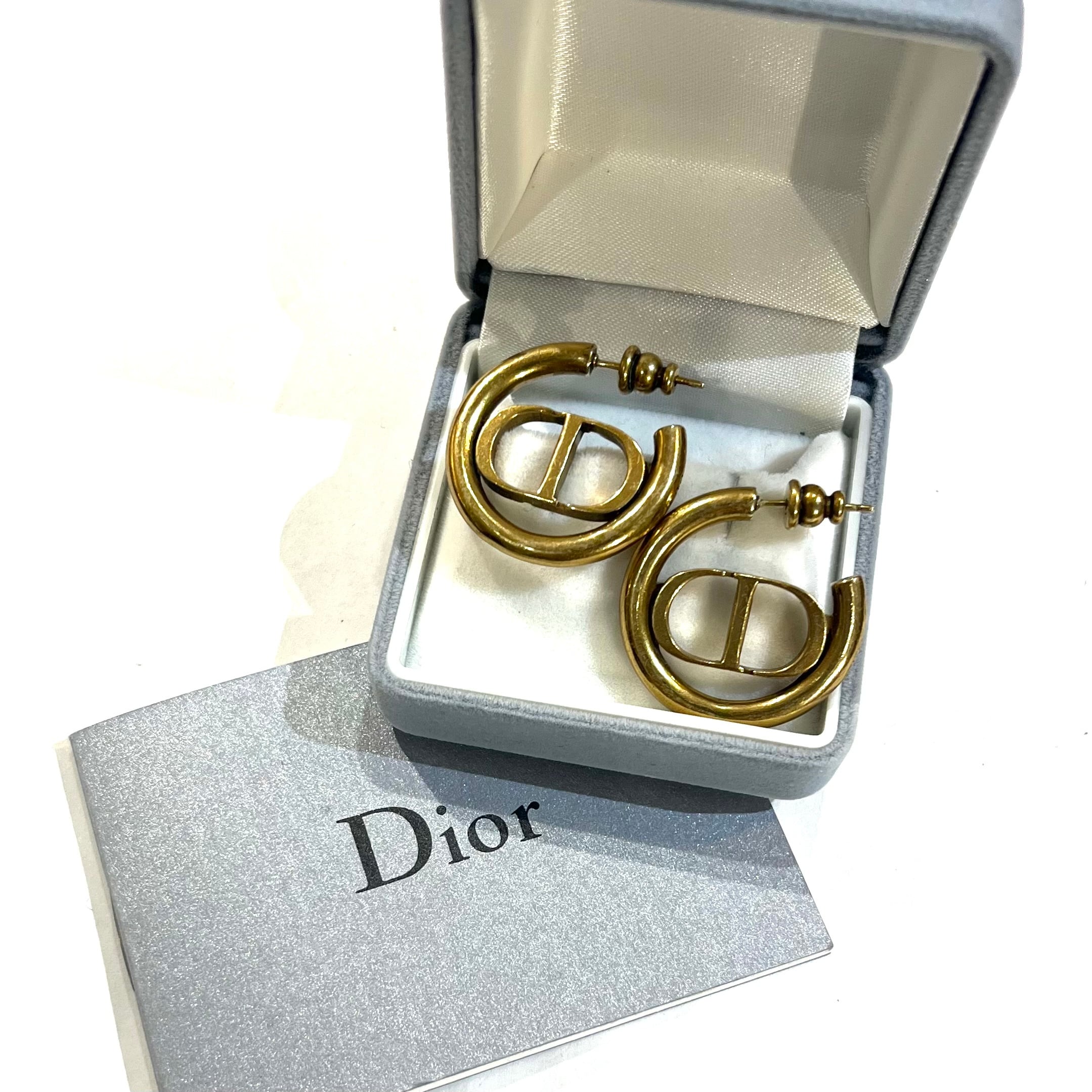 【Christian Dior】2230 DIOR 30 MONTAIGNE モンテーニュ CDロゴ フープピアス 2.5cm/アンティークゴールドの重厚感 ディオールピアス