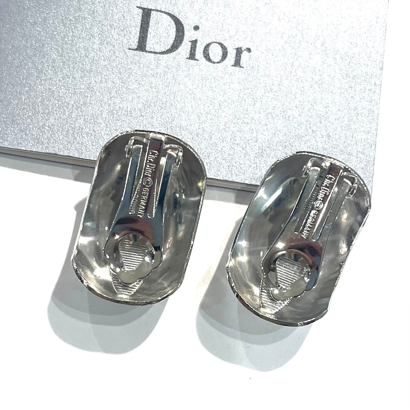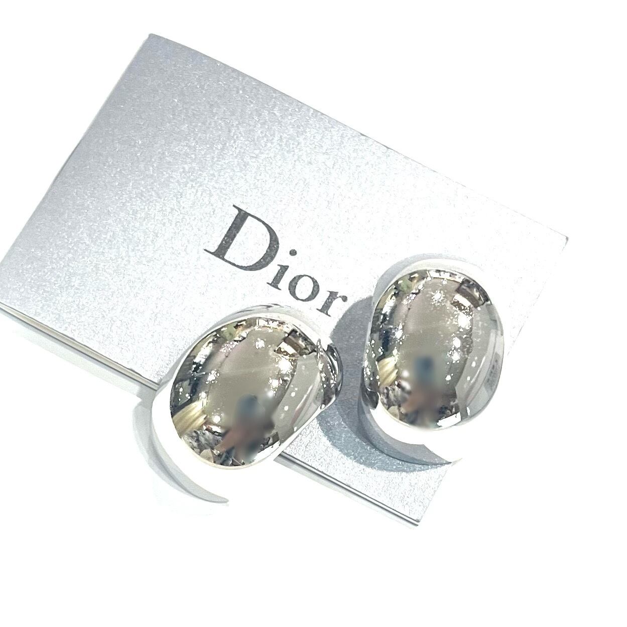 【Christian Dior】2234 DIOR ミラーイヤリング 2cm×3cm シルバーメタル/小顔効果 春夏主役級 クラシック 大ぶり フォーマル福岡アンティークショッププレゼント イヤリング クリップイヤリング モダン