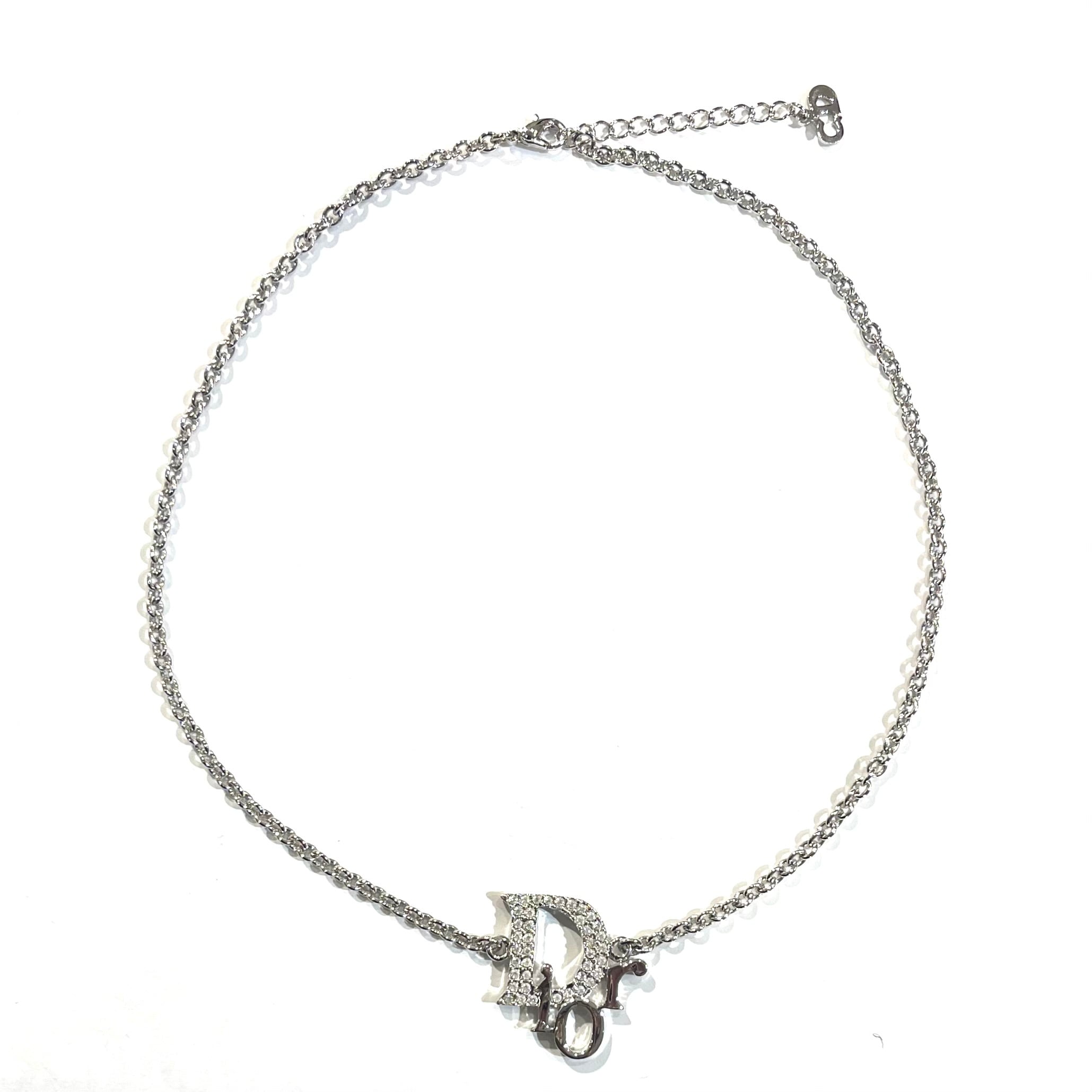 【Christian Dior】2240 DIOR ディオールロゴ ラインストーンネックレス 43cm/シルバートーン/春夏主役エレガントな存在感/ロングネックレスメンズアクセサリーカジュアル プレゼント シルバーアクセサリー ヴィンテージアクセサリー