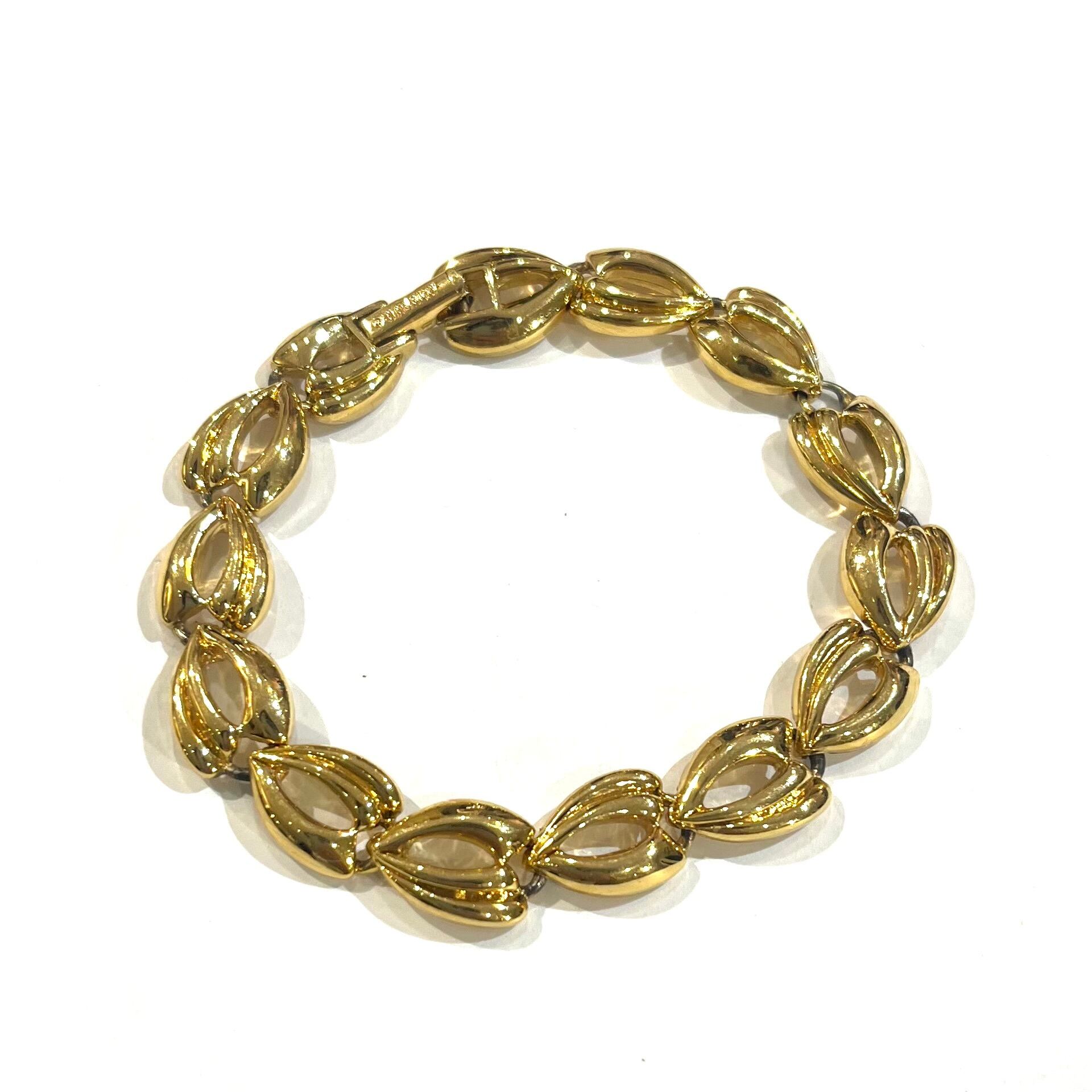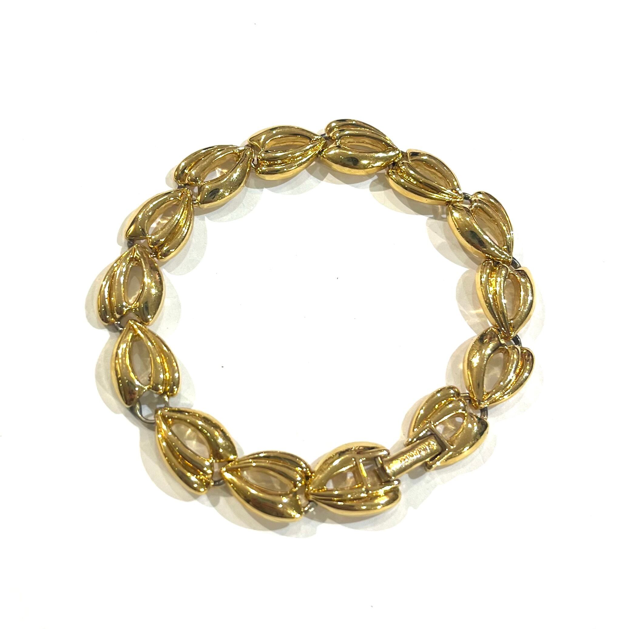 【NINA RICCI 】2257 ニナリッチ パリ老舗ヴィンテージ ゴールドリンクブレスレット 18.5cm/立体フラワー調リンク/ブランドゴールドエレガント上質50代60代アンティーク ゴールド入学式卒業式 ブレスレット