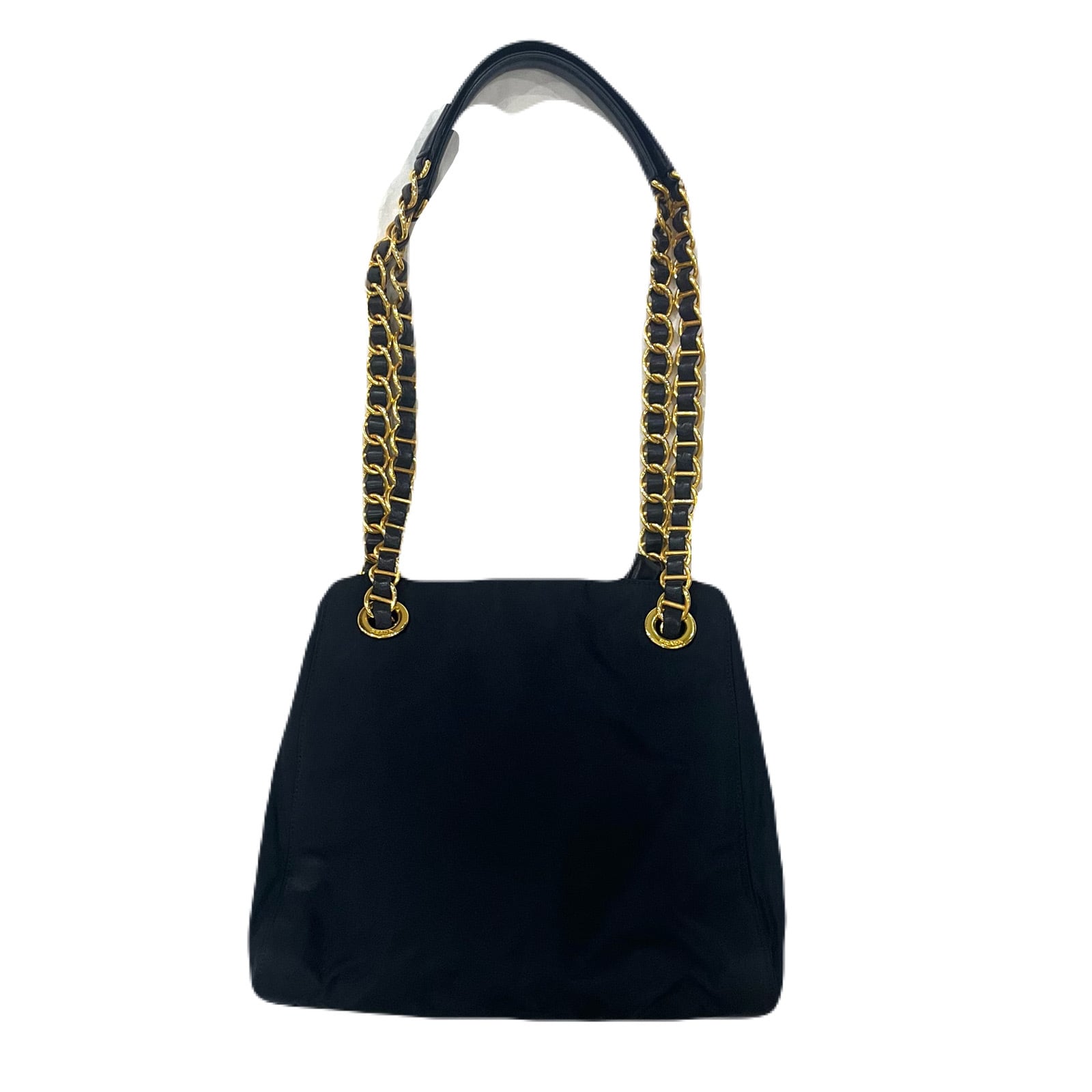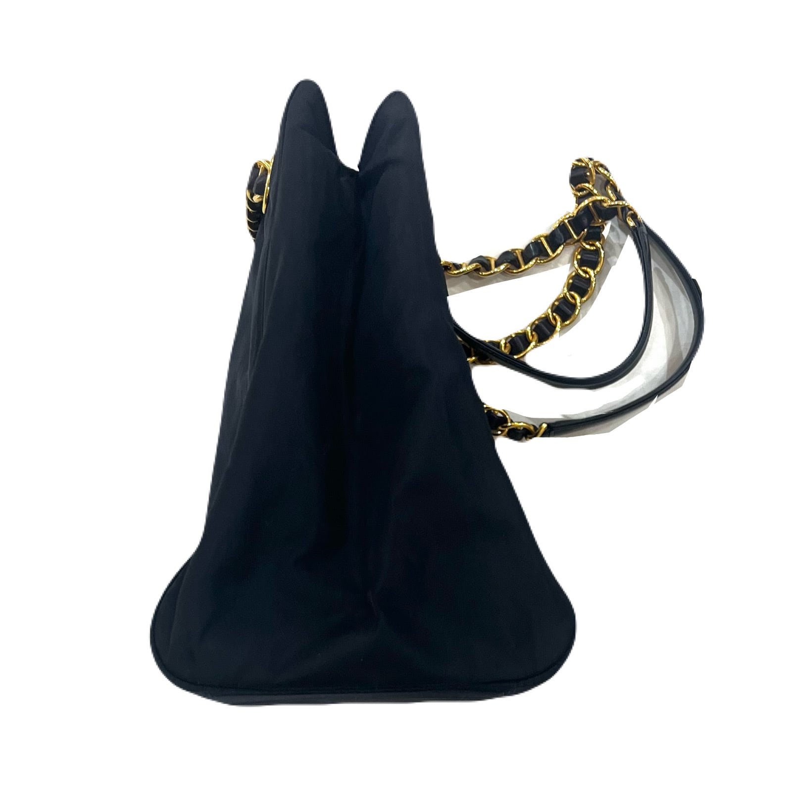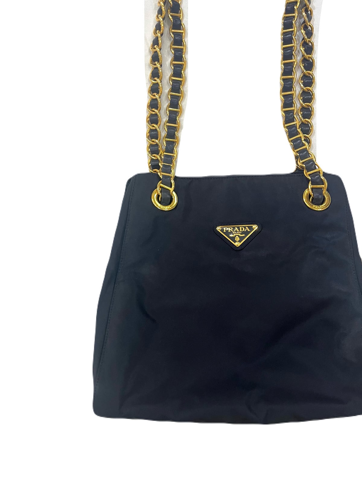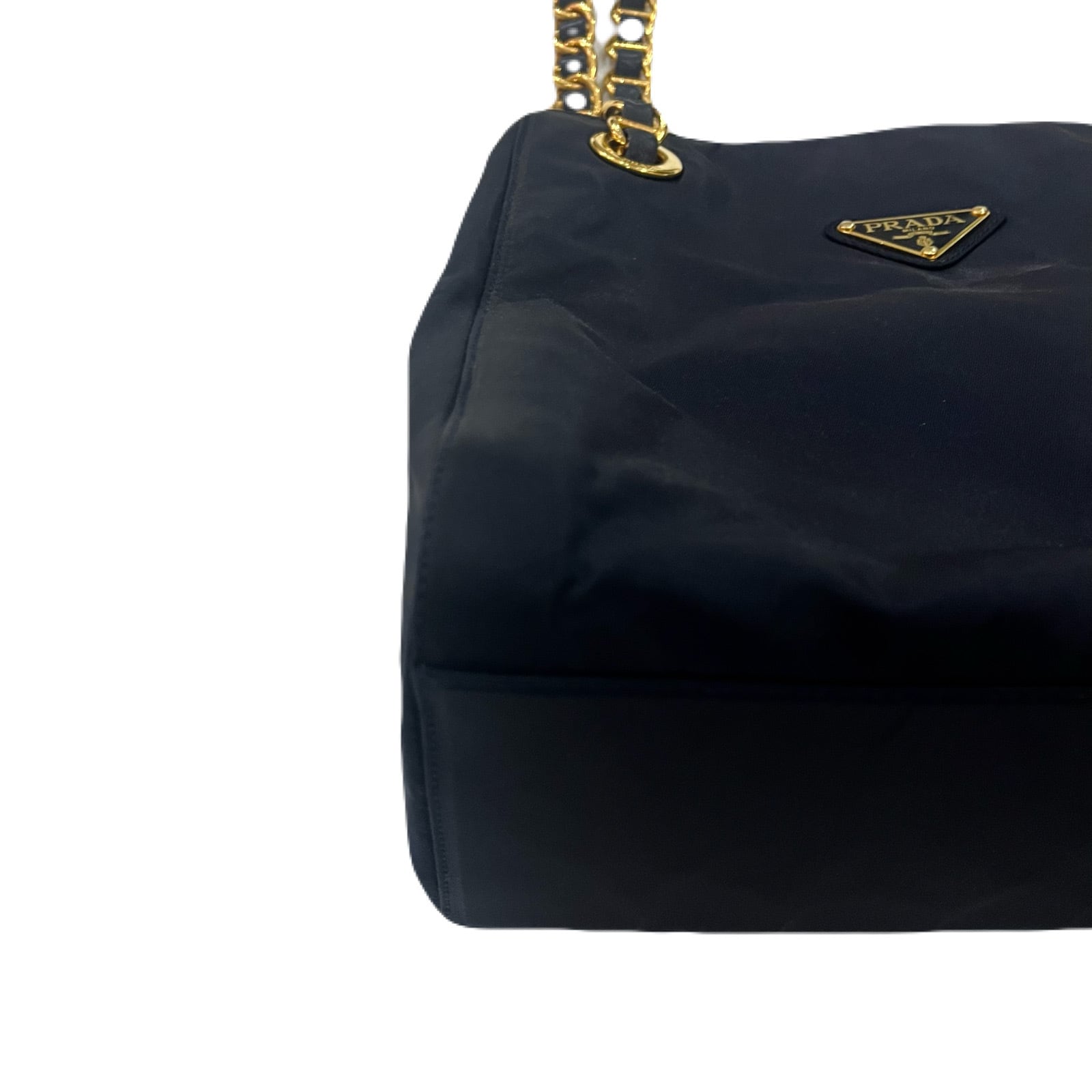 【PRADA】プラダ ナイロン チェーントートバッグ ブラック ゴールドチェーン 三角ロゴ 肩掛けOK 軽量 通勤バッグ ヴィンテージプラダ容量フォーマルバッグ ベーシック プラダチェーンバッグ