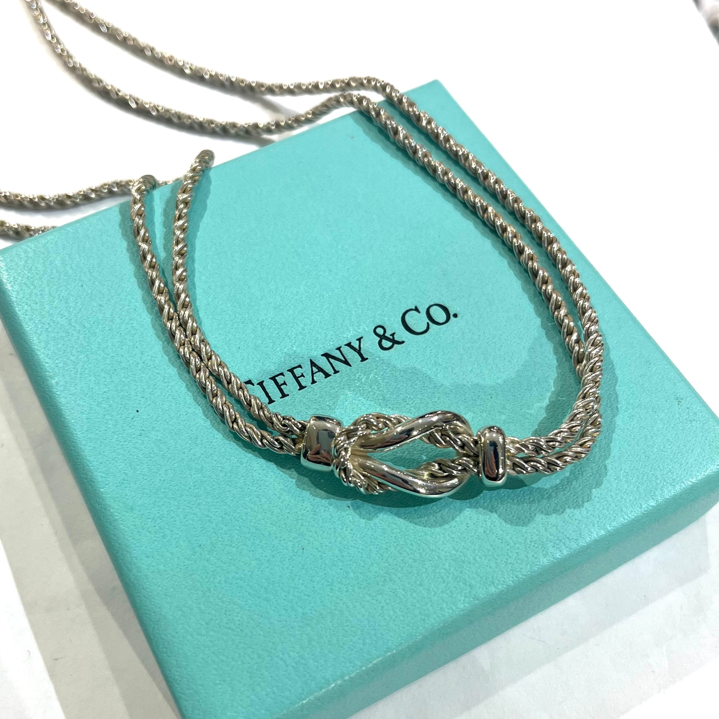 TIFFANY&CO.の中でも流通数が極めて少ない、ダブルロープ×センターノットデザインのネックレス。