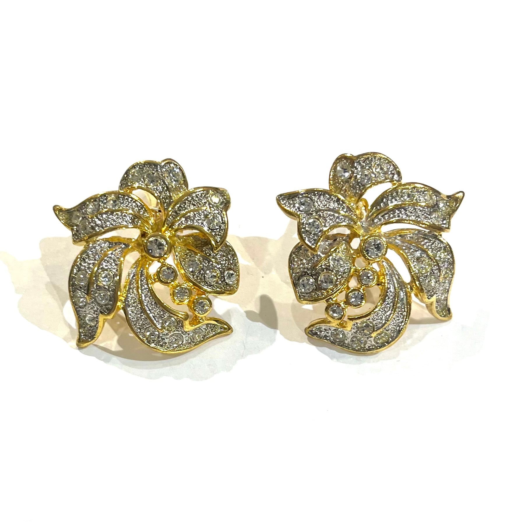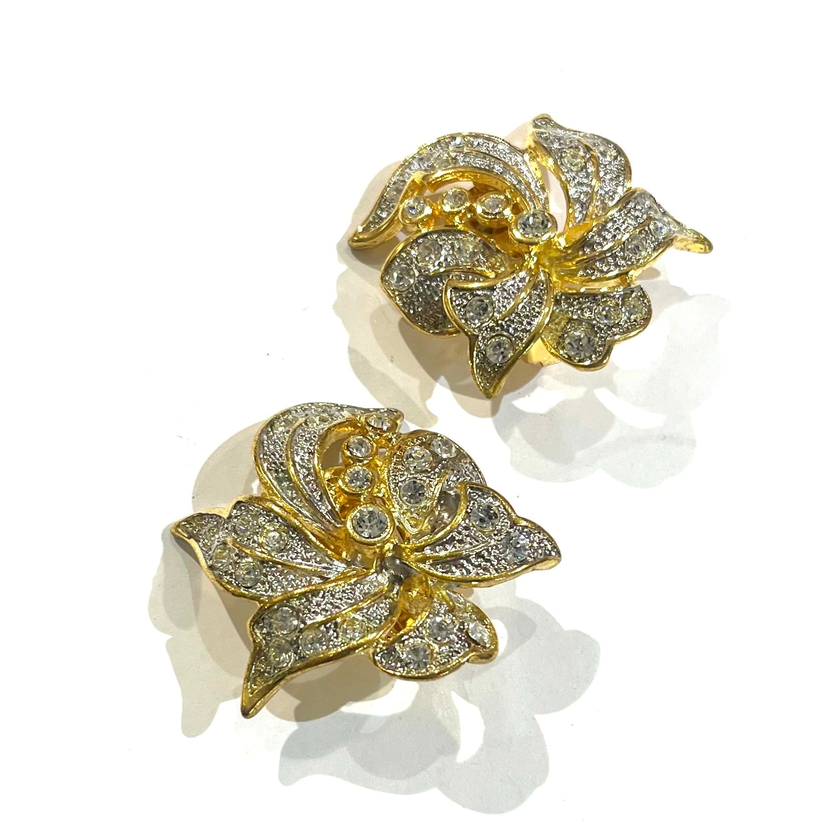 【AVON】ボリューム花フラワービジューイヤリング 3.5cm/ゴールド×クリアストーン/華やかヴィンテージ フラワー アンティーク春夏コーデ入学式フォーマルクラシッククラシカルアメリカブランド
